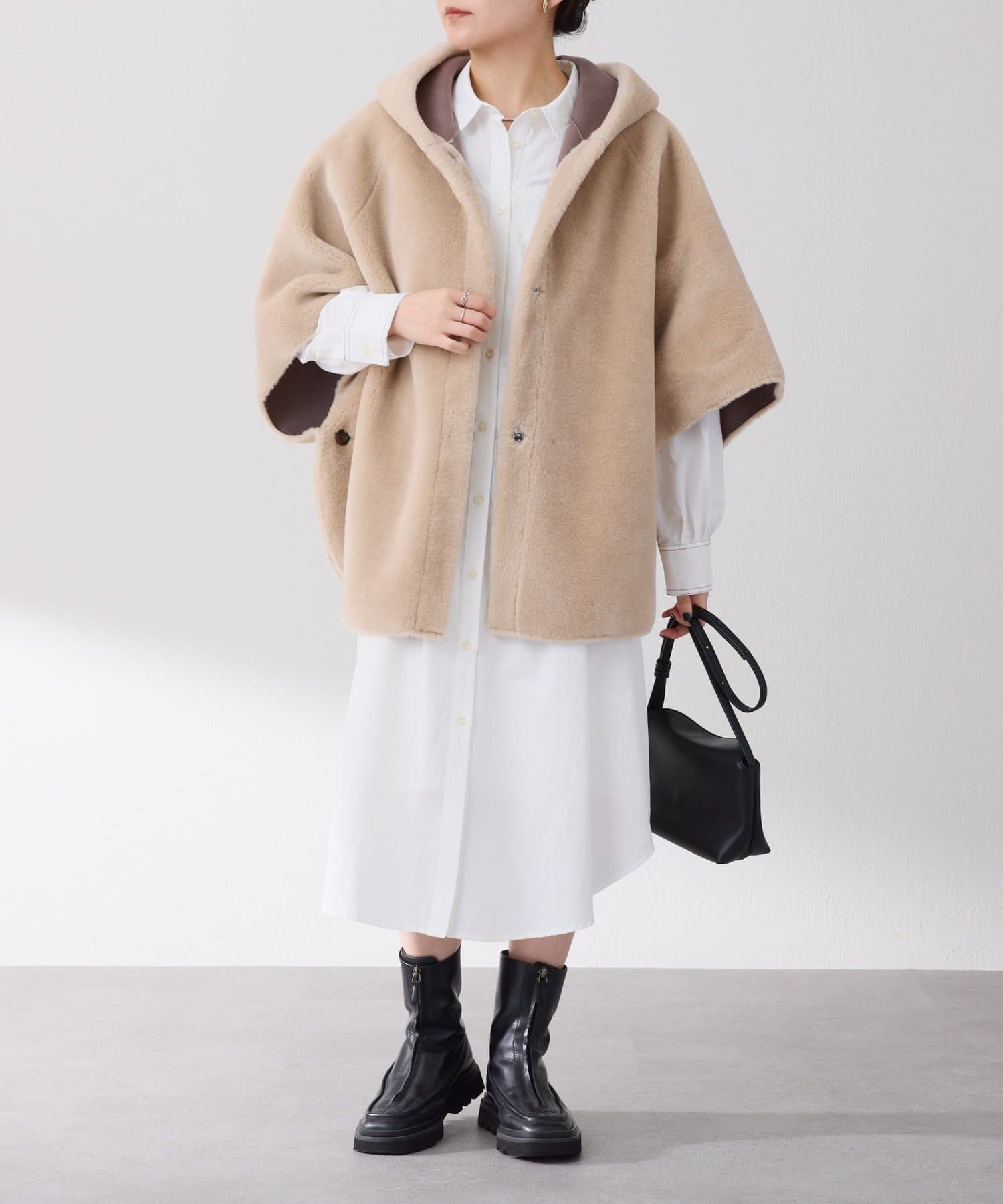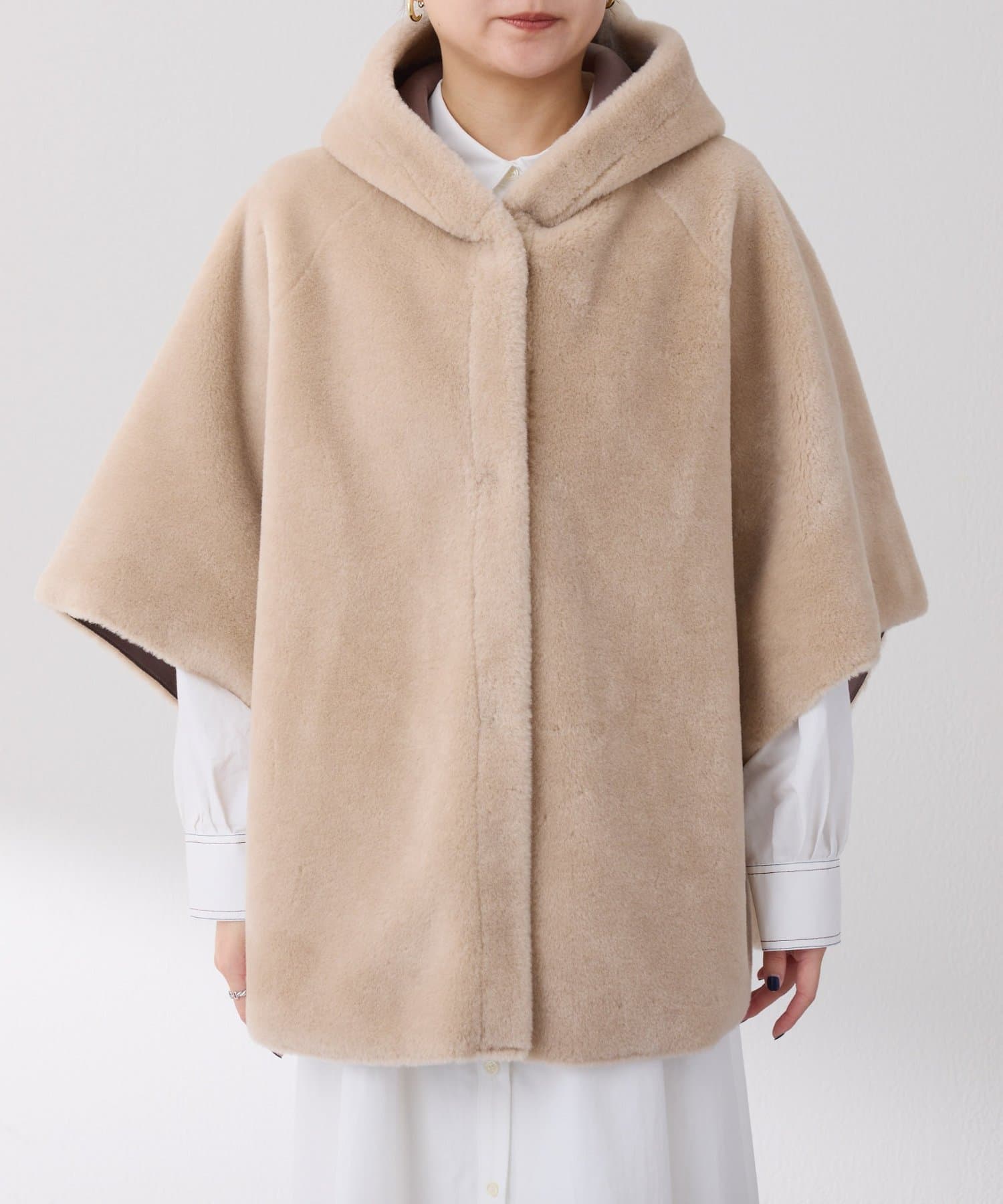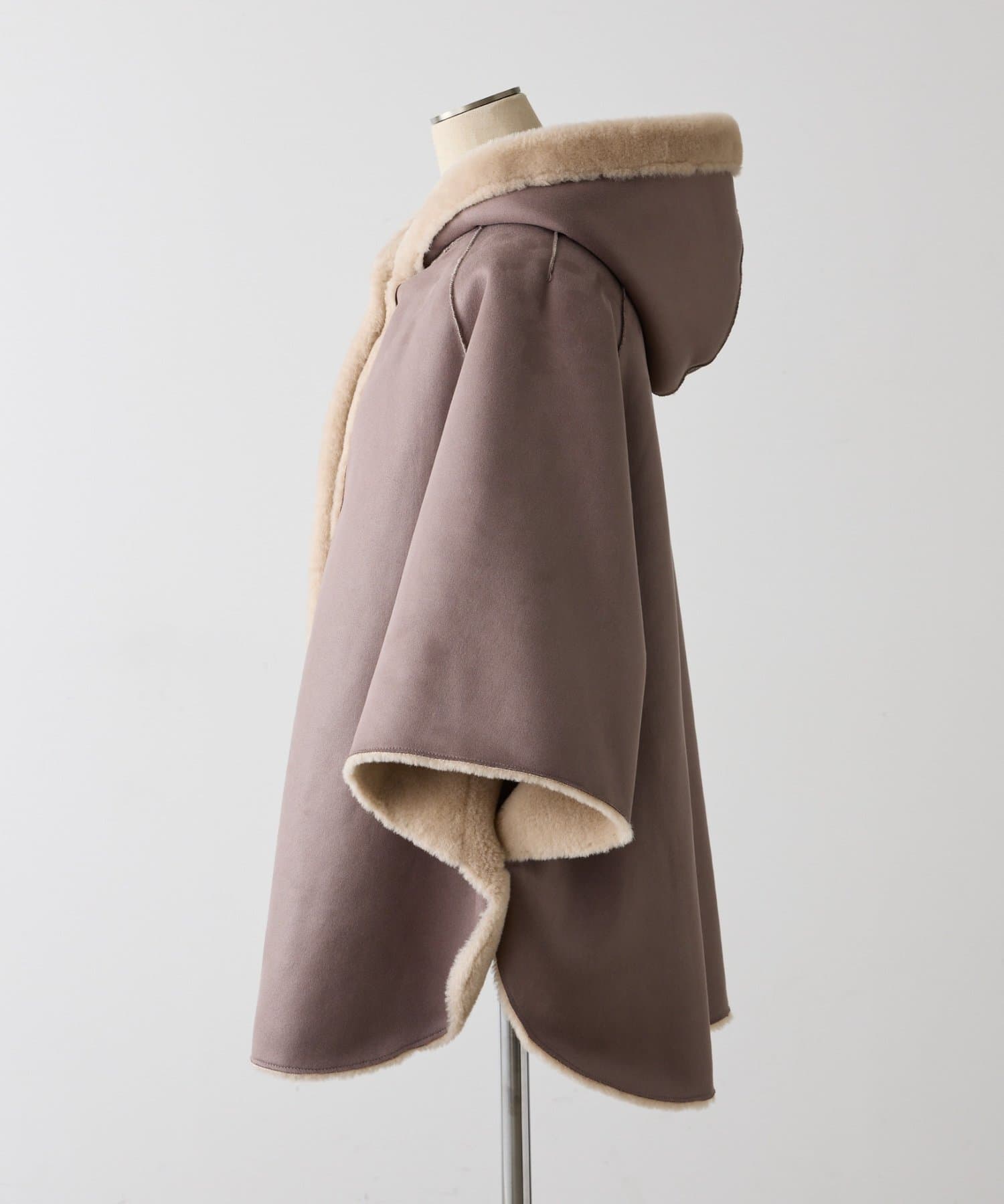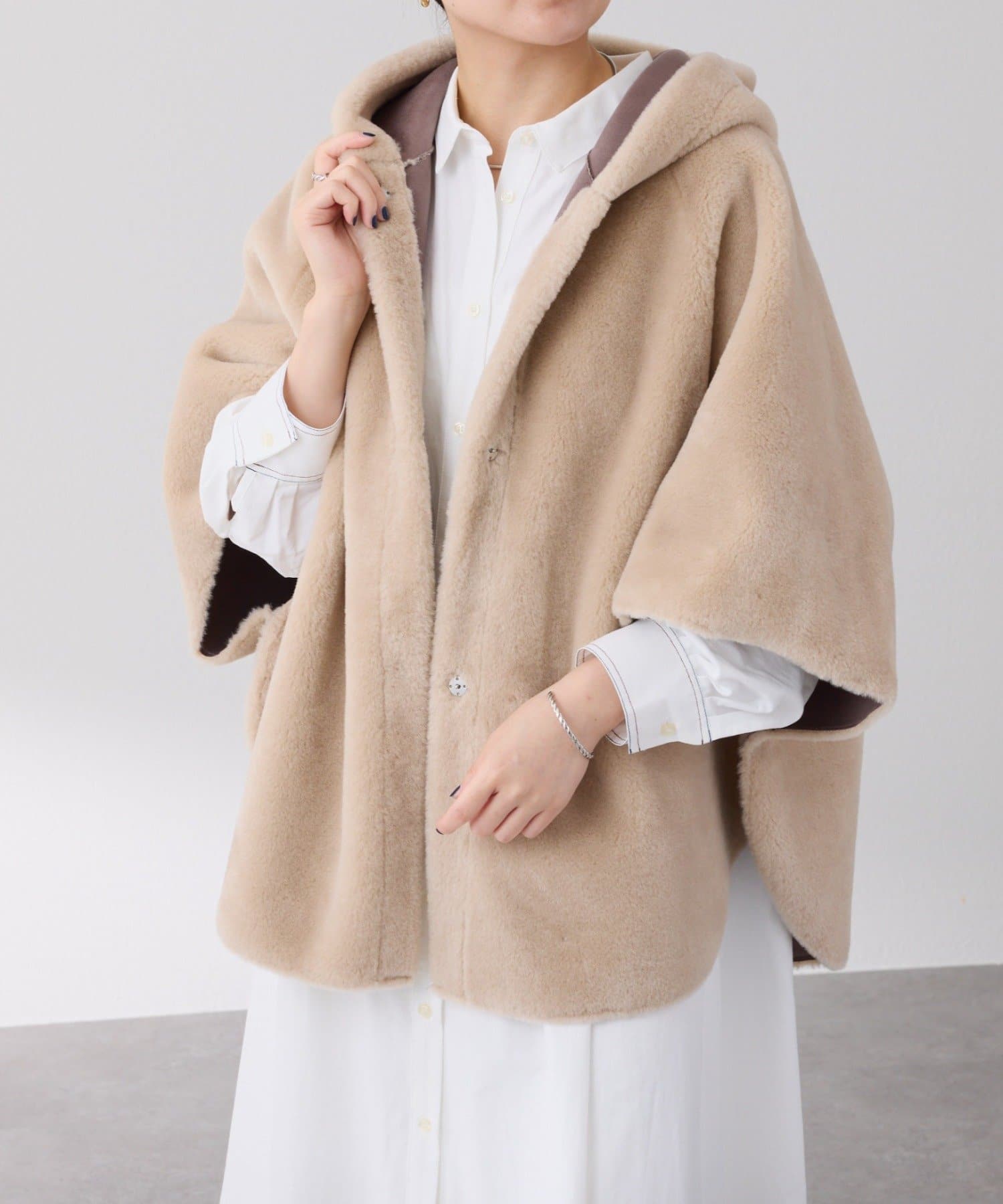 ・ショートファーとスエードのリバーシブルで楽しめるポンチョ。