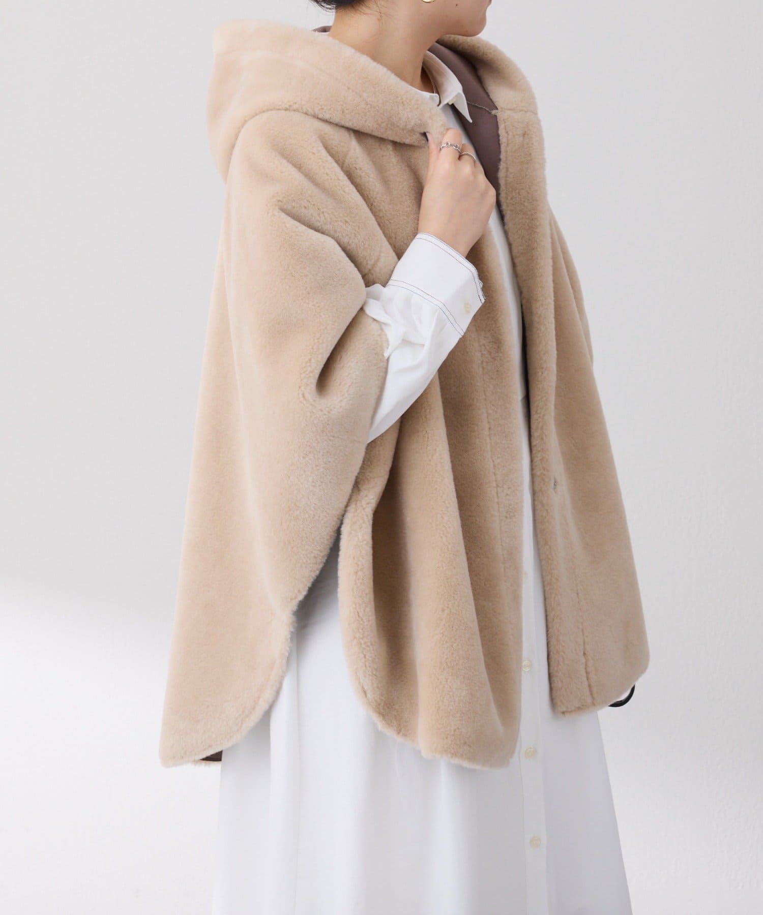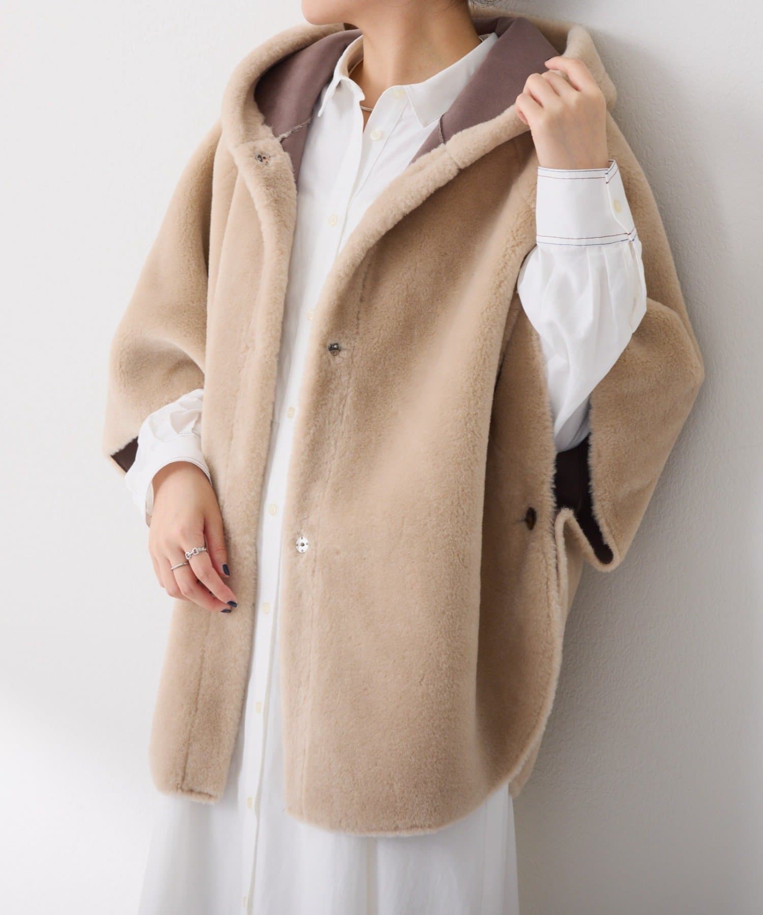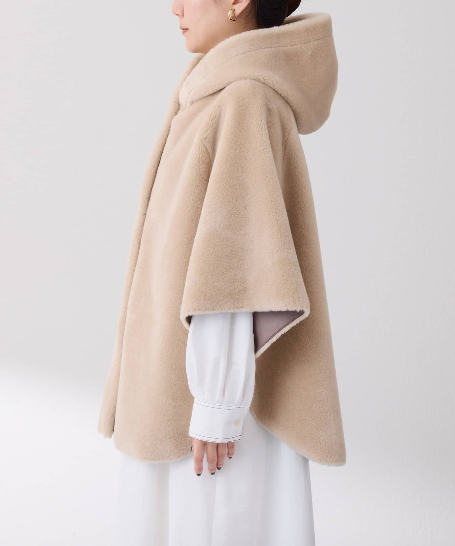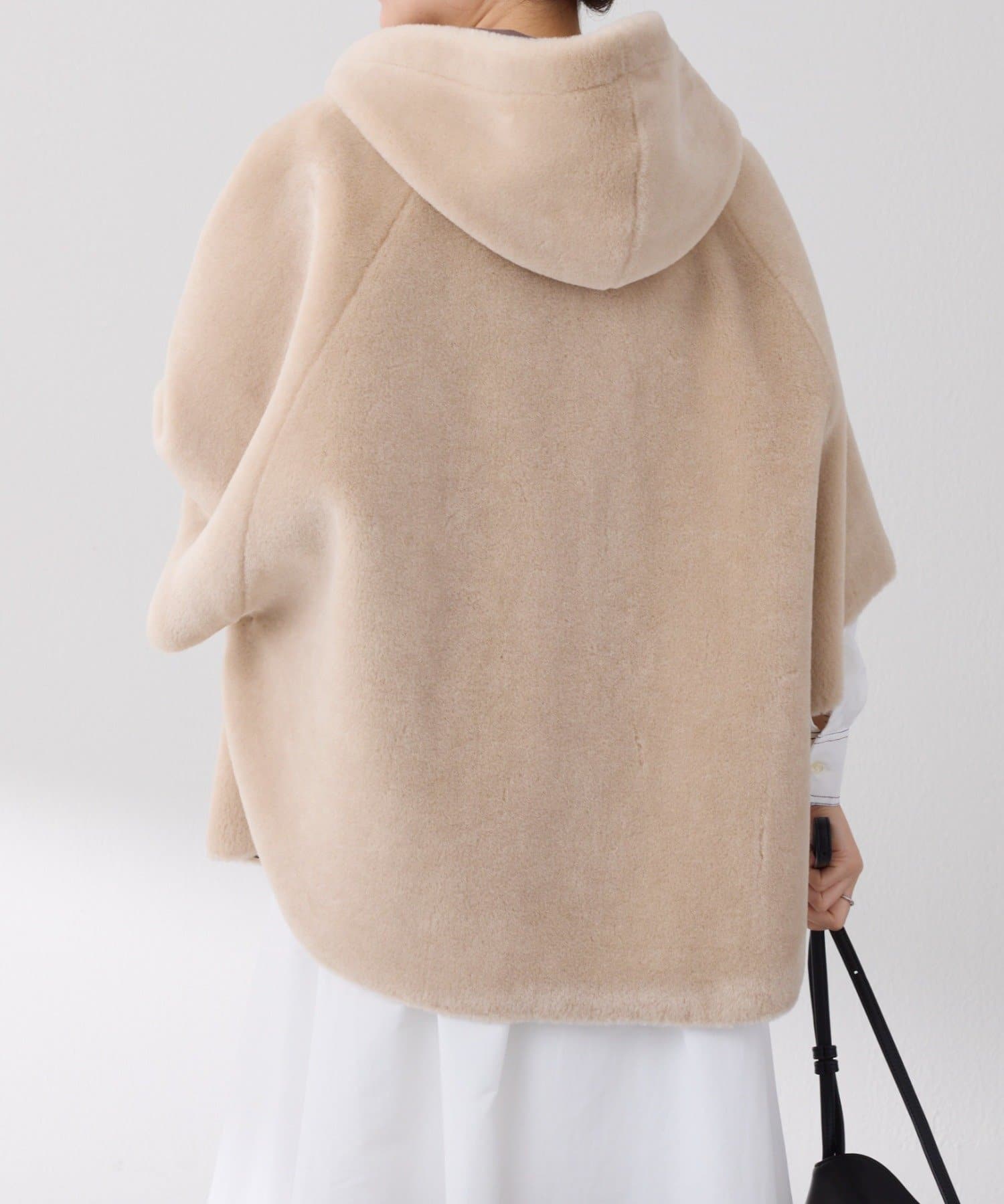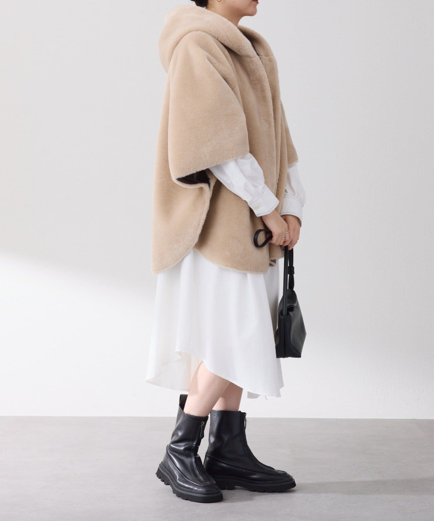 ・ショートファーとスエードのリバーシブルで楽しめるポンチョ。