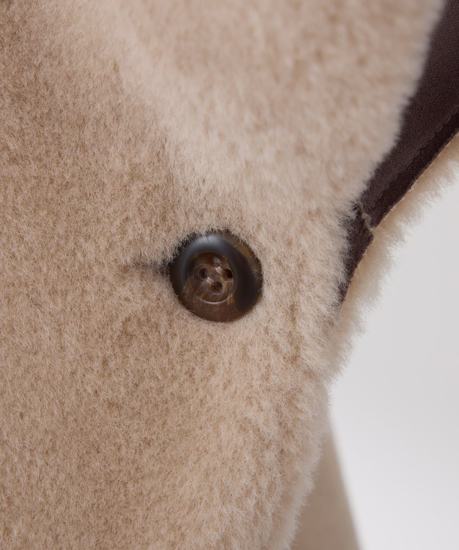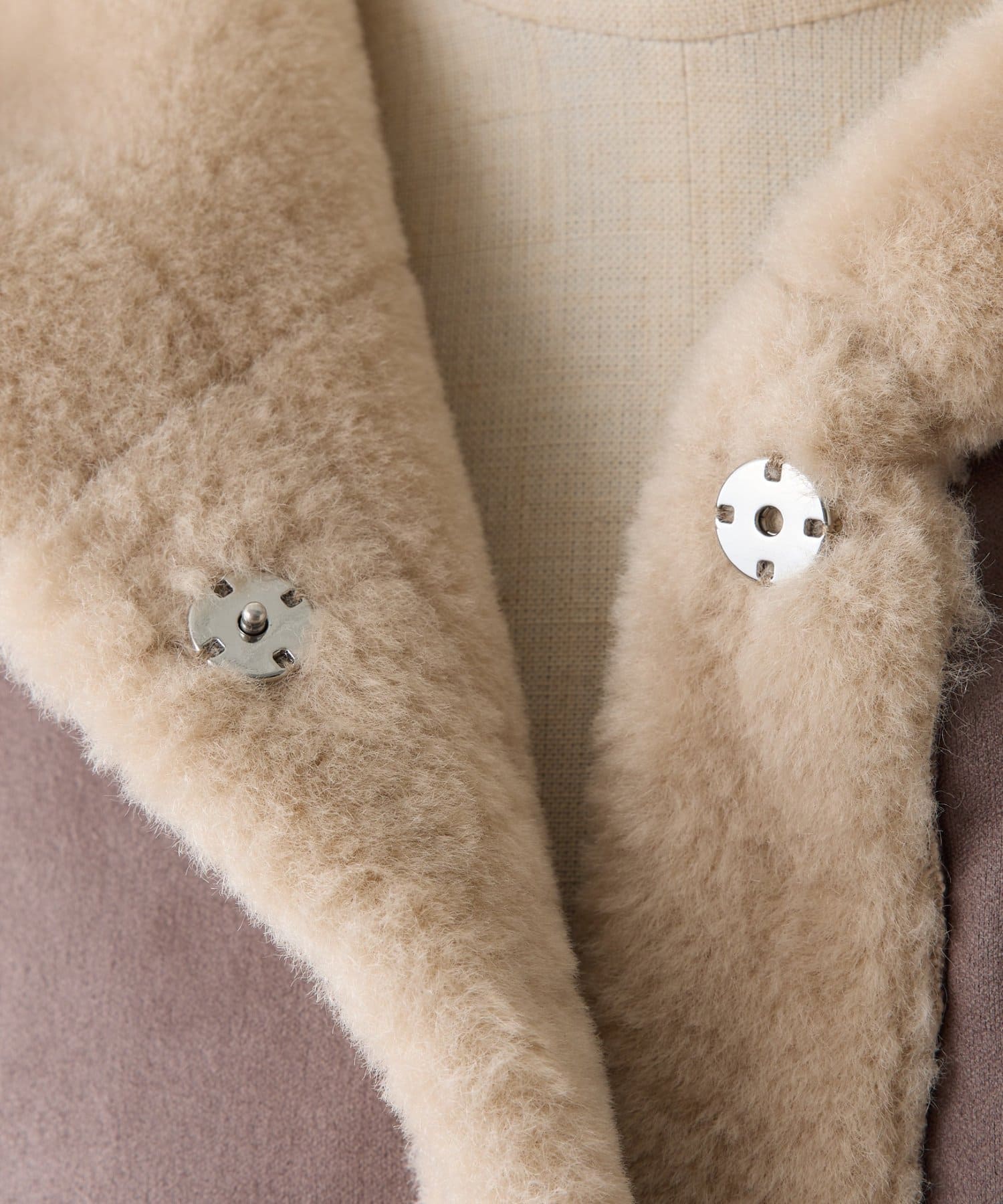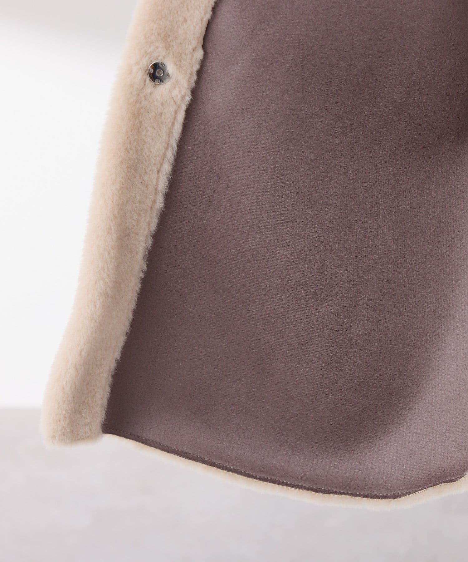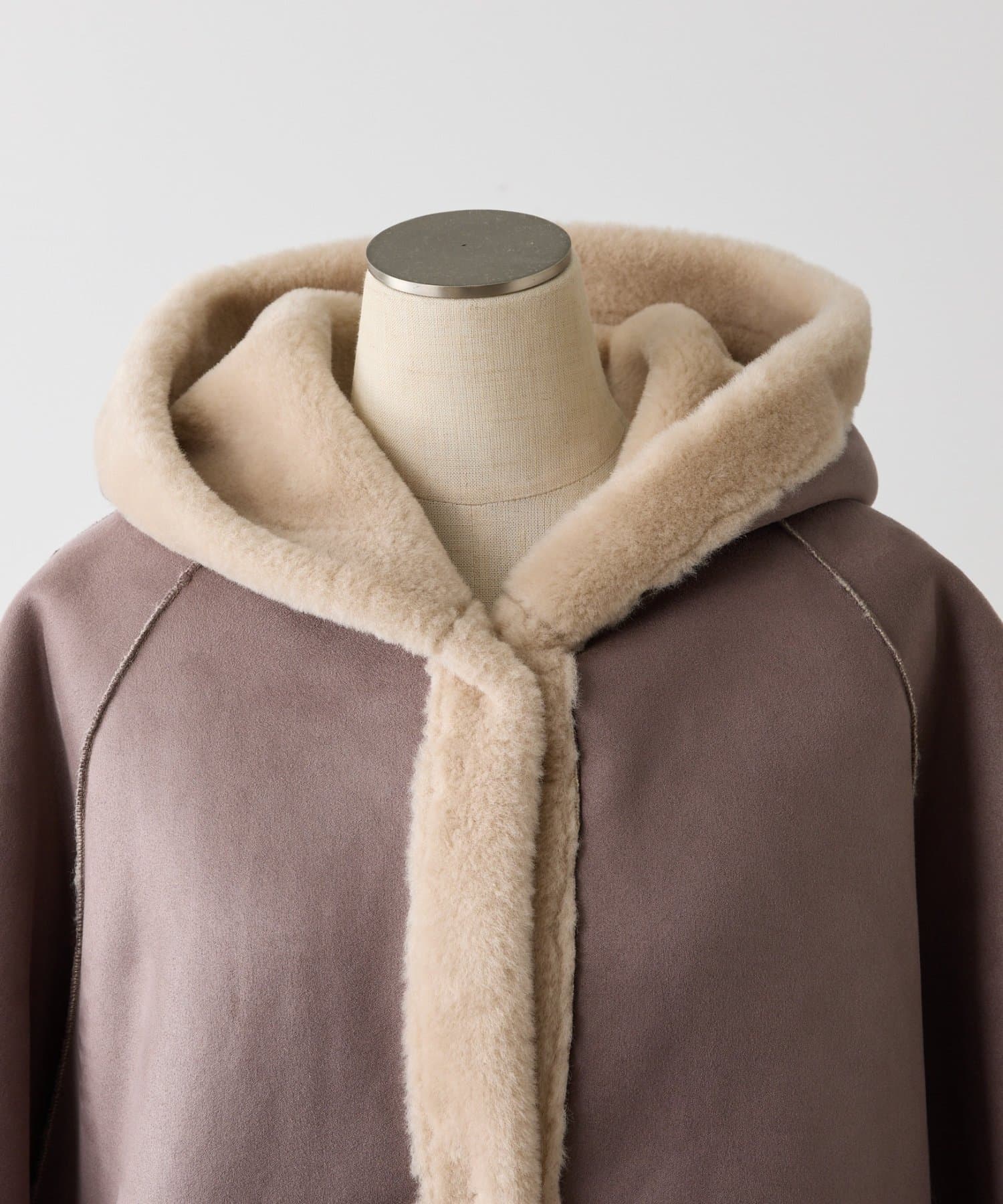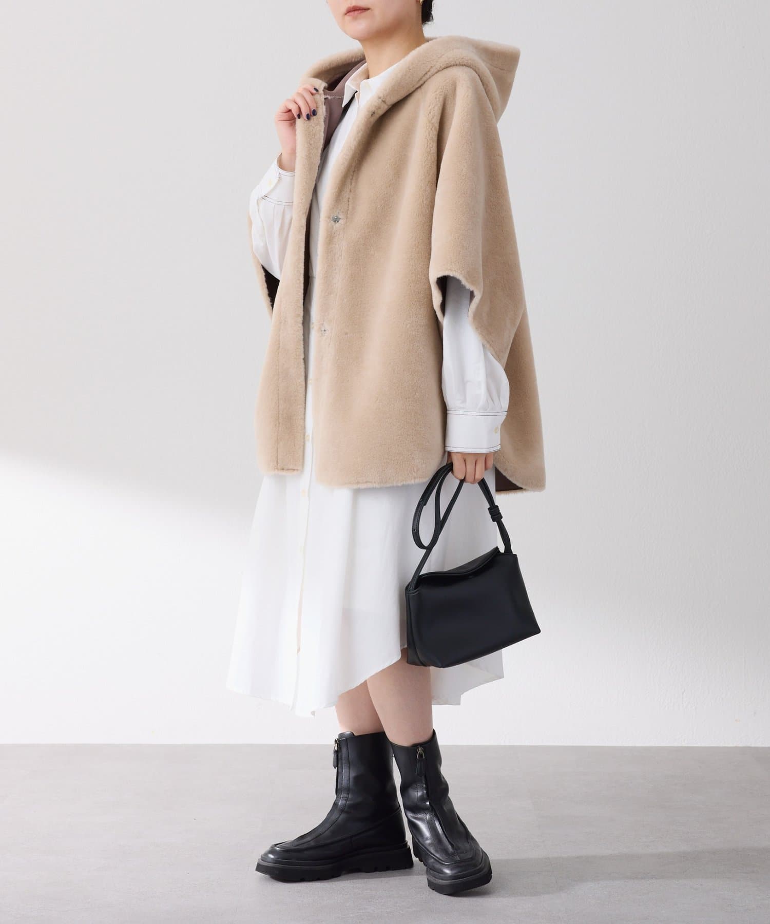 ・ショートファーとスエードのリバーシブルで楽しめるポンチョ。
