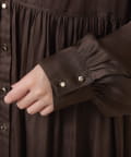 ・ウエスト部分からふんわりと広がるギャザーが、女性らしいシルエットを演出。