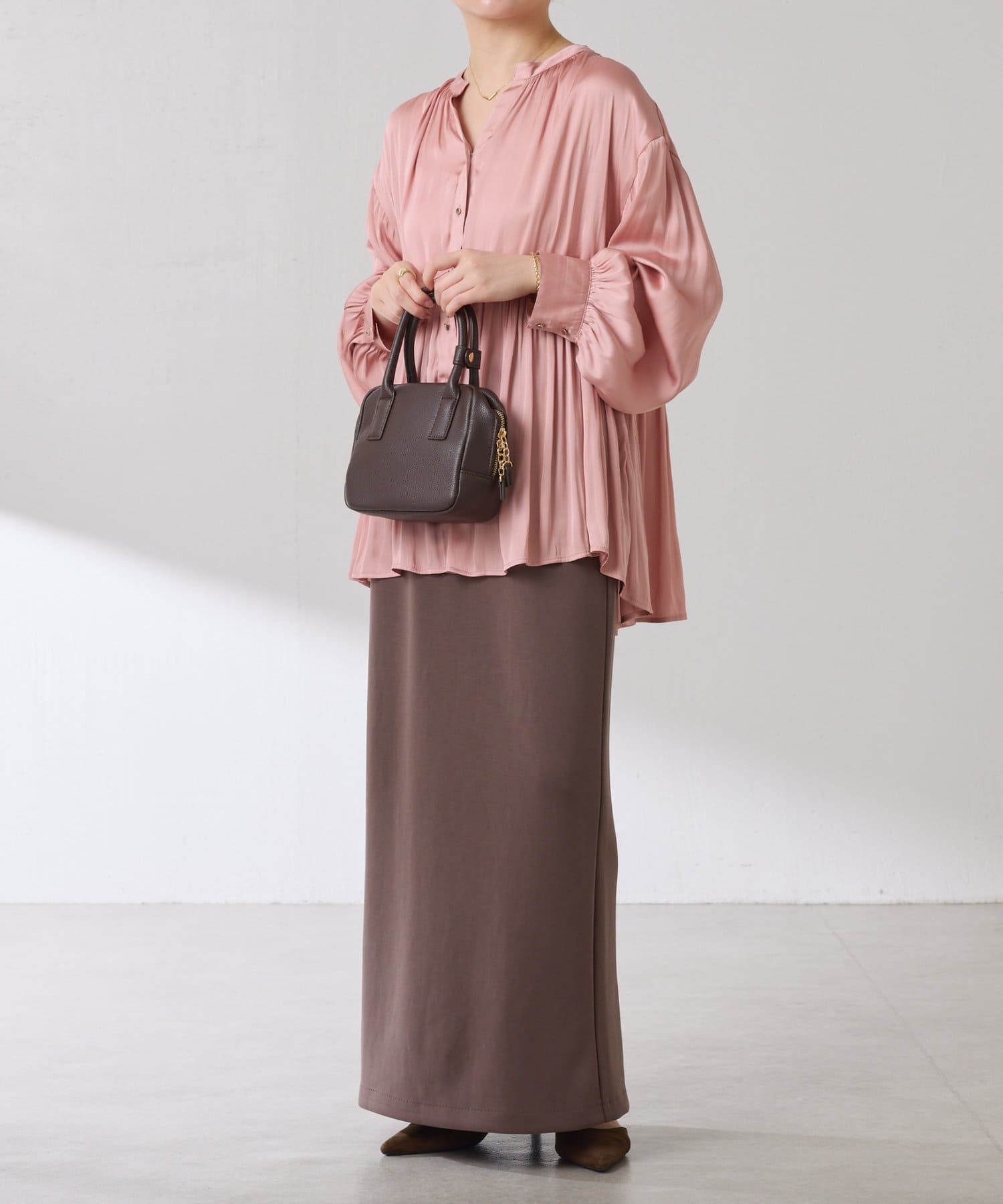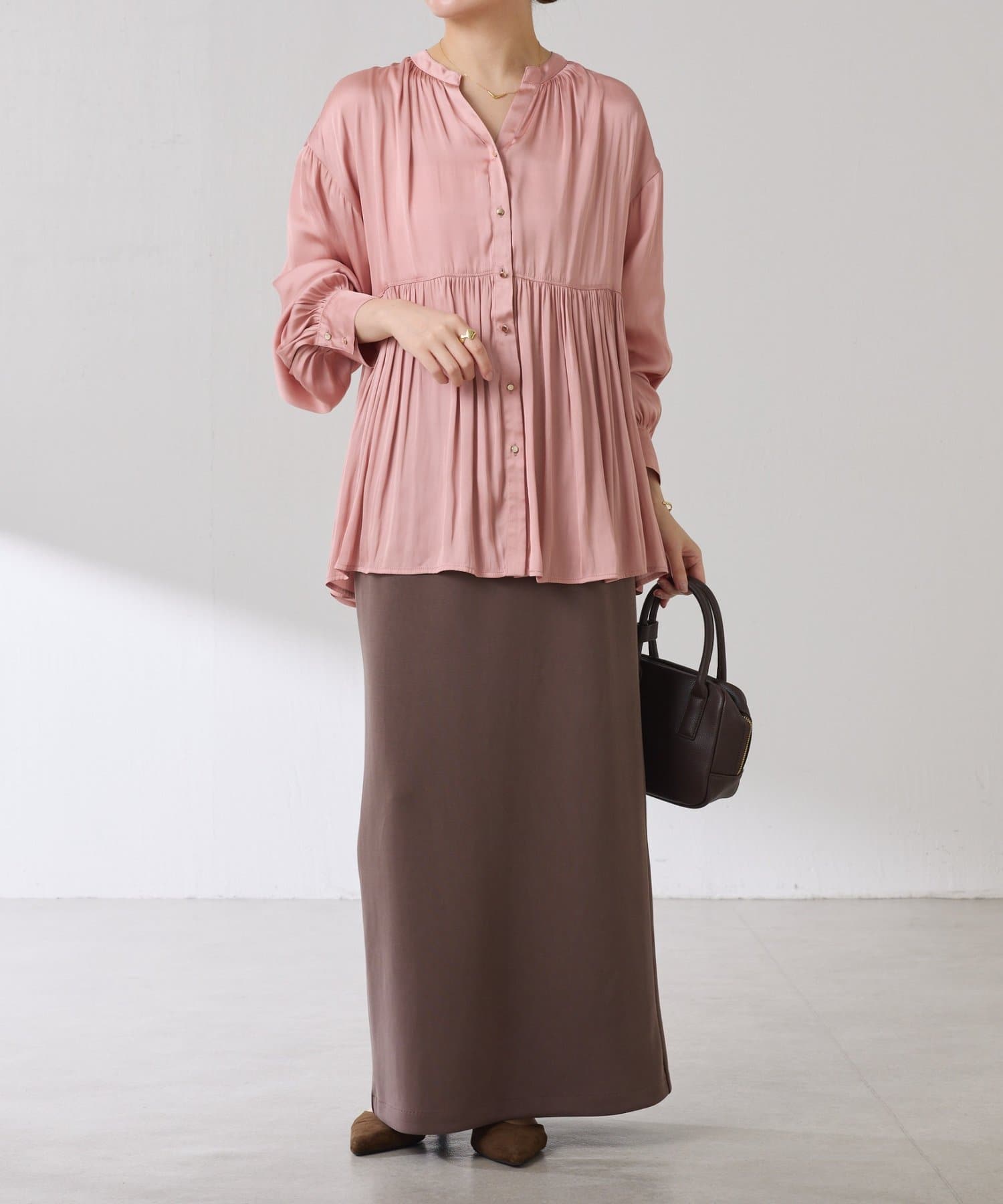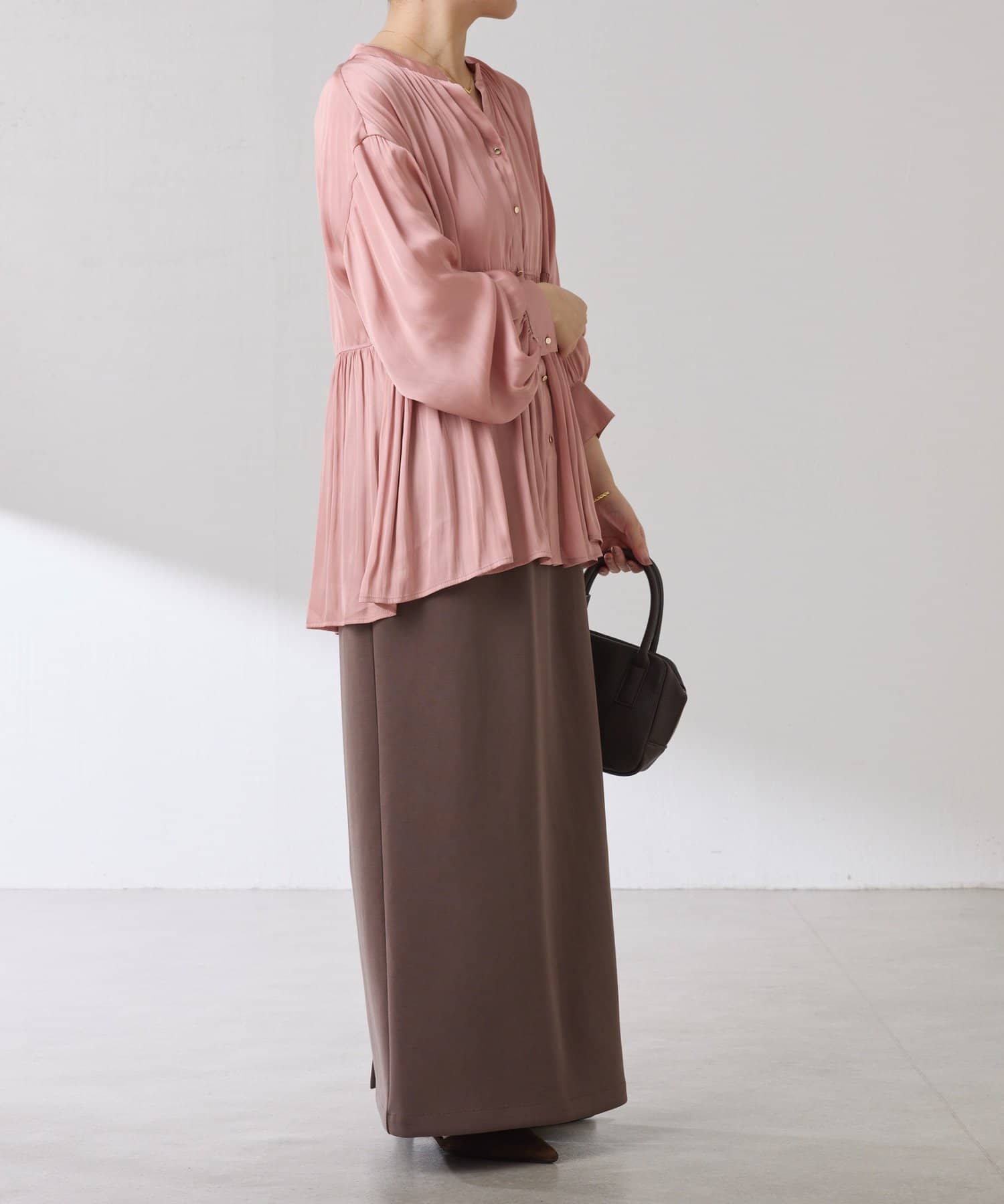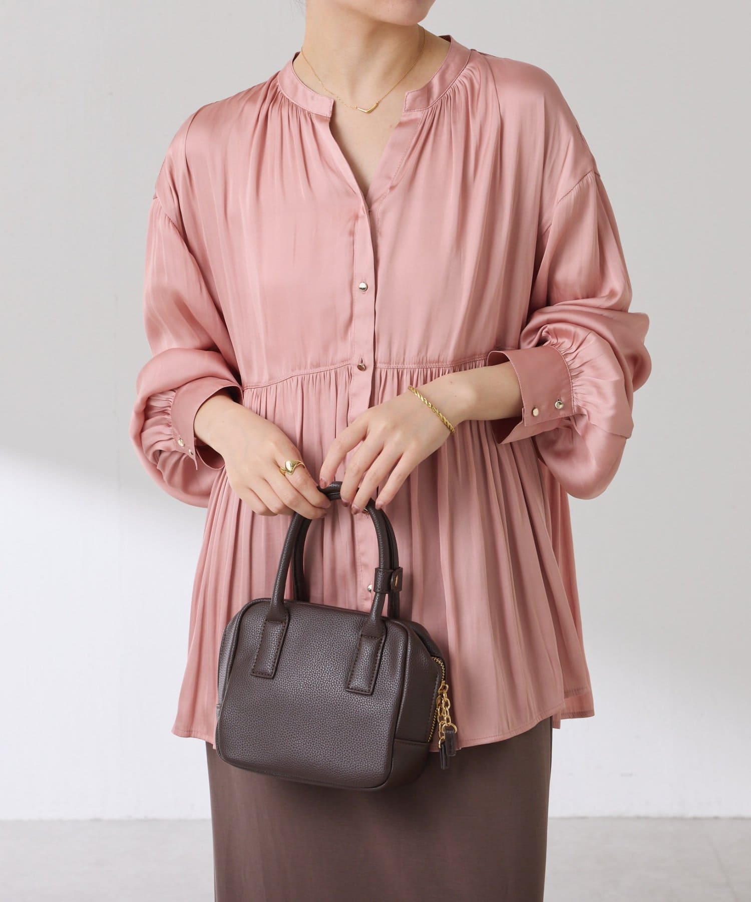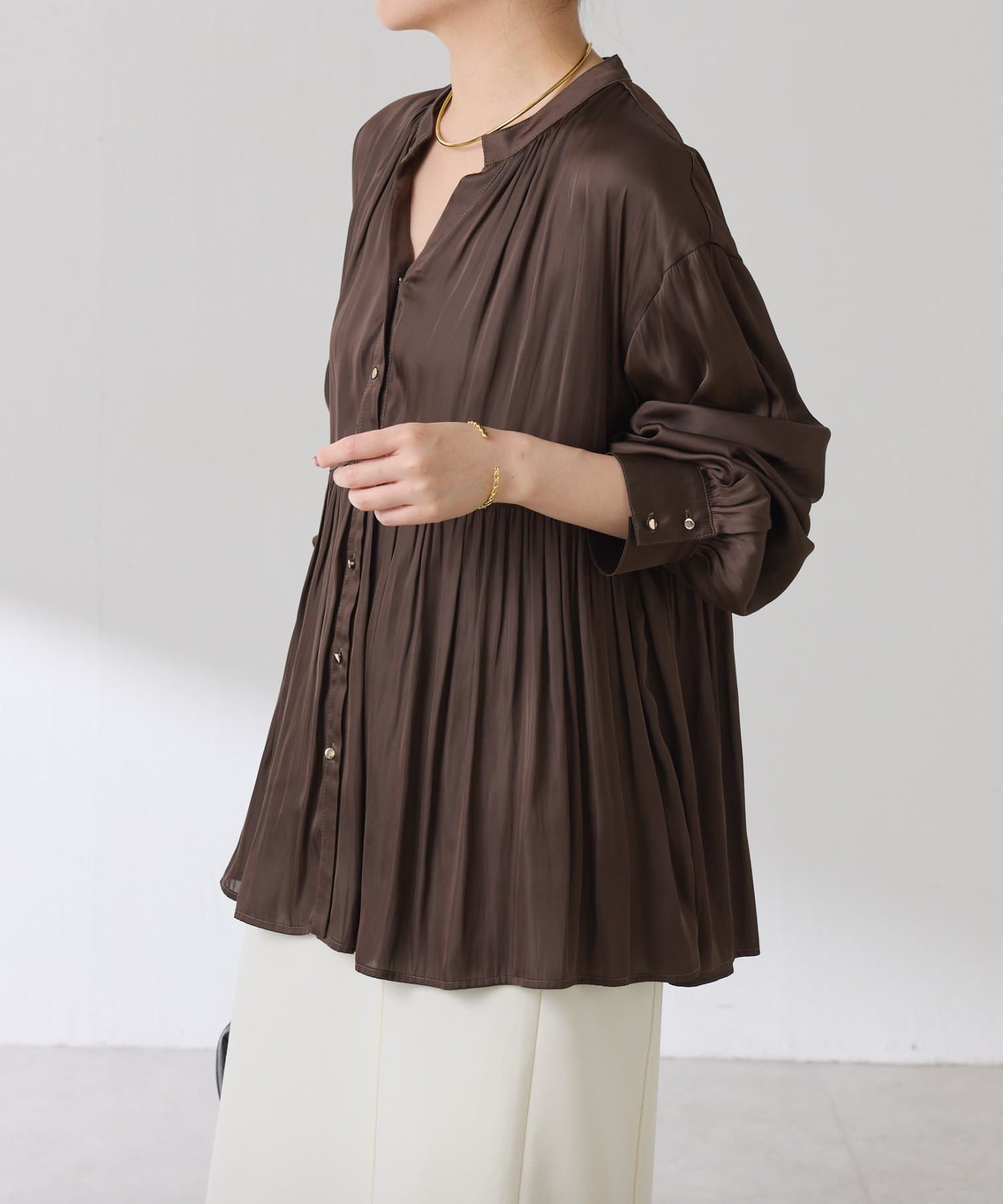 ・繊細な光沢感と柔らかな風合いが魅力のサテンブラウス。