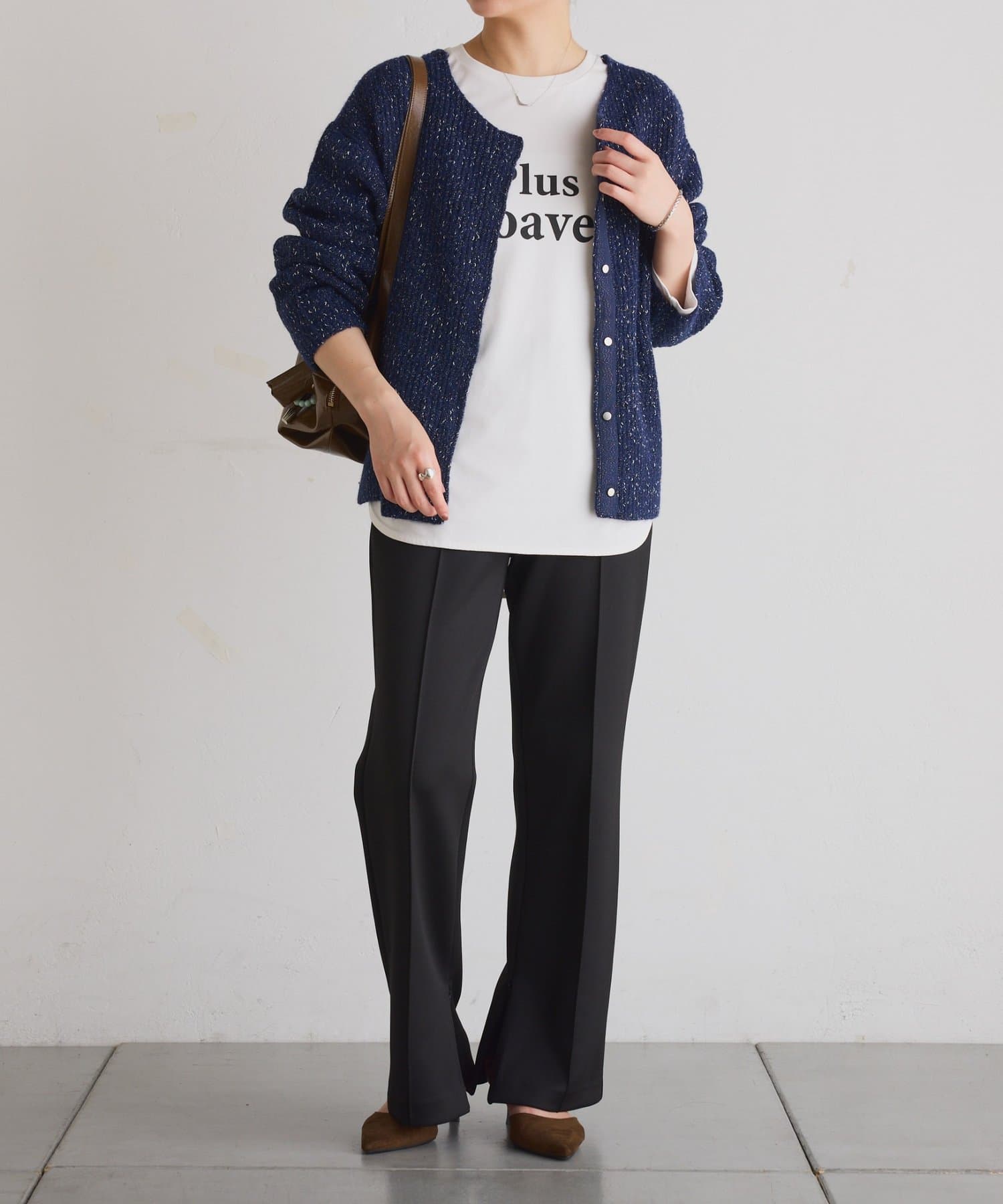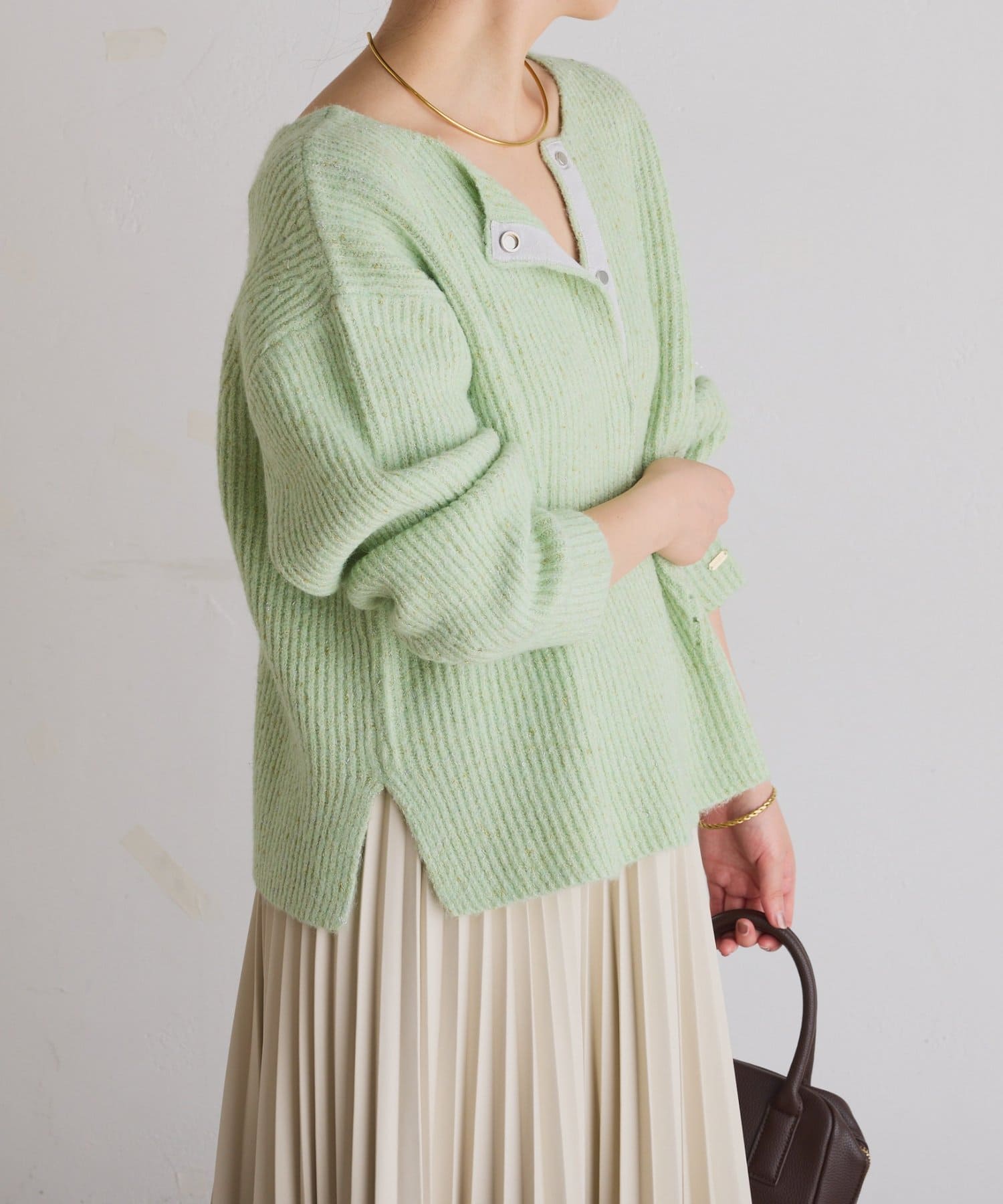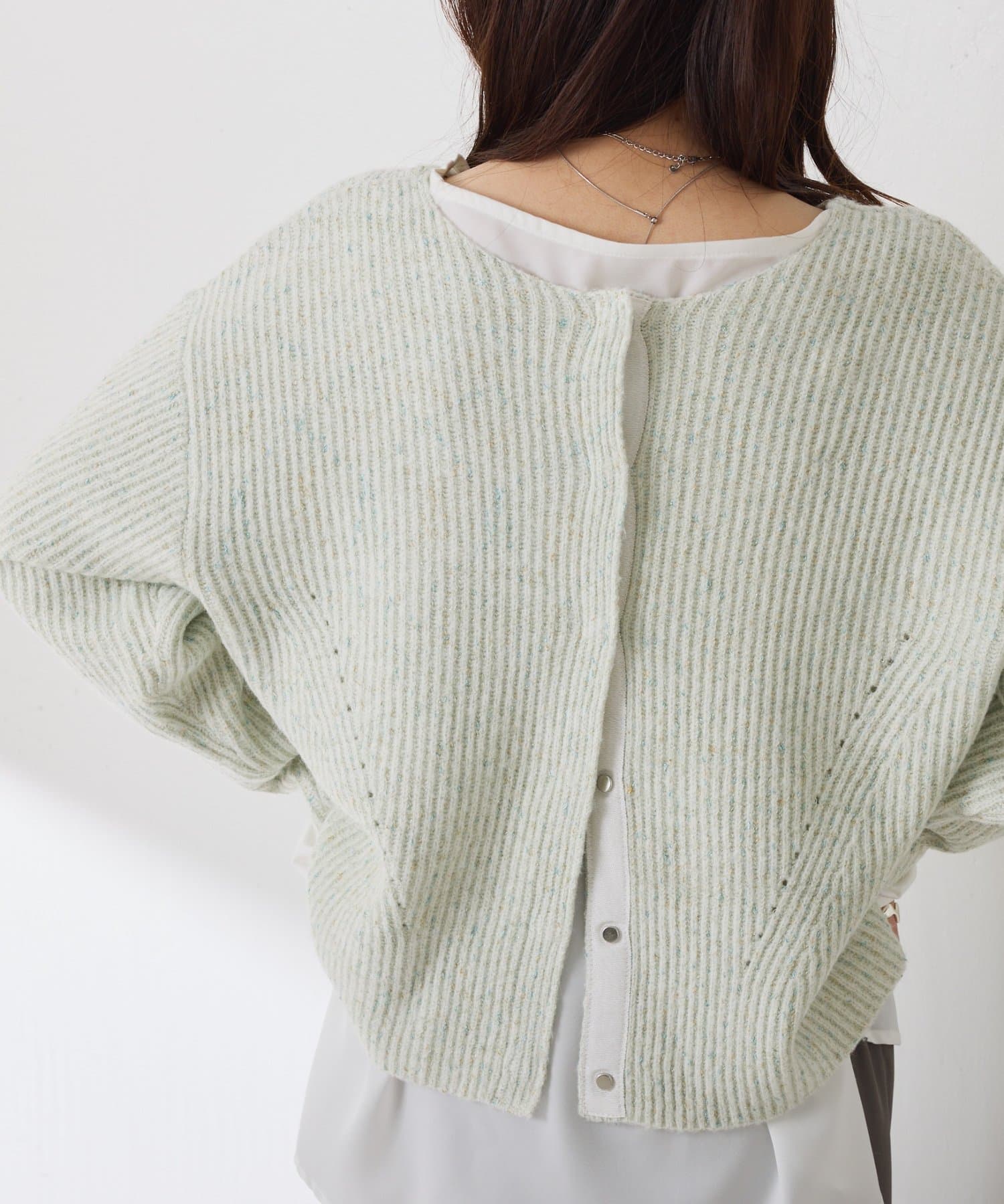 ・前後2WAYで着用できるのでカーディガンとプルオーバーの2つの着方を楽しめます。