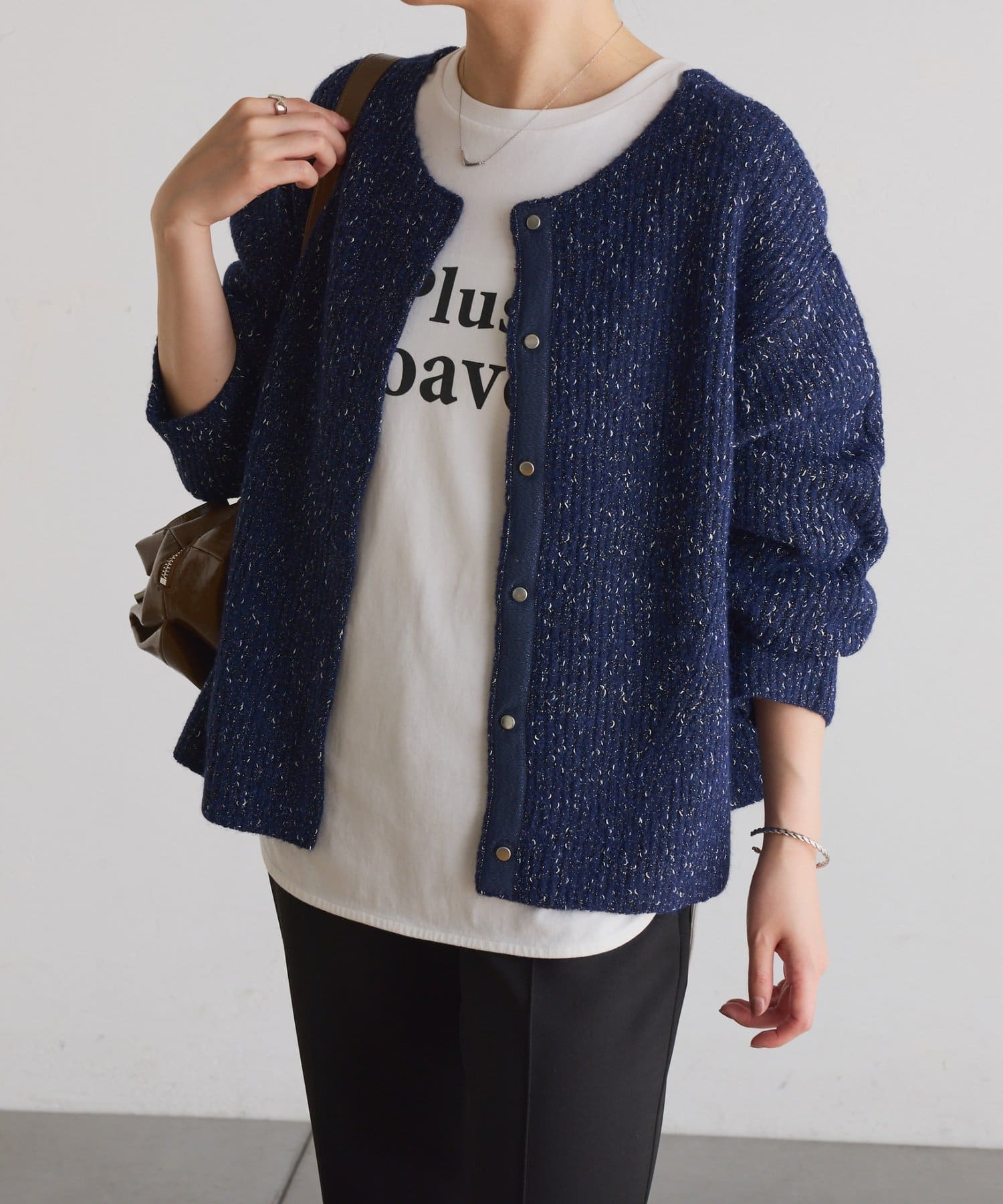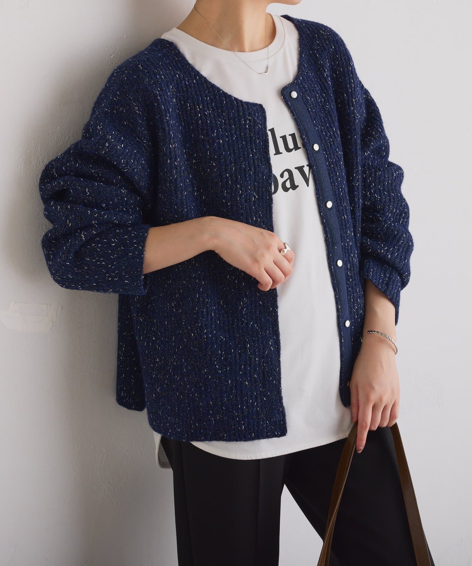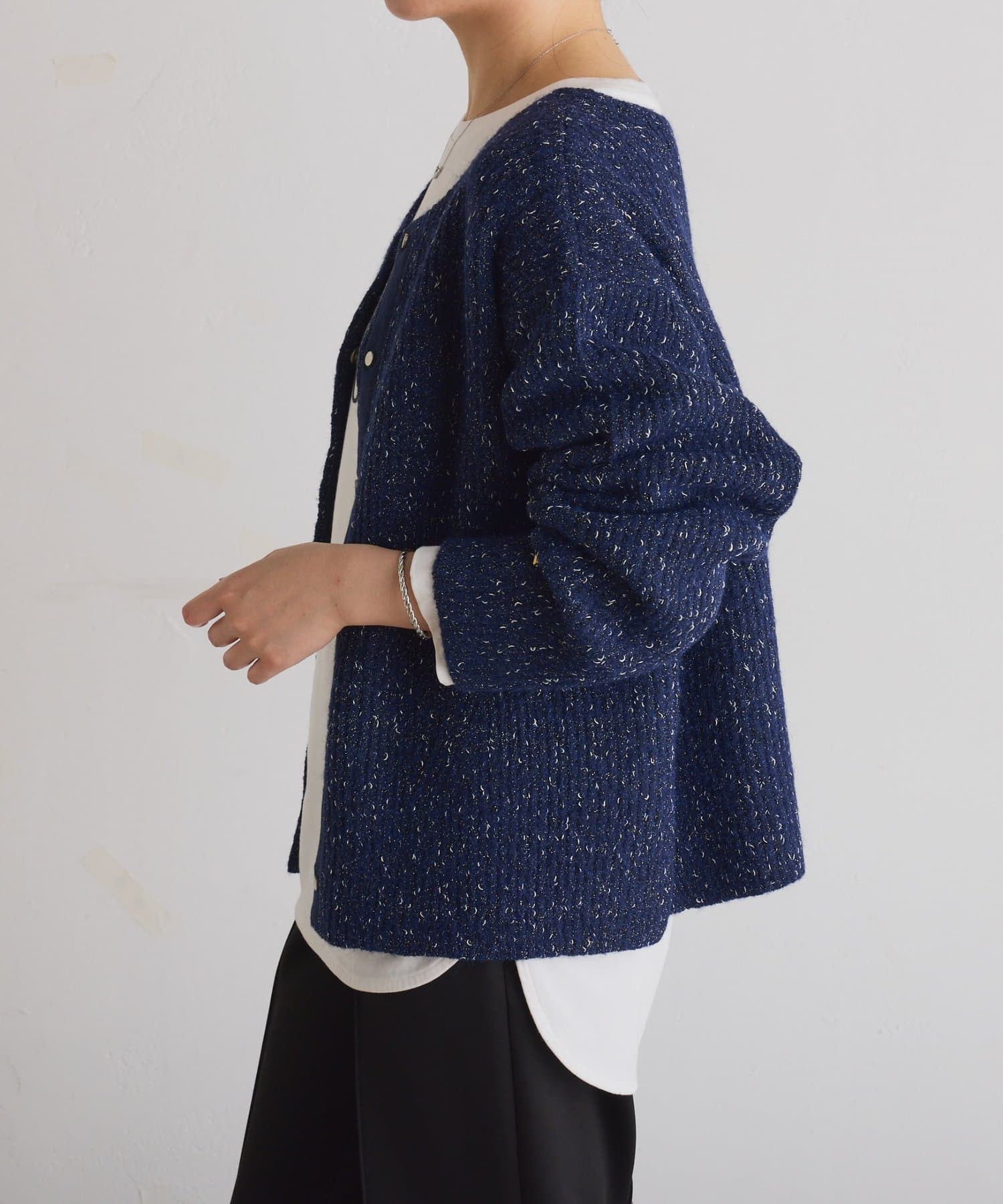 ・ラメのノットを引きそろえた表情感のあるキラキラニット。