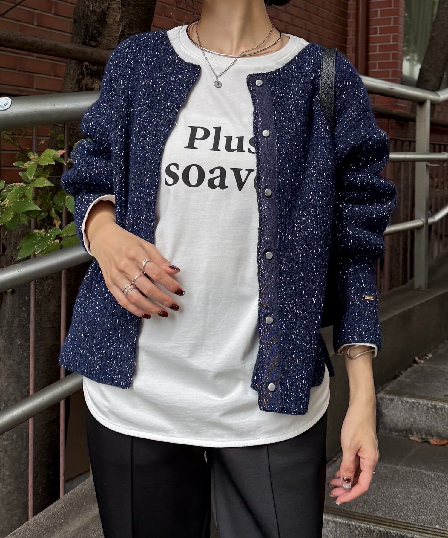 ロゴロンTをインナーに入れてカジュアルに普段使いもおすすめです。