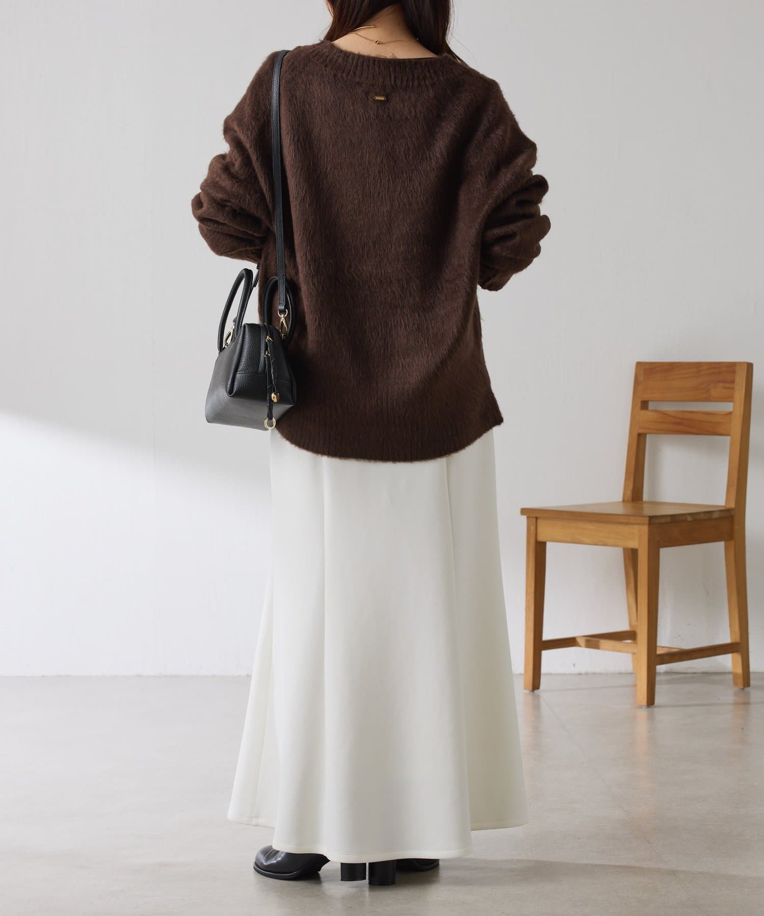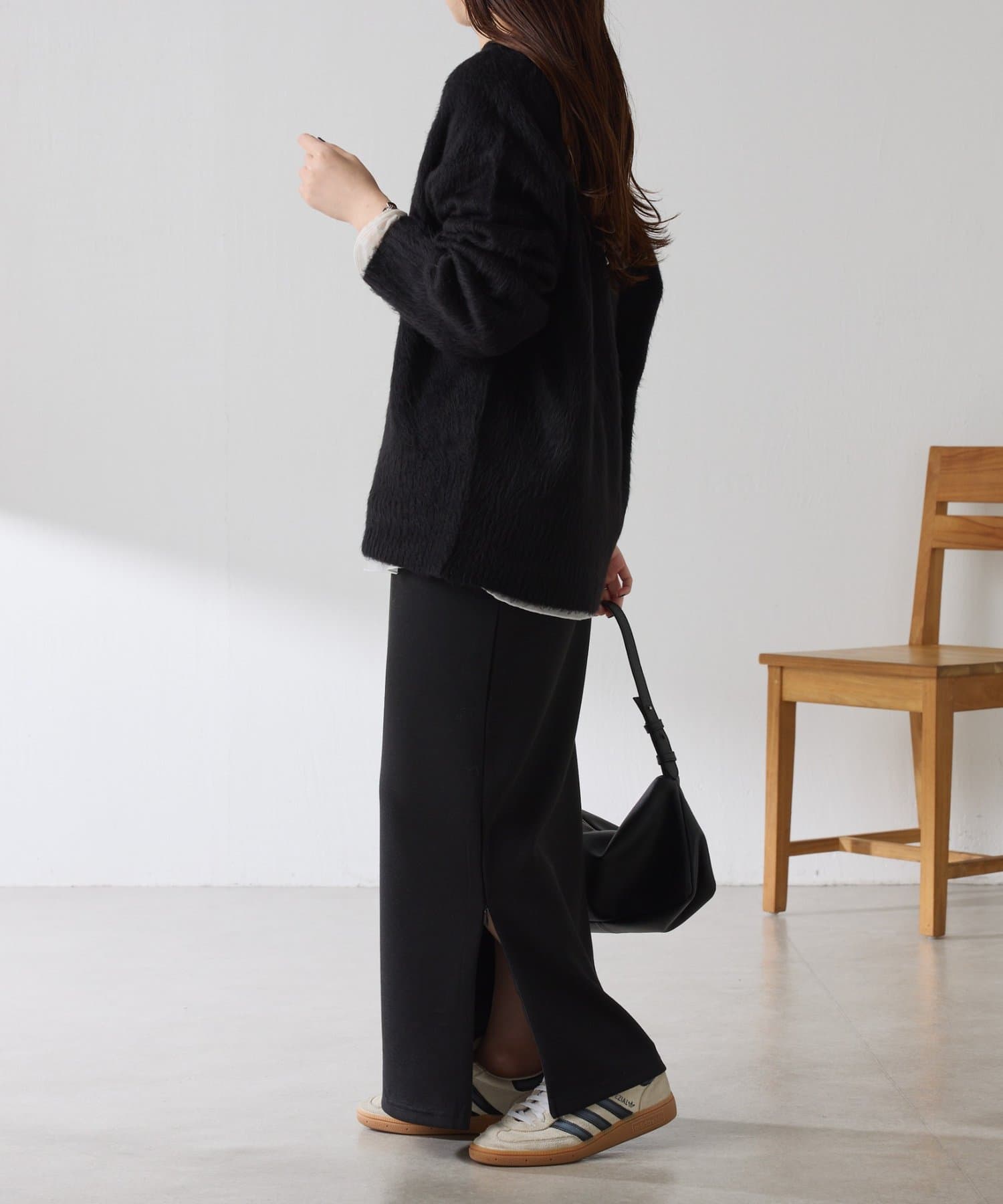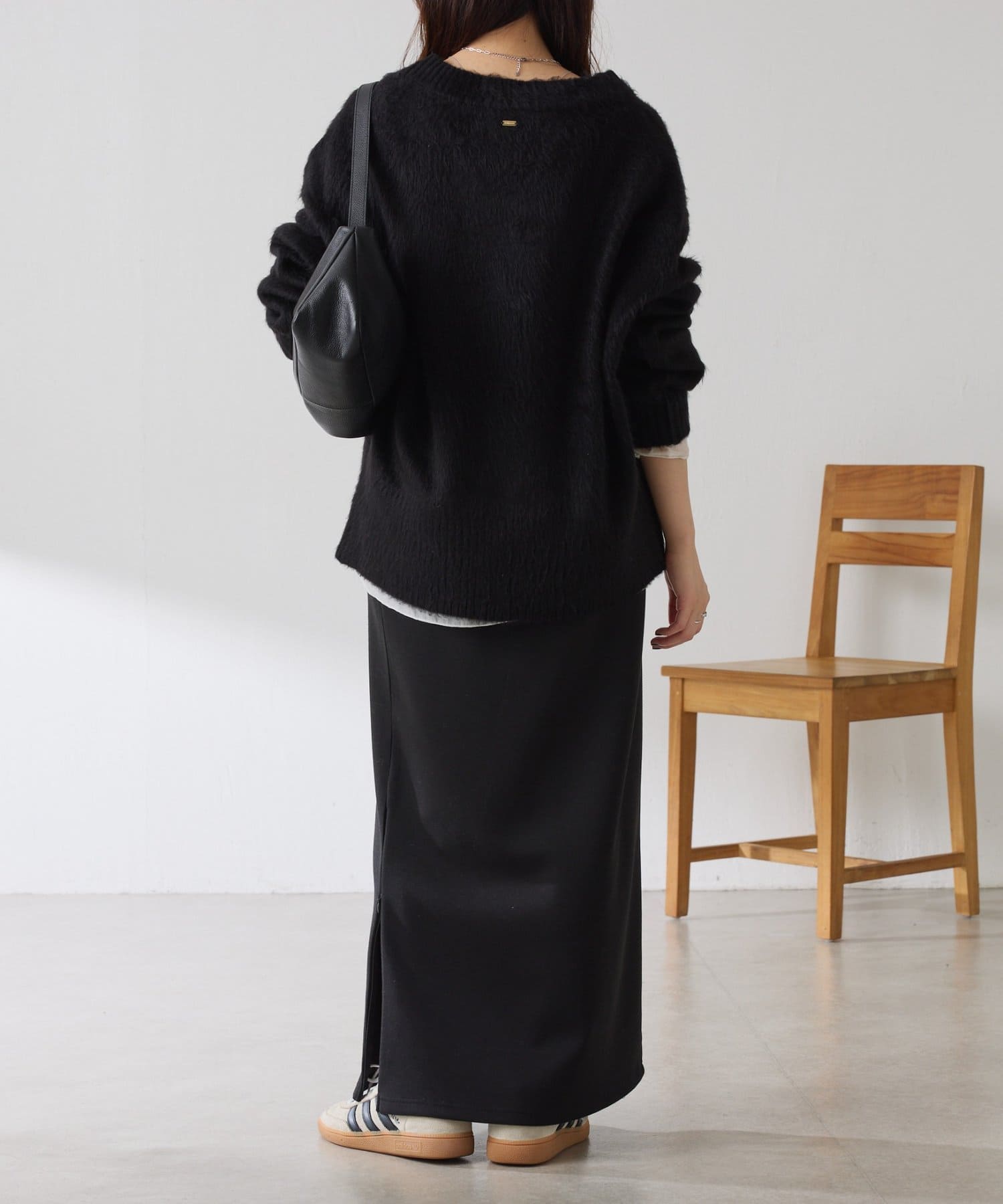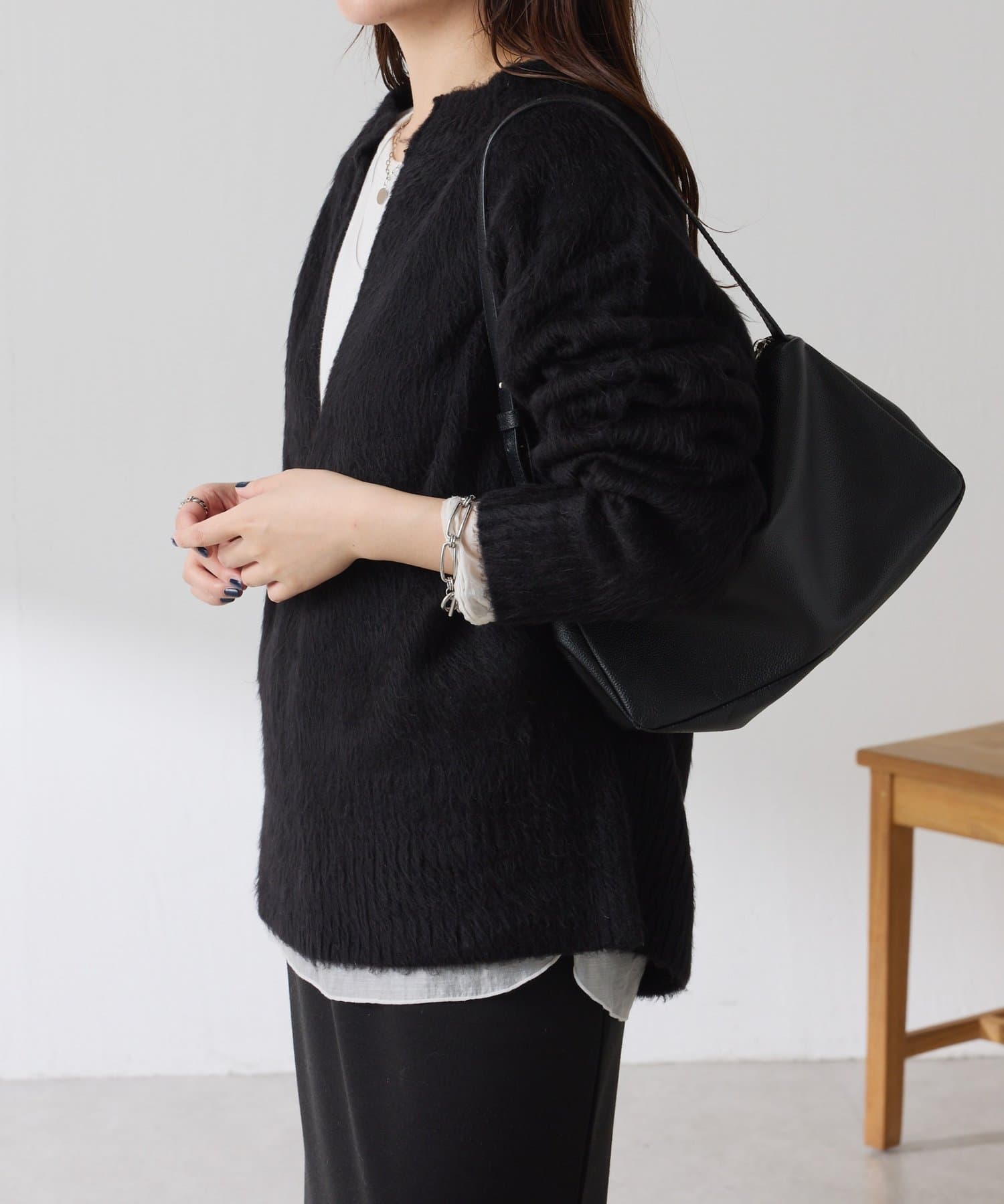 ・とにかく軽いエアリーな糸を使用した深Vニット。着ぶくれ感もなく、ストレスフリーな着心地です。