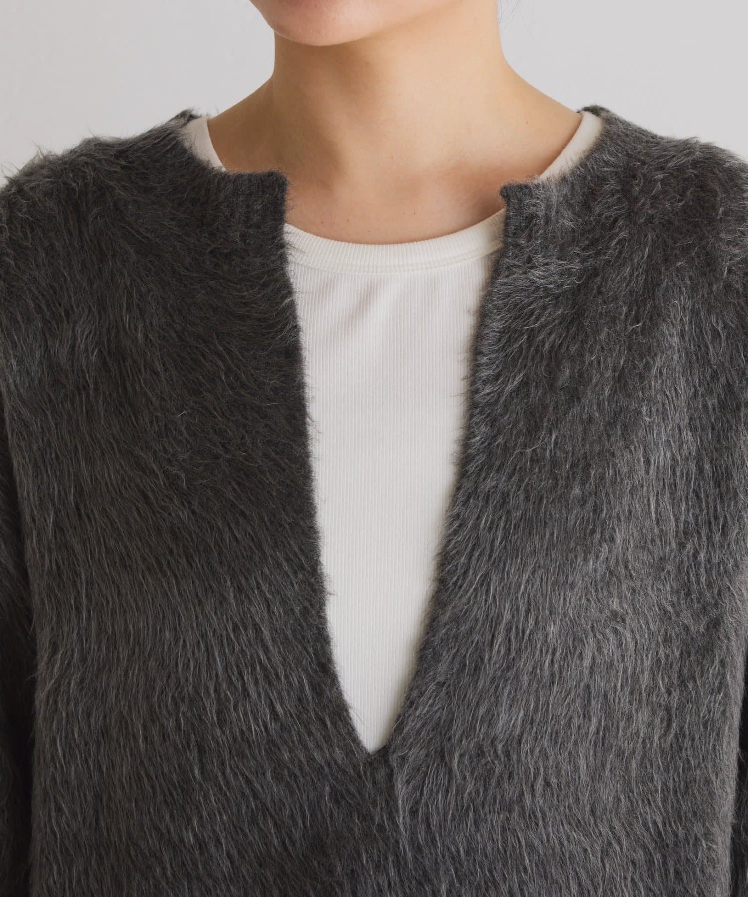 ふわっとした毛足感と軽さが魅力の深Vニット