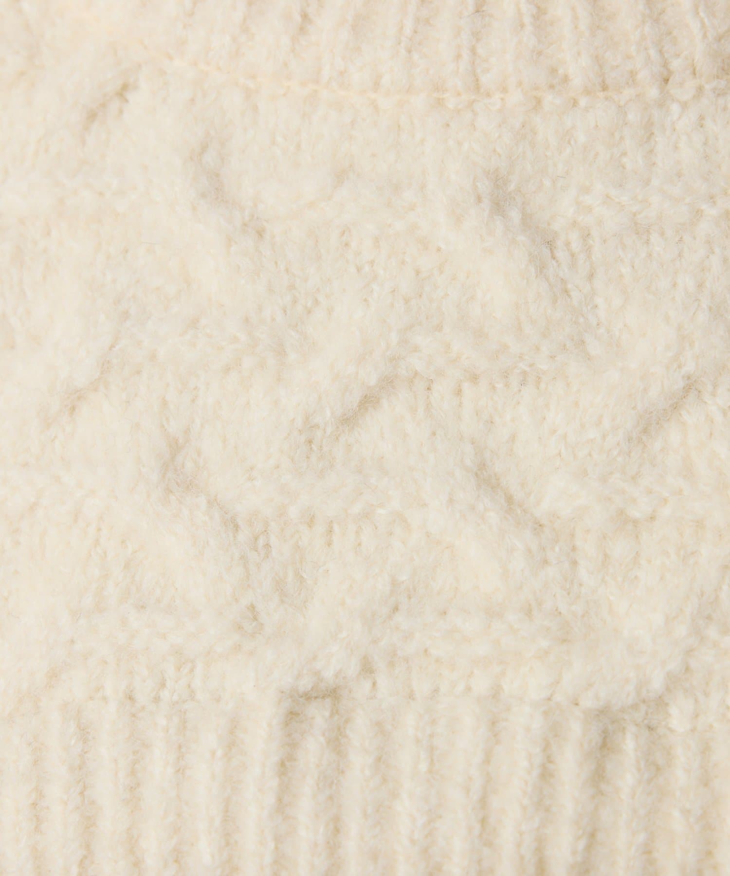 ・ほっこりとした印象にならないよう変形柄の編地にすることで大人っぽい印象に仕上げました。