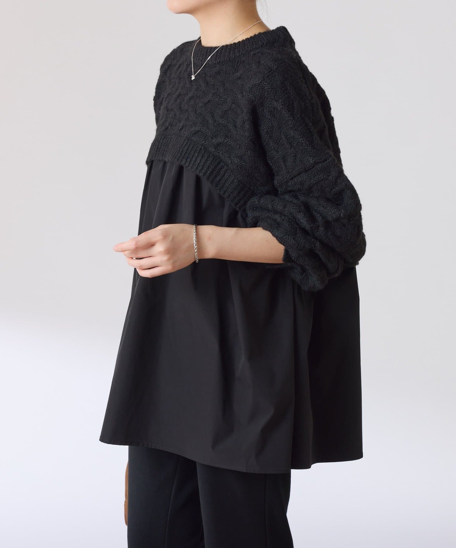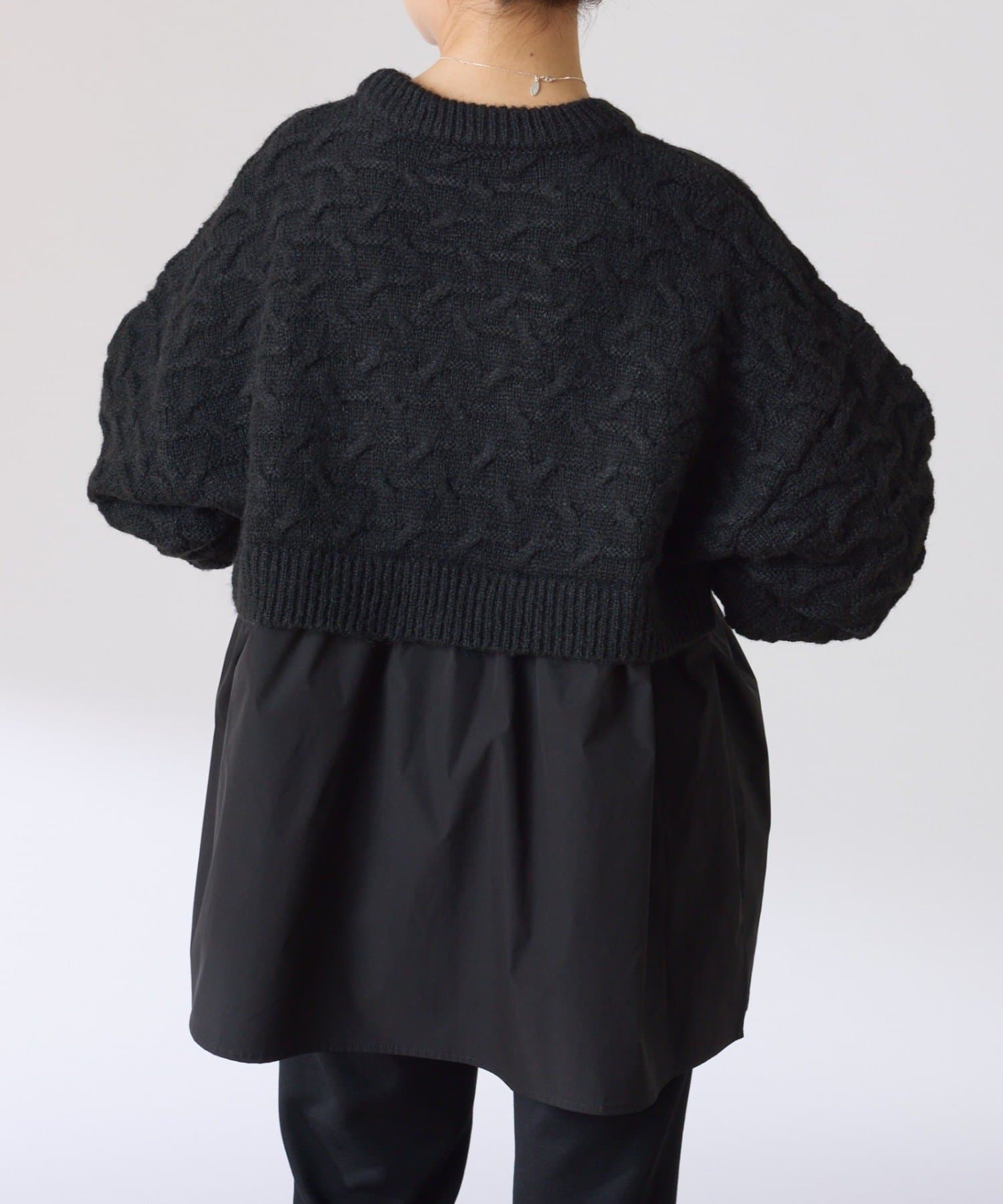 1枚でレイヤードデザインを楽しめるドッキングニット