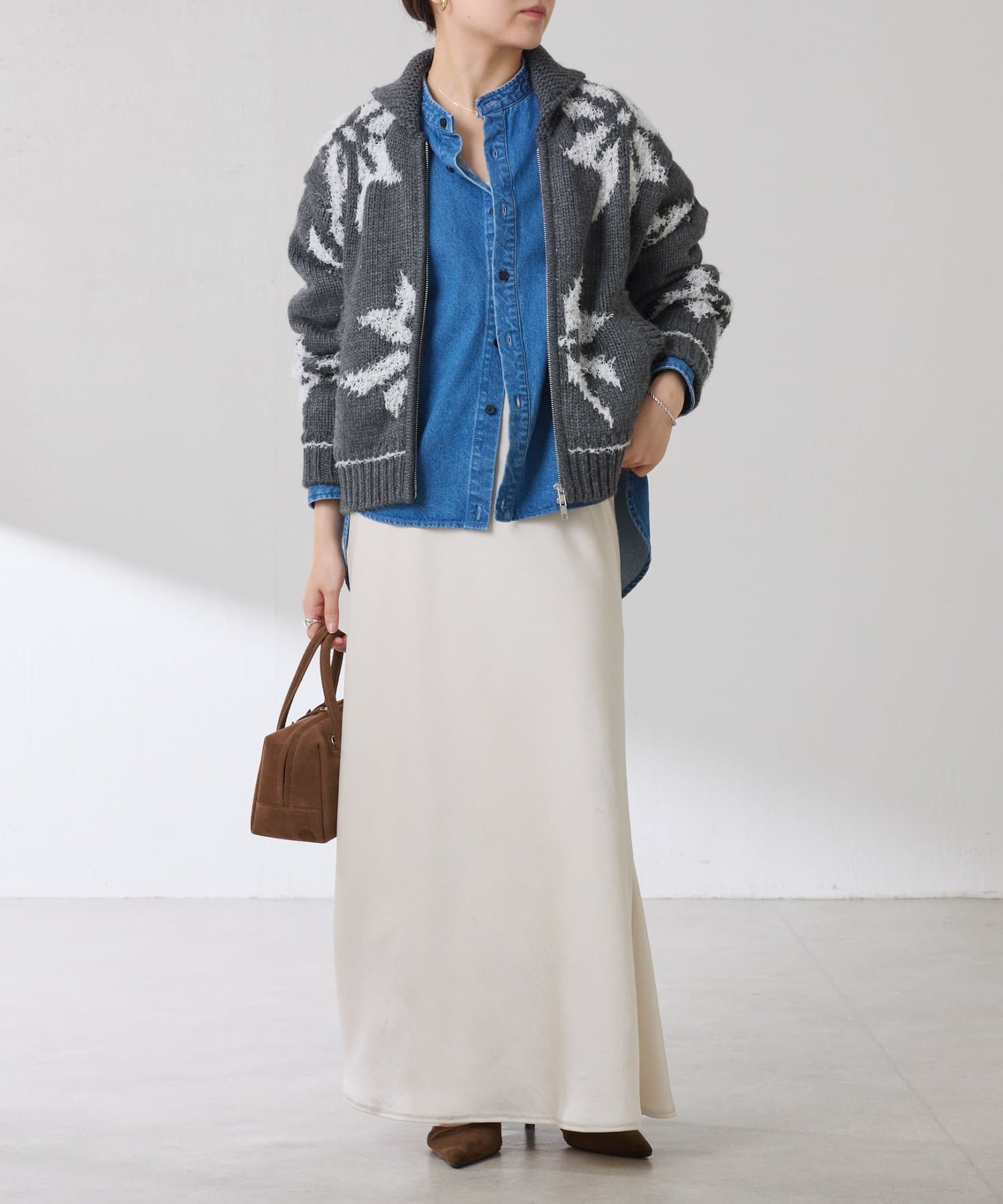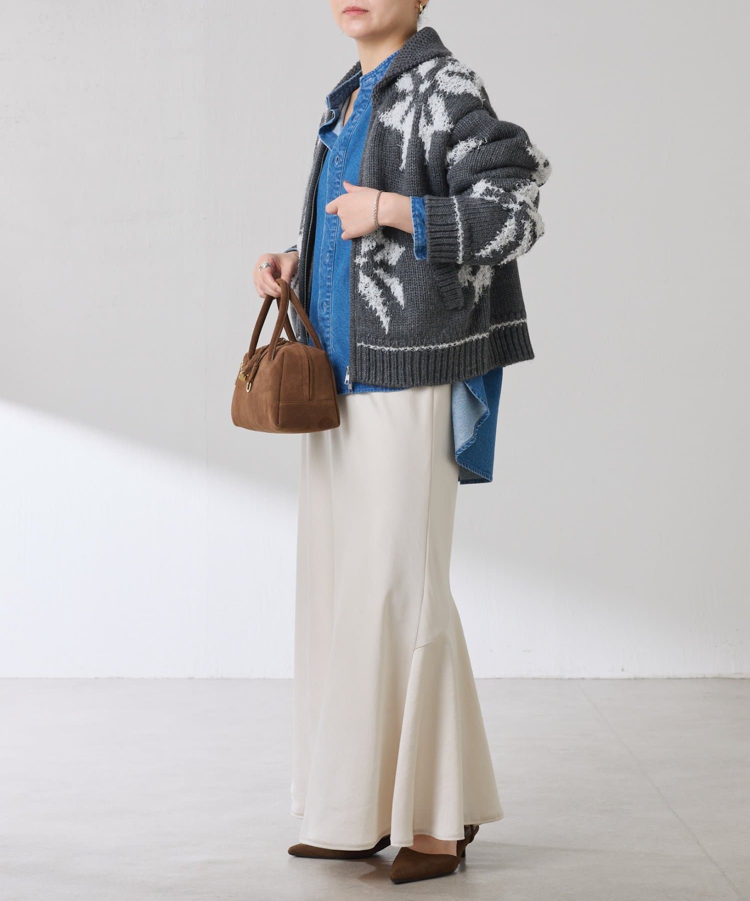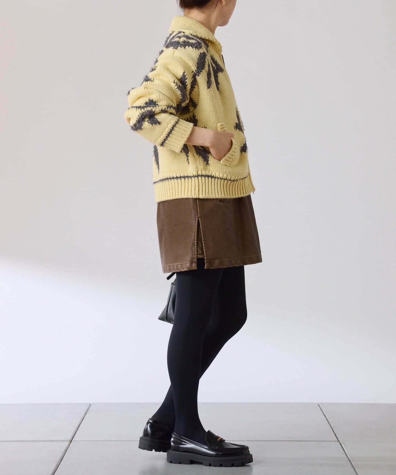 ・コンパクトなシルエットにすることでカウチンカーディガンもカジュアルすぎない印象に。