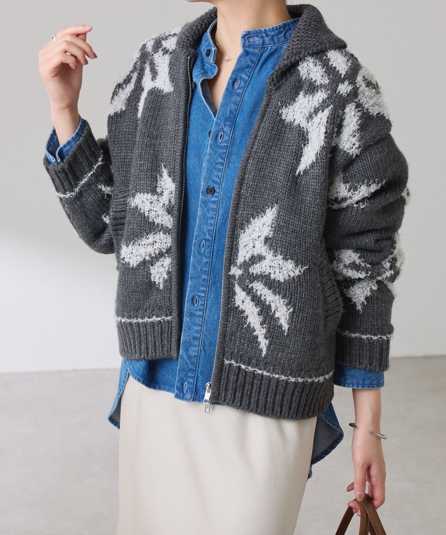 COLLAGE GALLARDAGALANTE(コラージュ ガリャルダガランテ) 【着心地◎】ビッグモチーフカウチンカーディガン