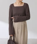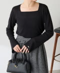 女性らしい印象で着られるスクエアネックトップス