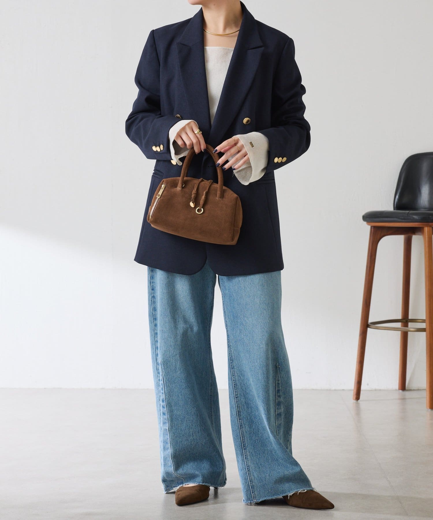 • ニットとのレイヤードはもちろん、1枚着でもサマになるようデザインにこだわりました。