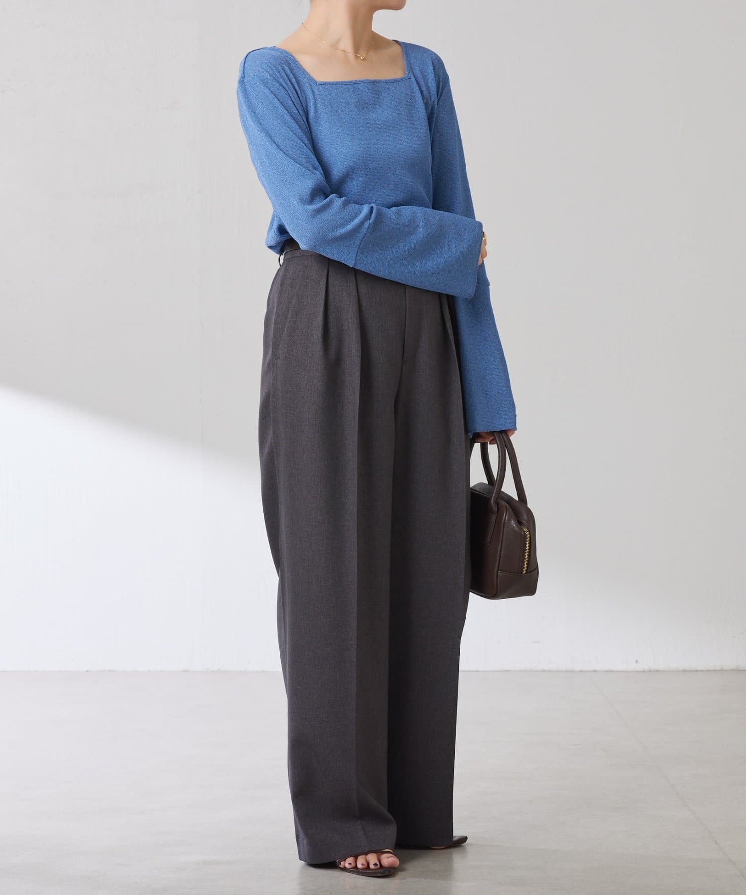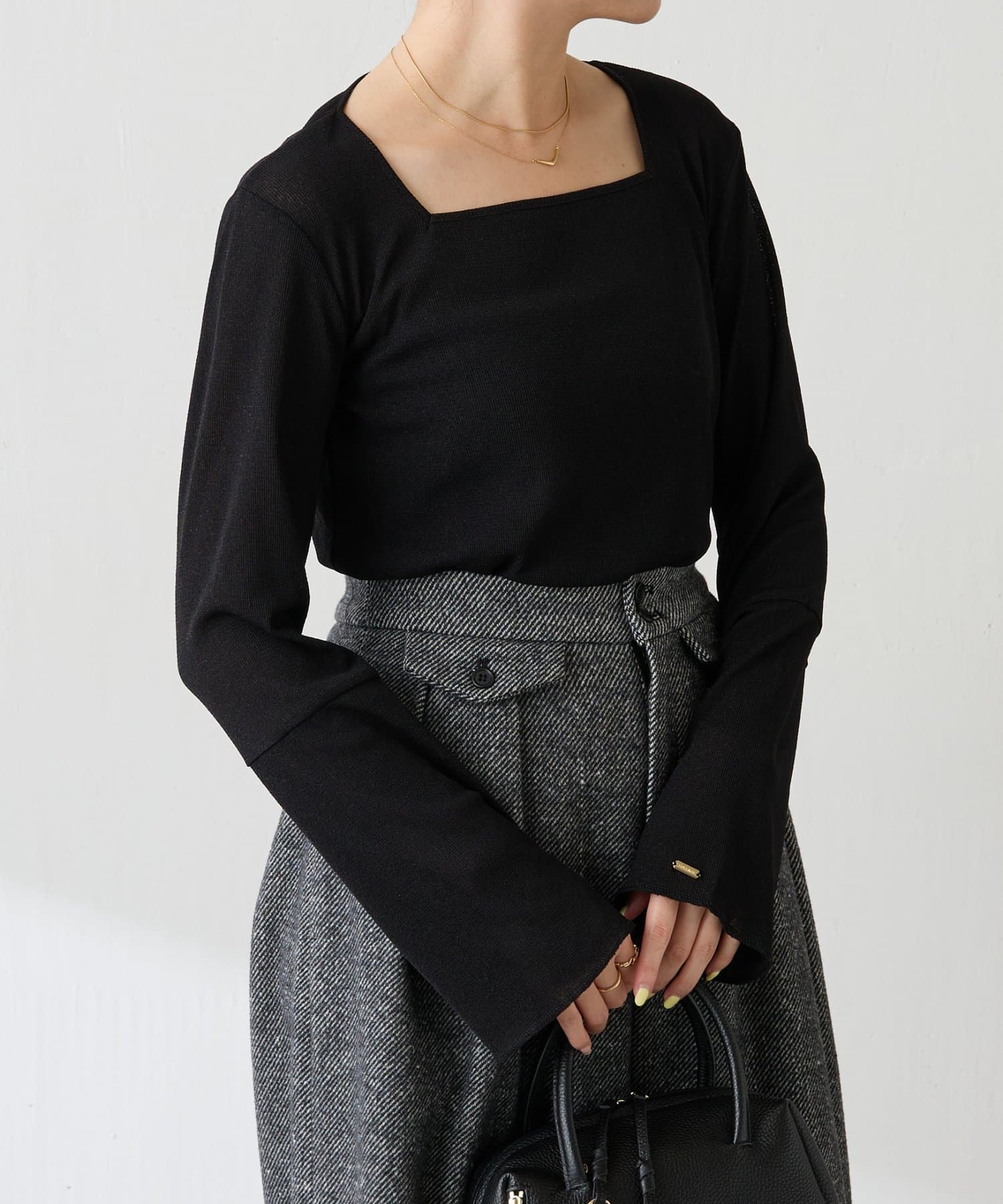 • スクエアネックなので鎖骨まわりをほっそり綺麗に見せてくれます。