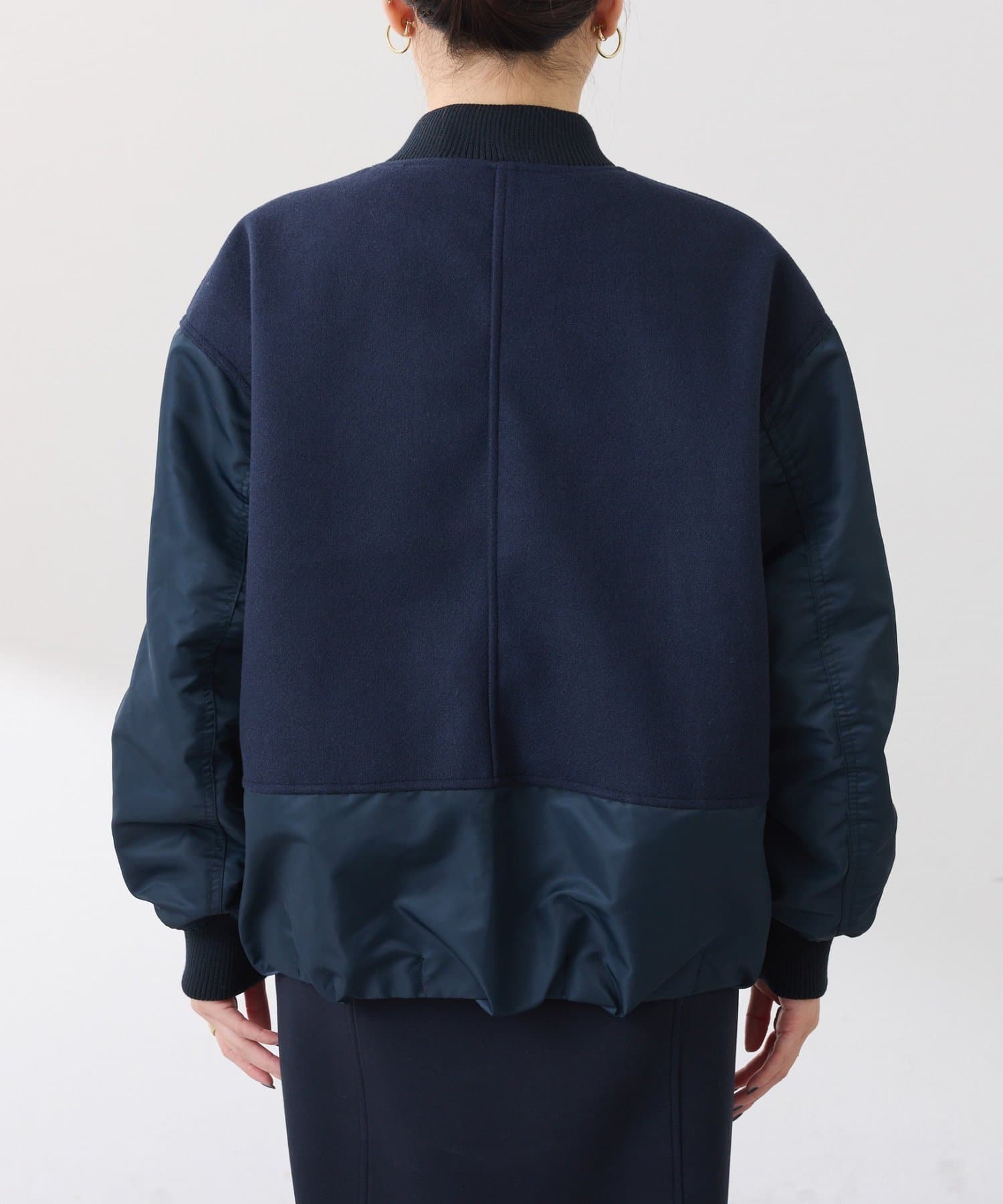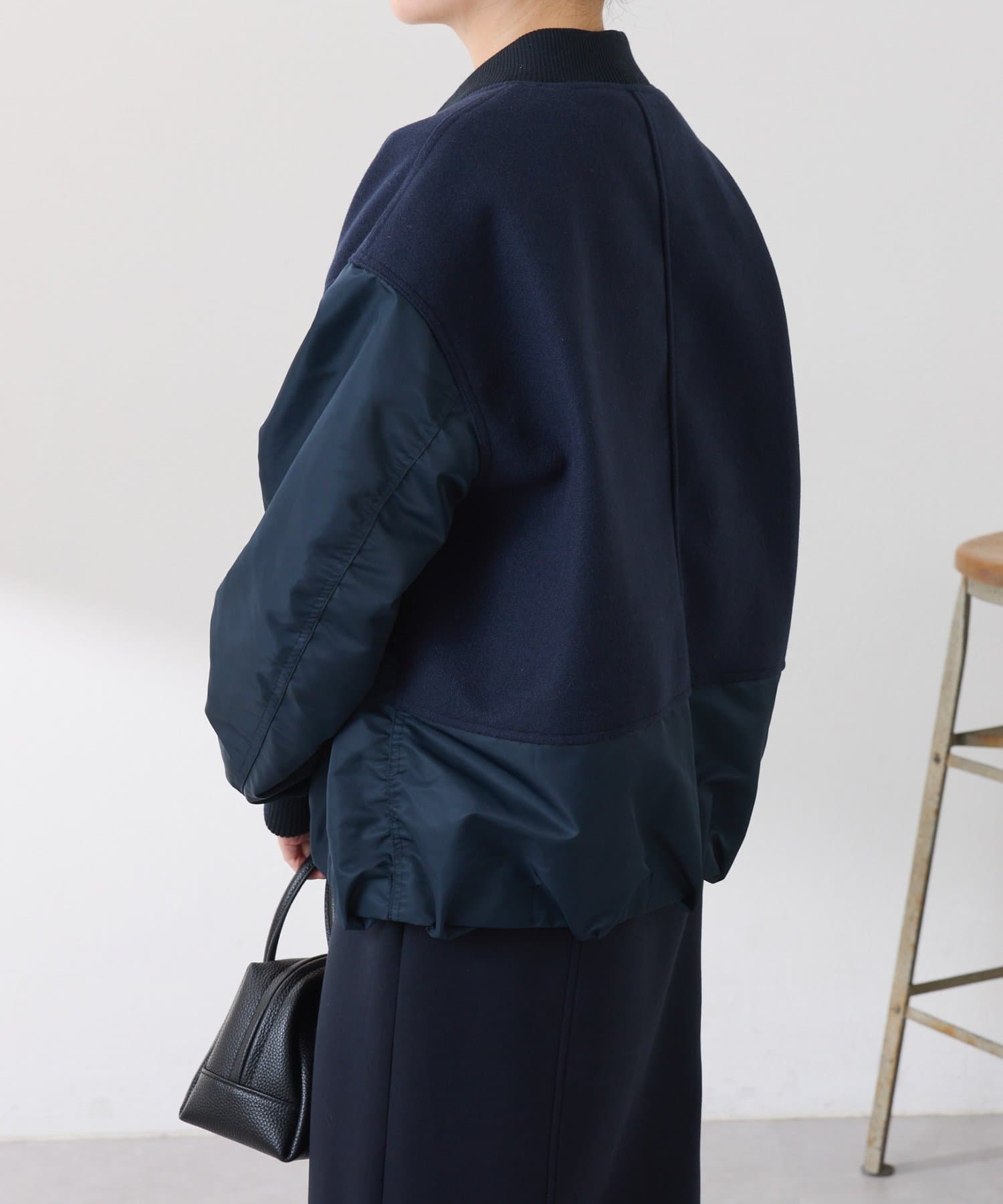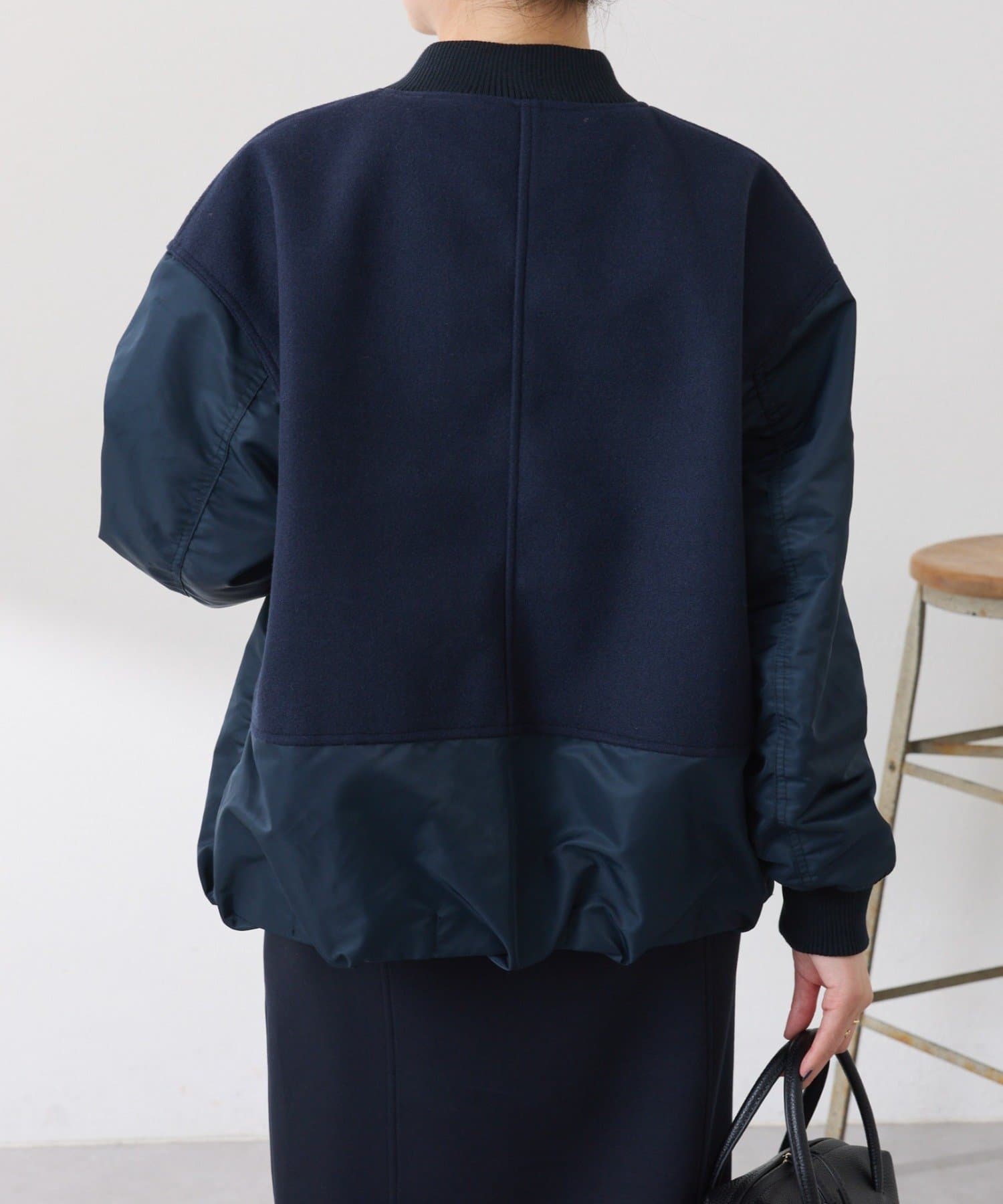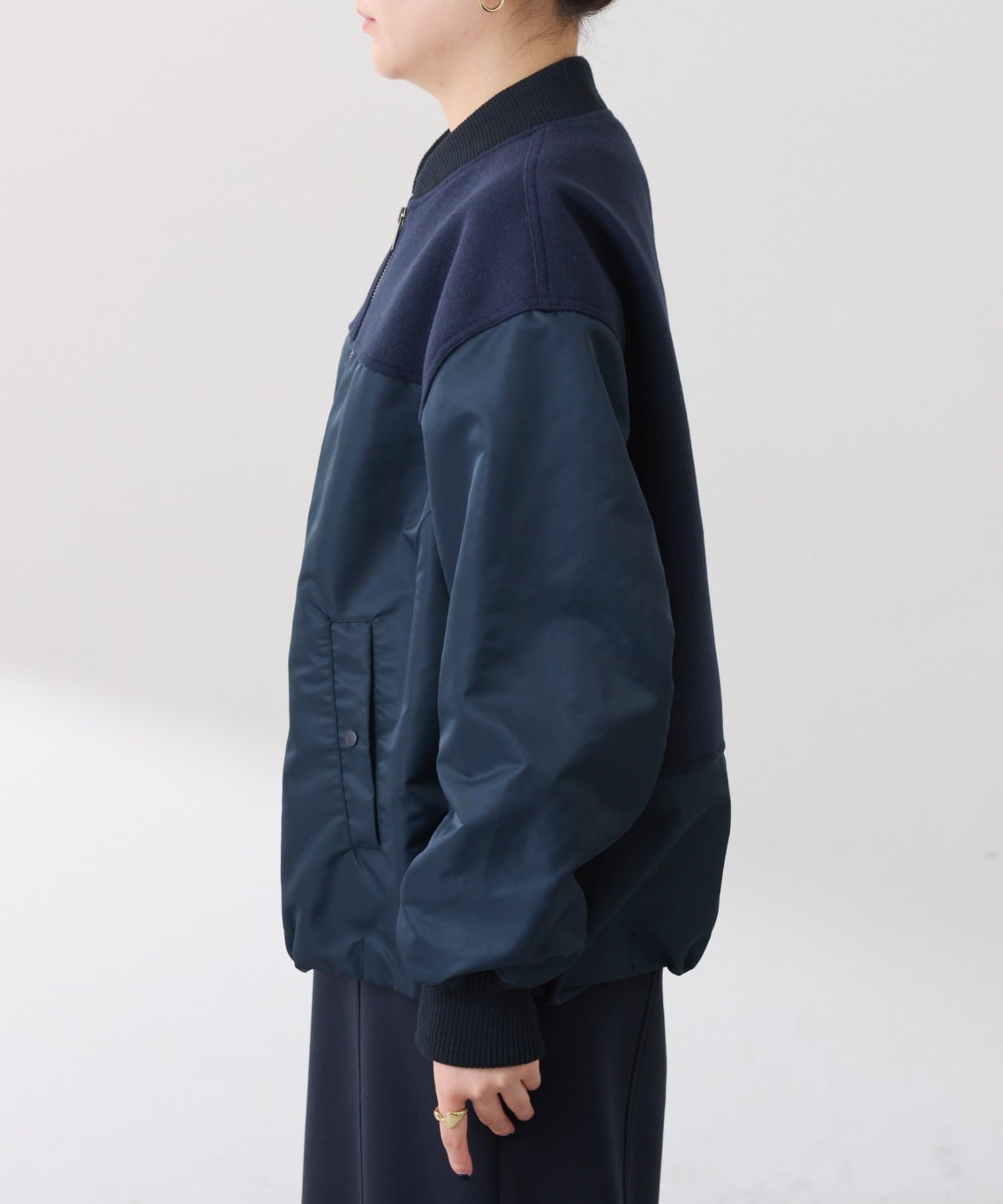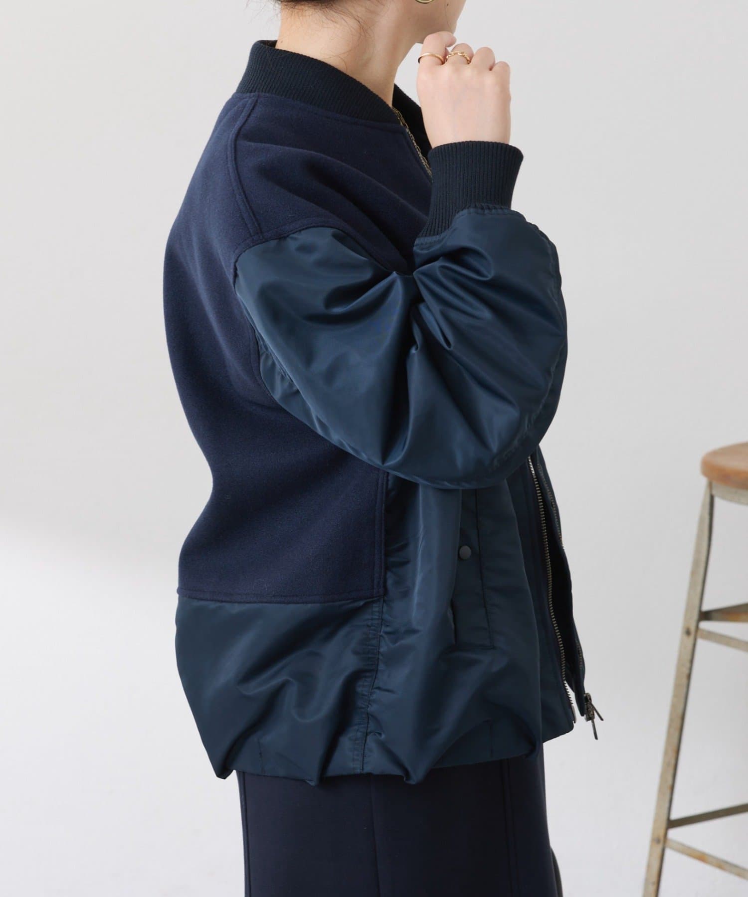 ・MA-1ジャケットですが、メルトン風素材をミックスすることで素材と色の違いがポイントになるブルゾン。