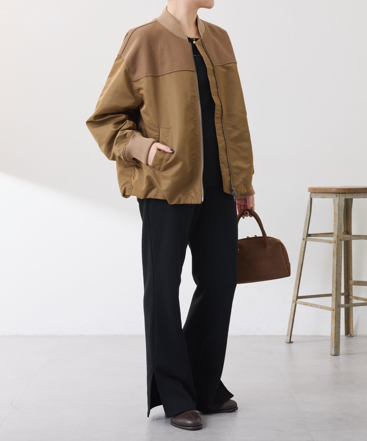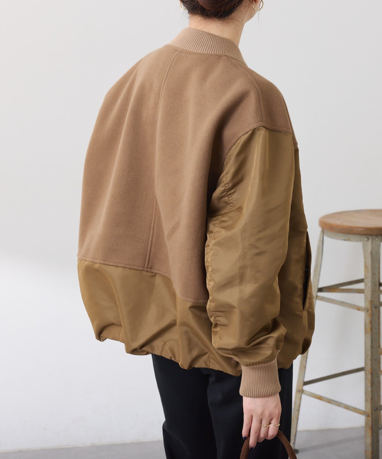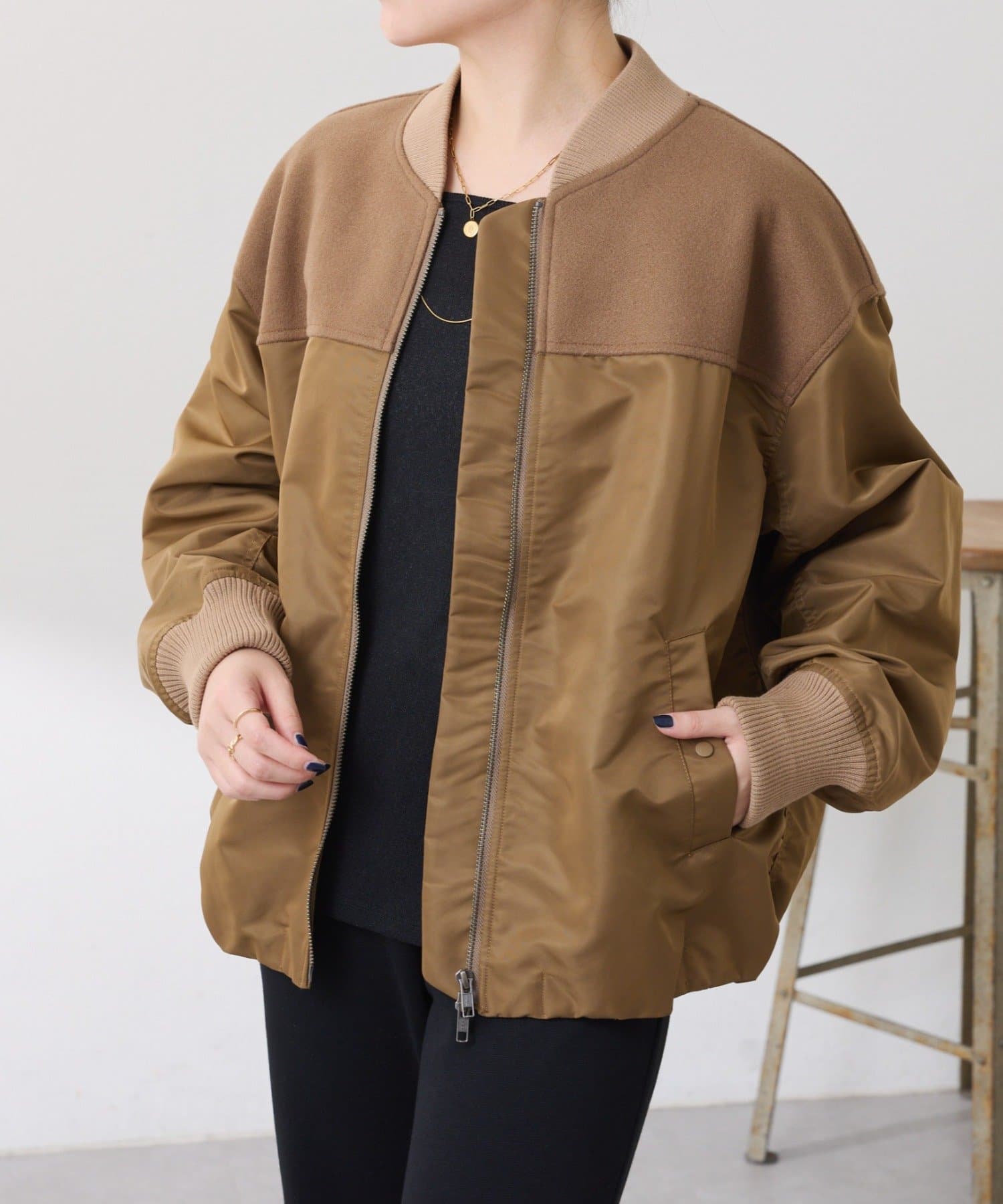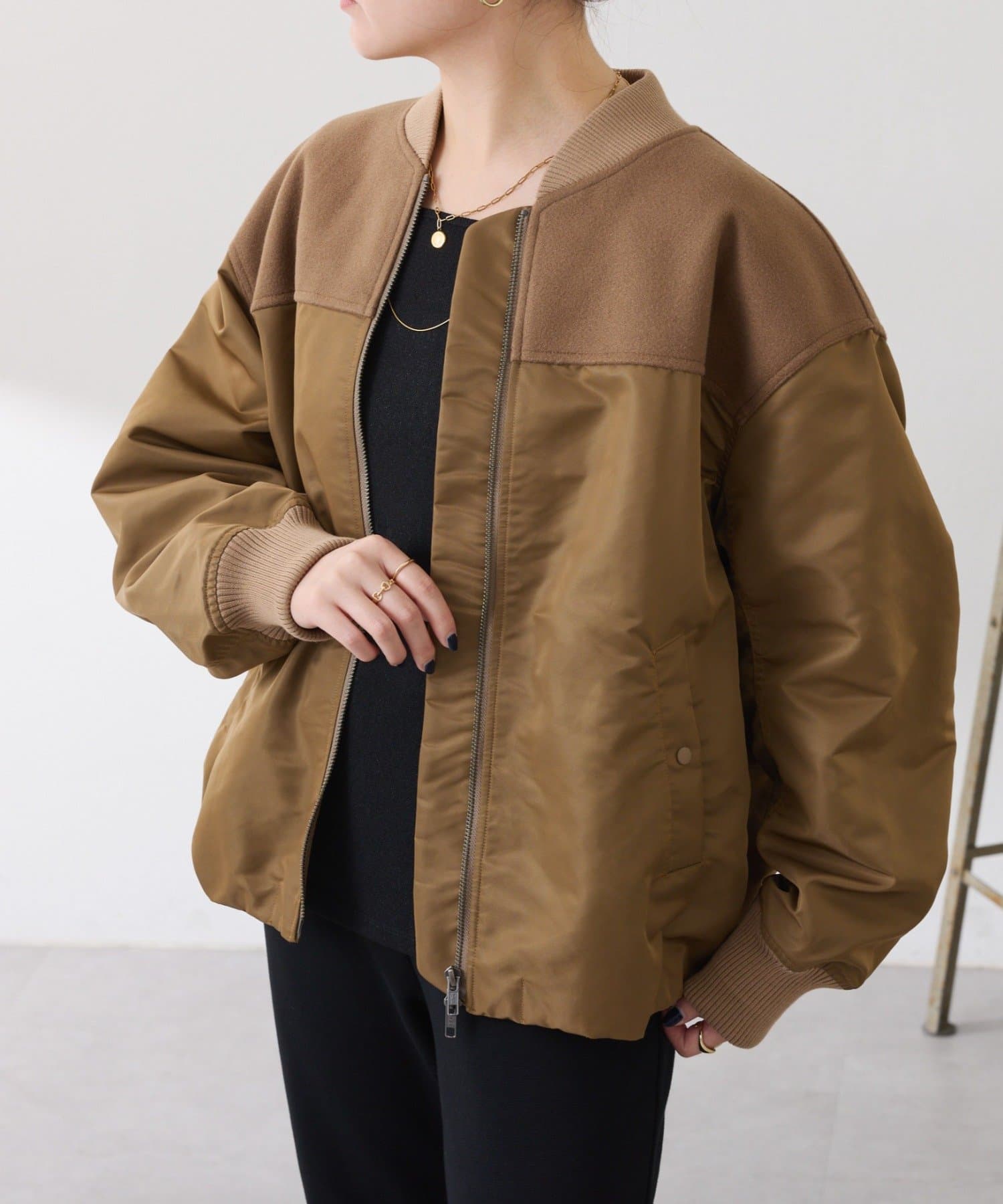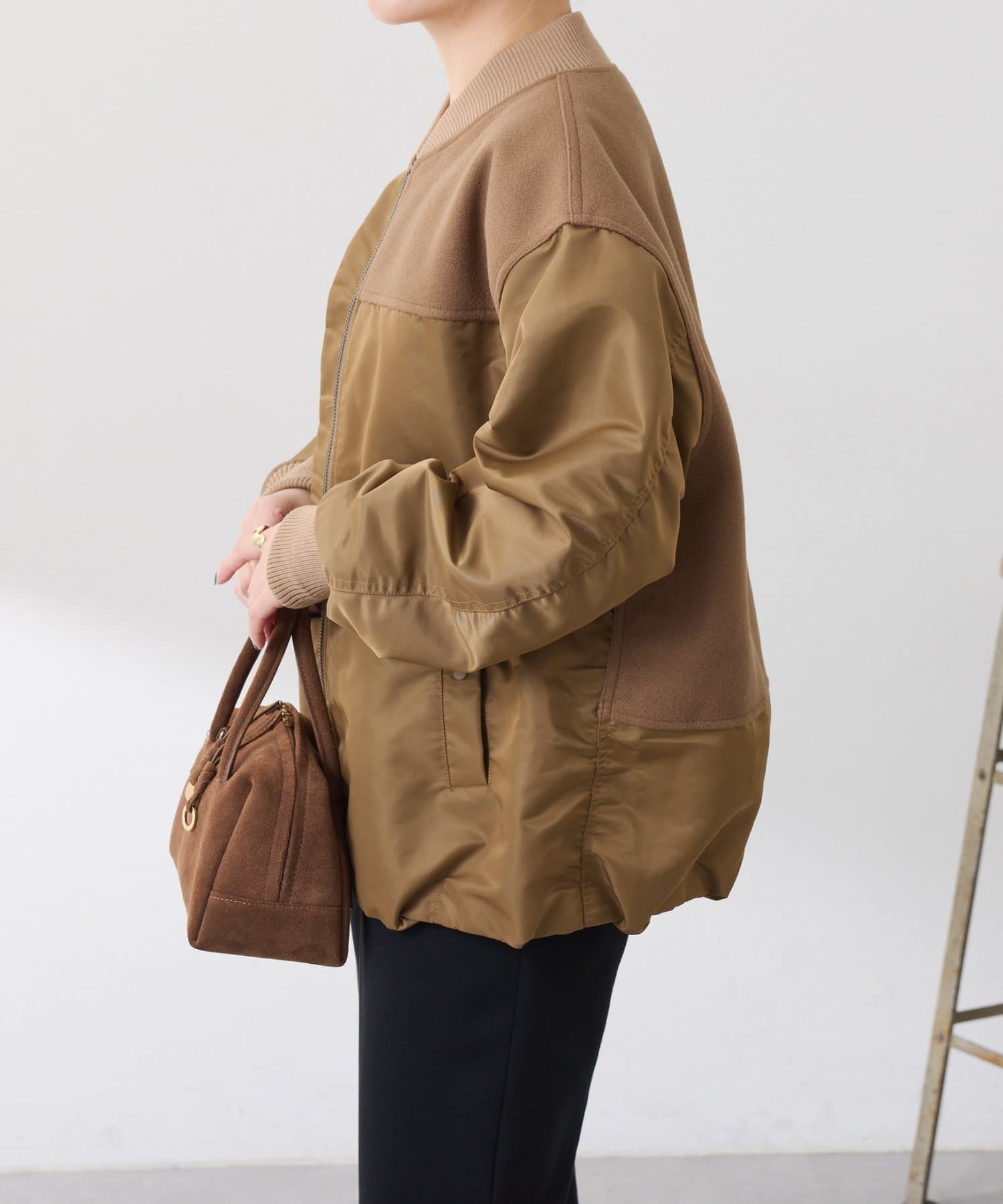 ・MA-1ジャケットですが、メルトン風素材をミックスすることで素材と色の違いがポイントになるブルゾン。