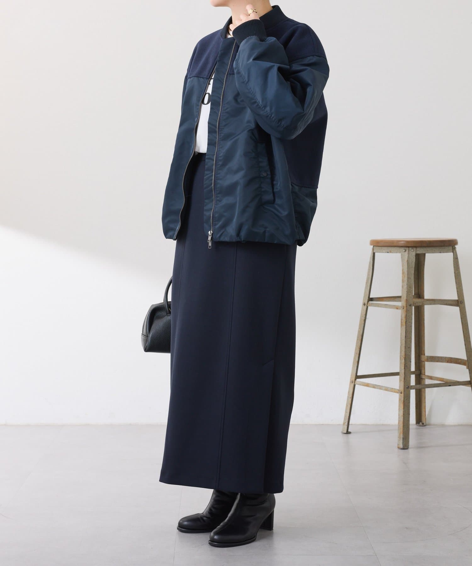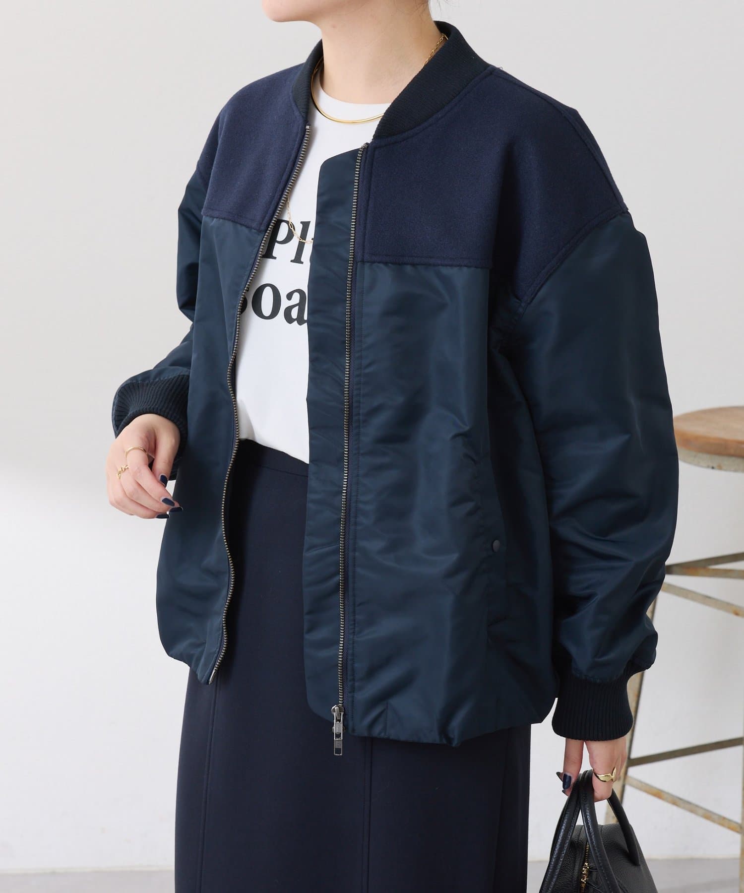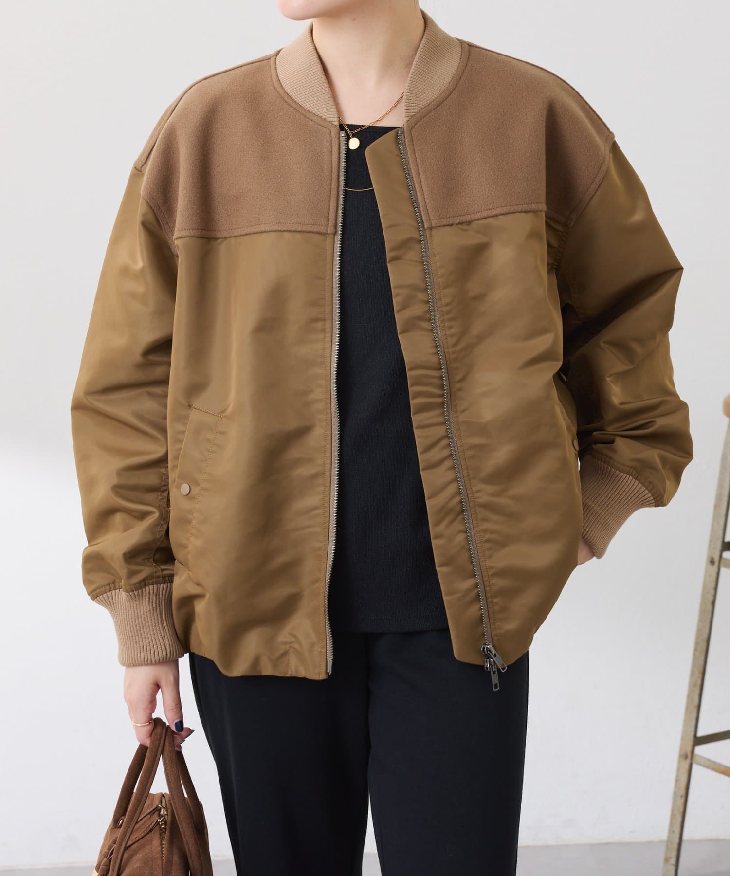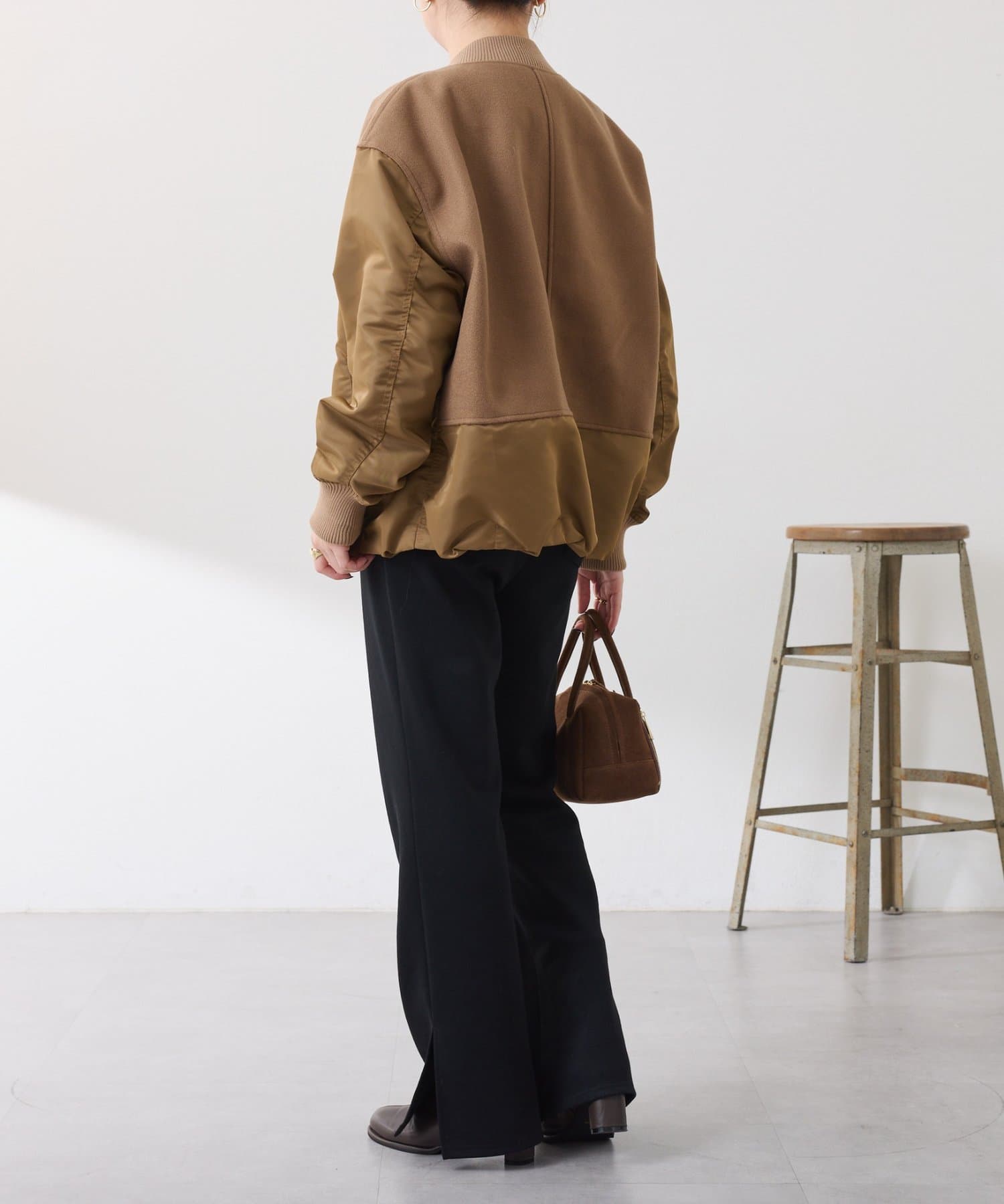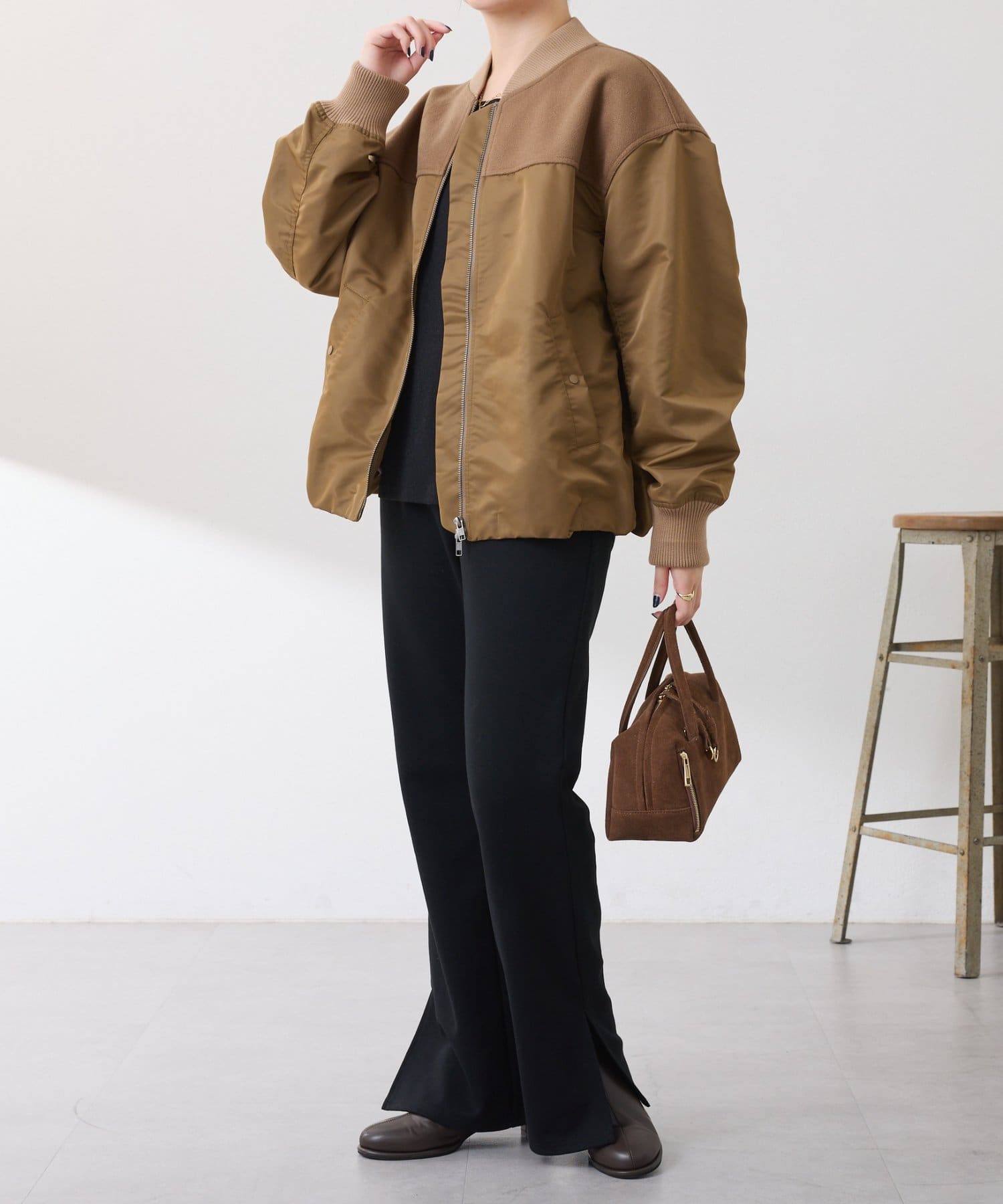 ・MA-1ジャケットですが、メルトン風素材をミックスすることで素材と色の違いがポイントになるブルゾン。