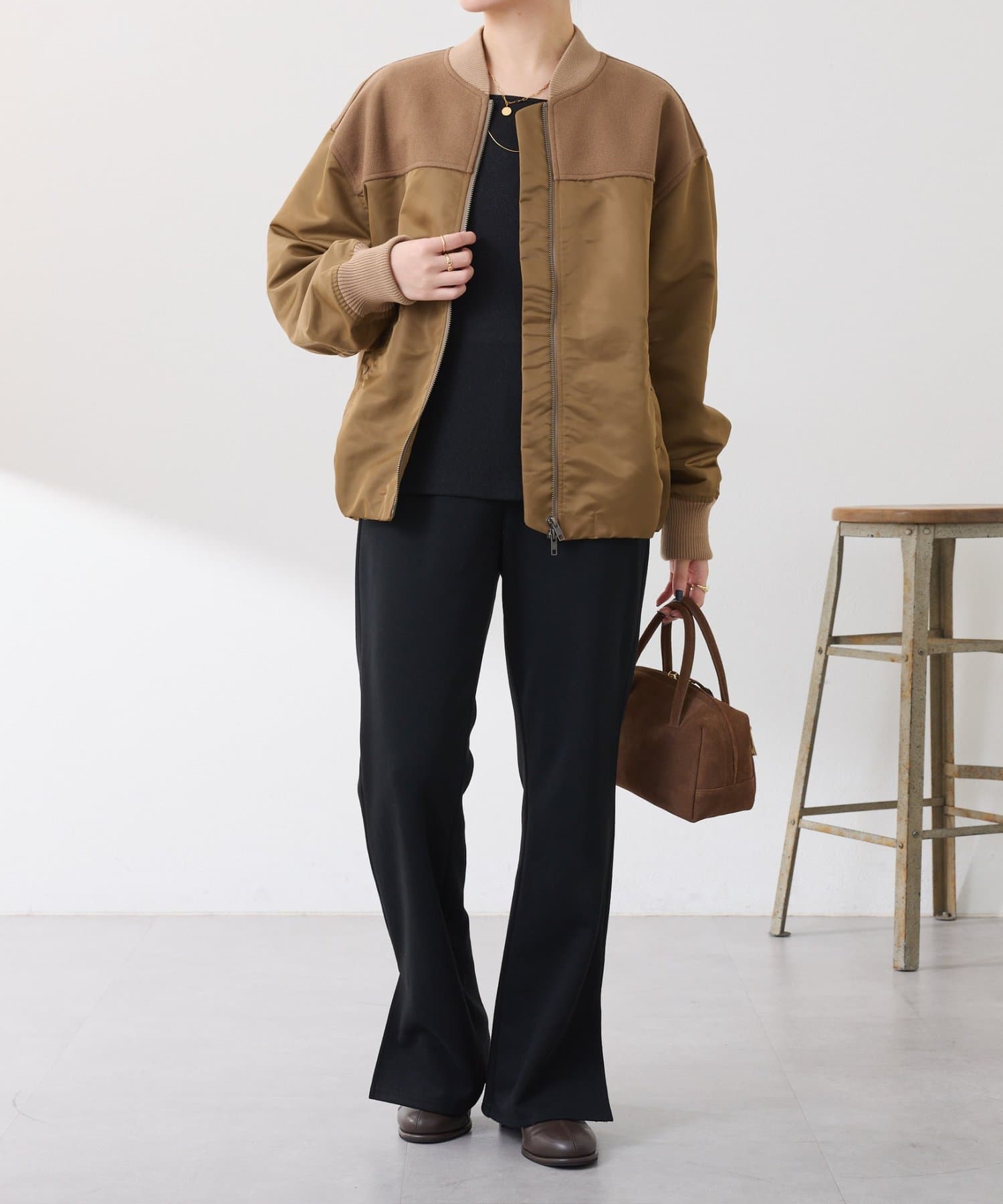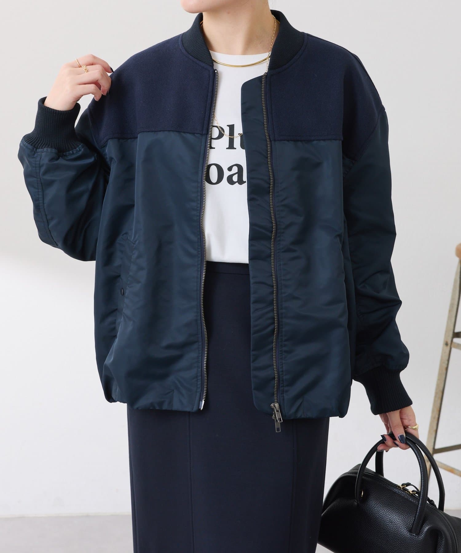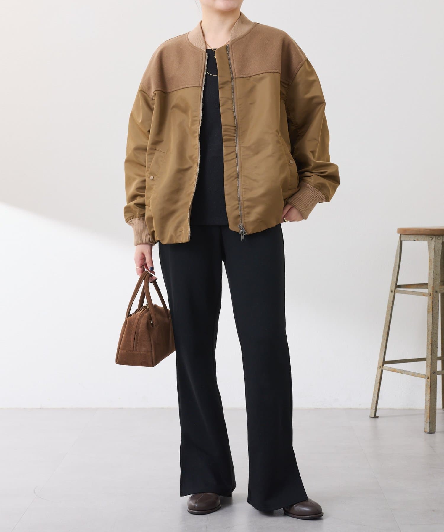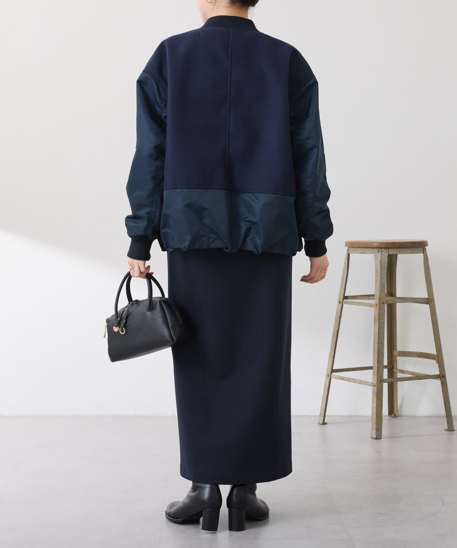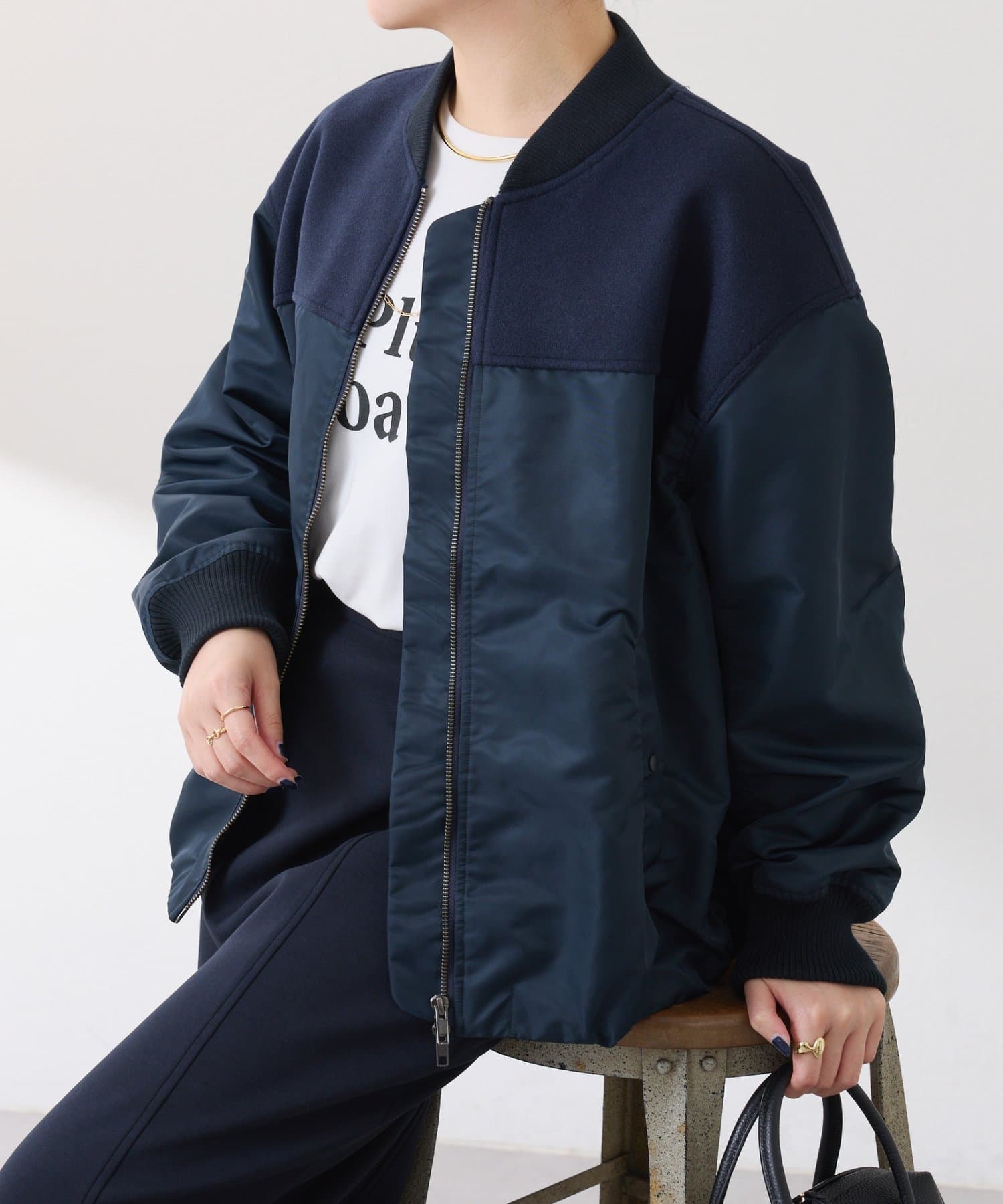 ・MA-1ジャケットですが、メルトン風素材をミックスすることで素材と色の違いがポイントになるブルゾン。
