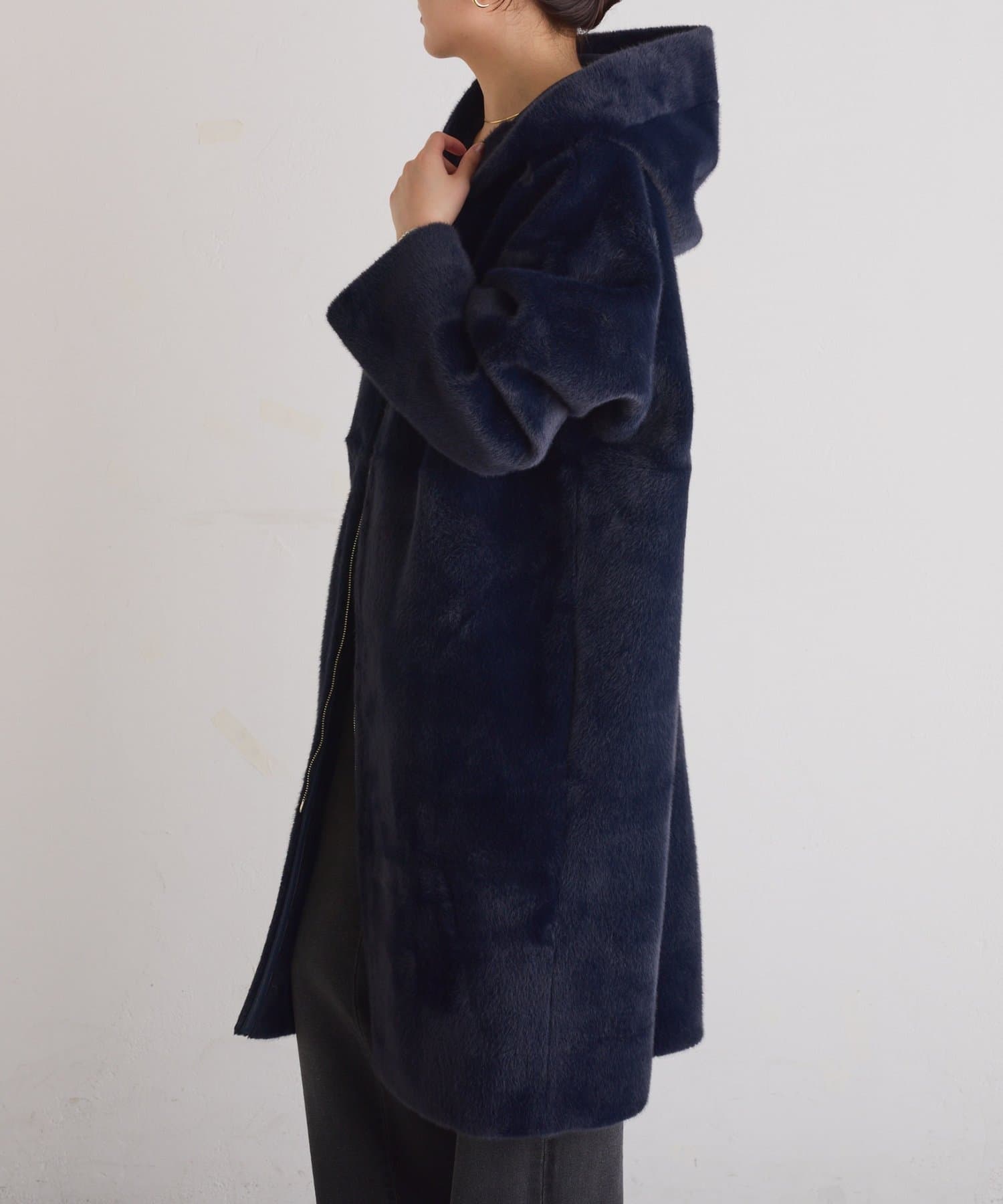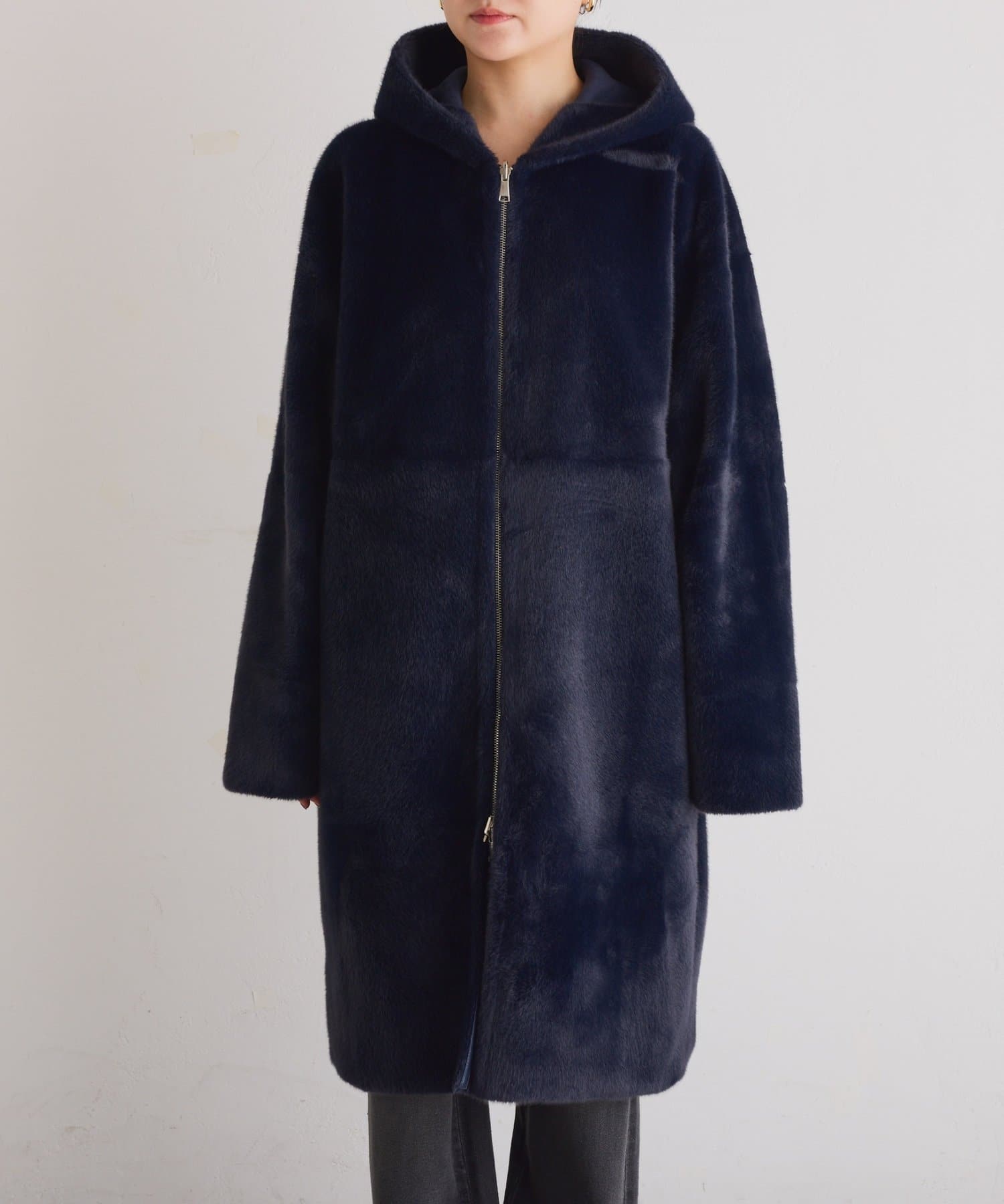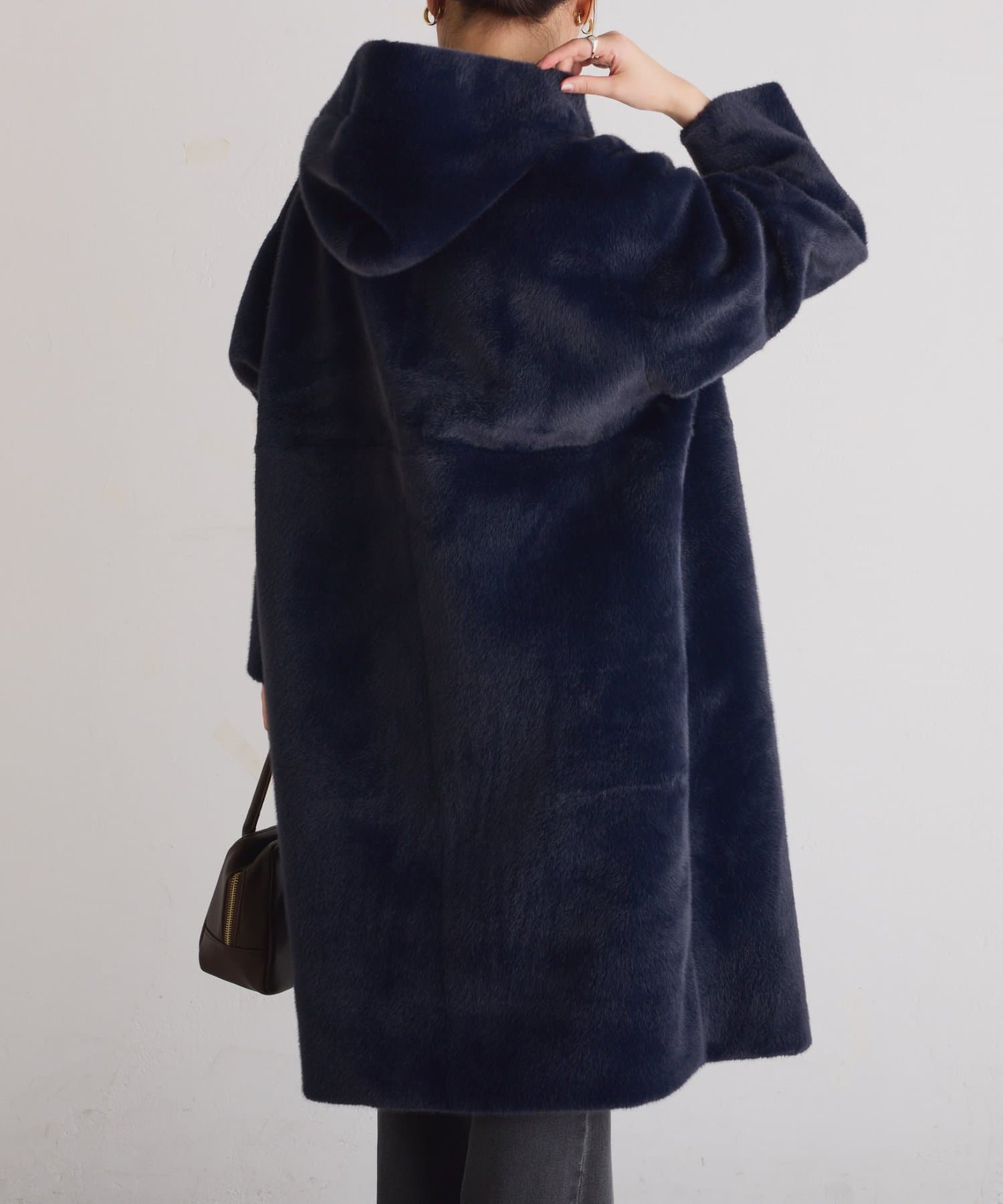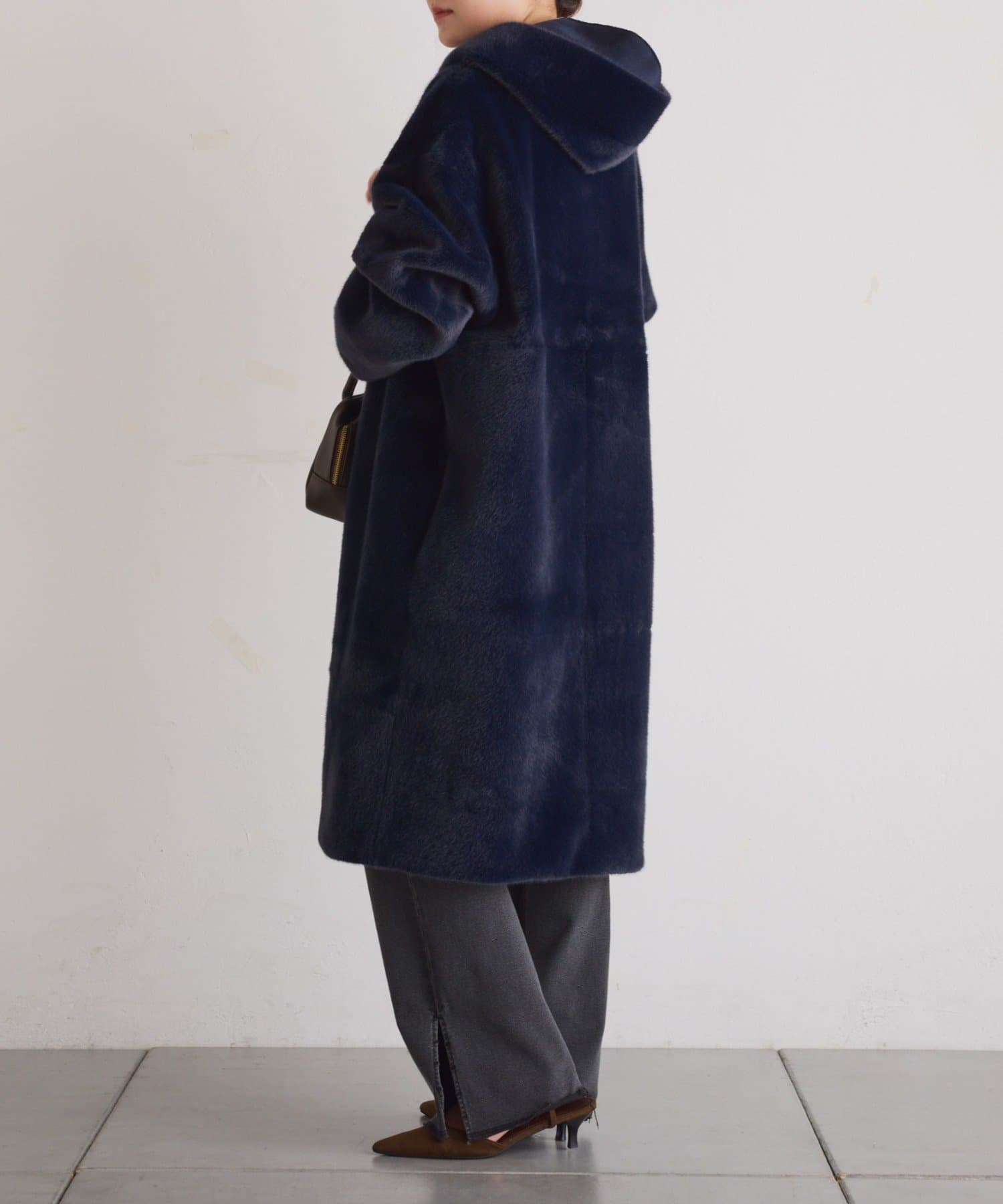 ・毛足の短いファーなので、お仕事やカジュアルでも使いやすいファーコートです。