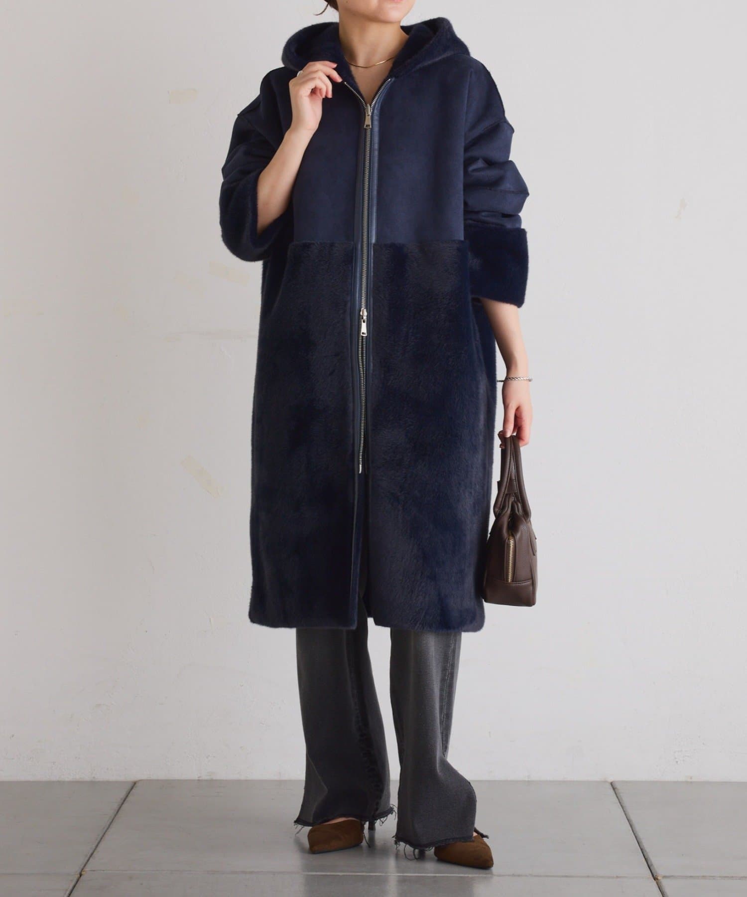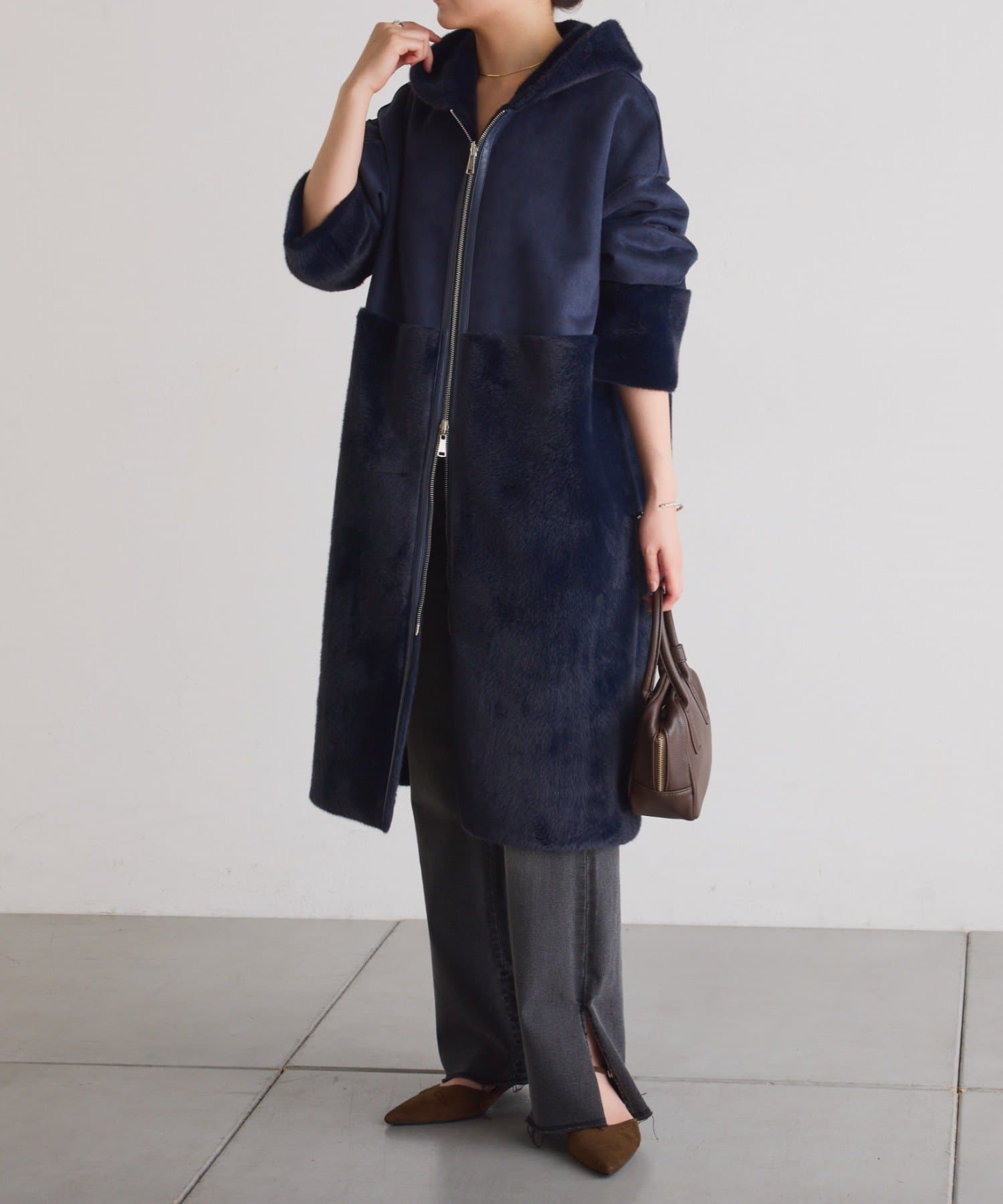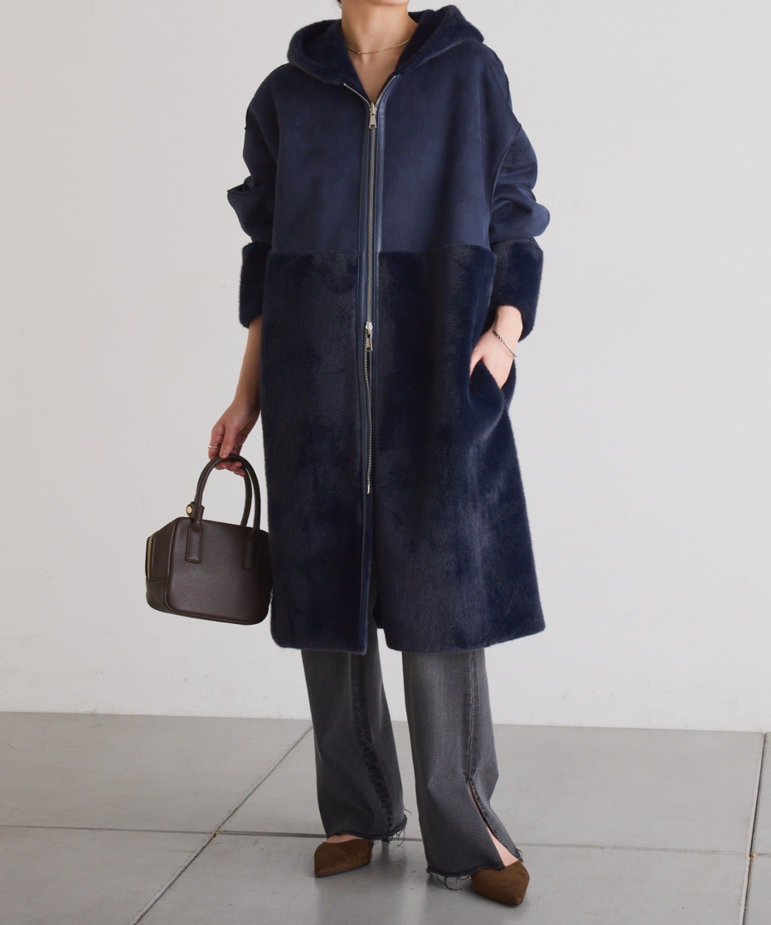 ・ファーの毛足感と膝上辺りまで隠れる丈で防寒対策も叶います◎