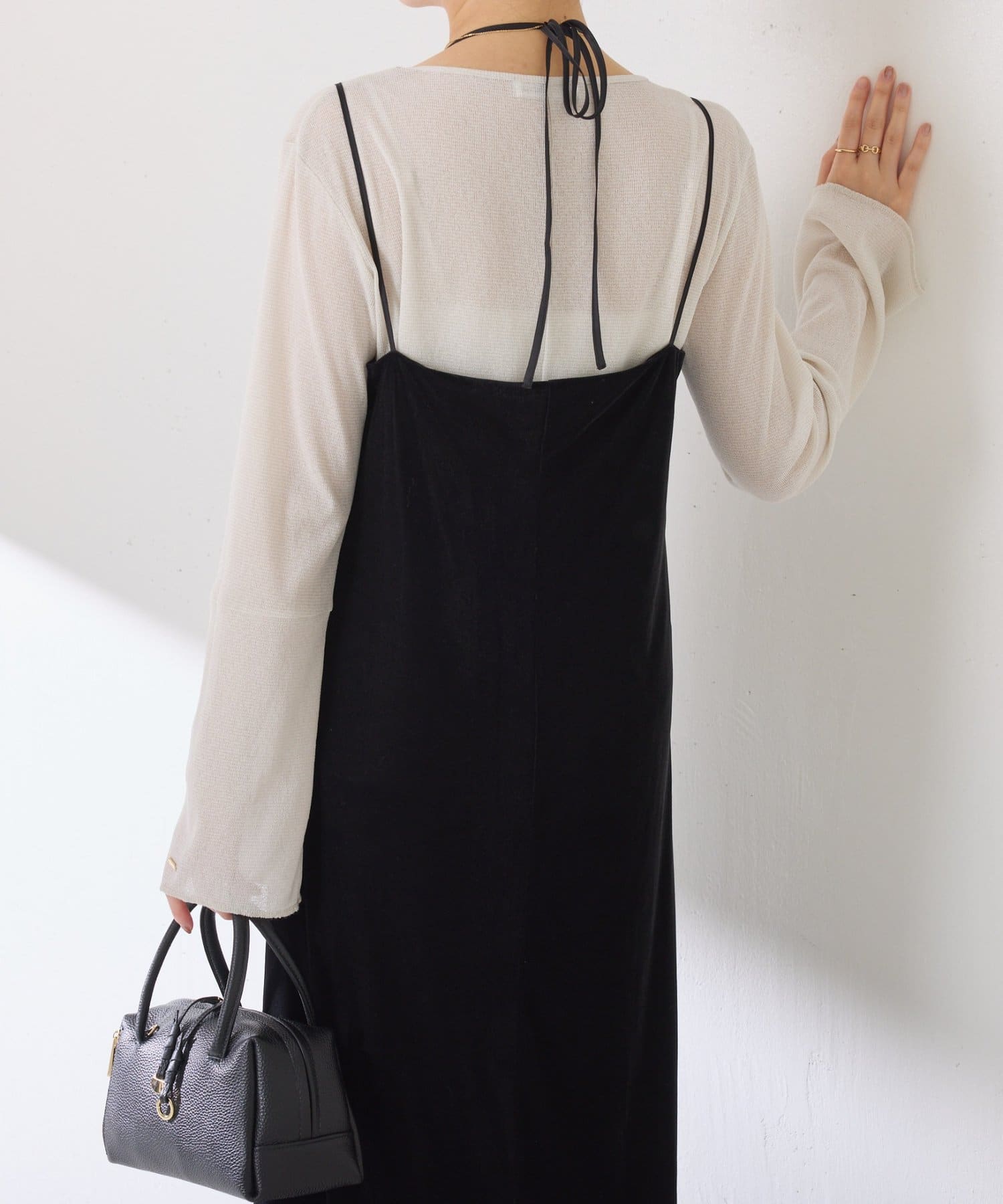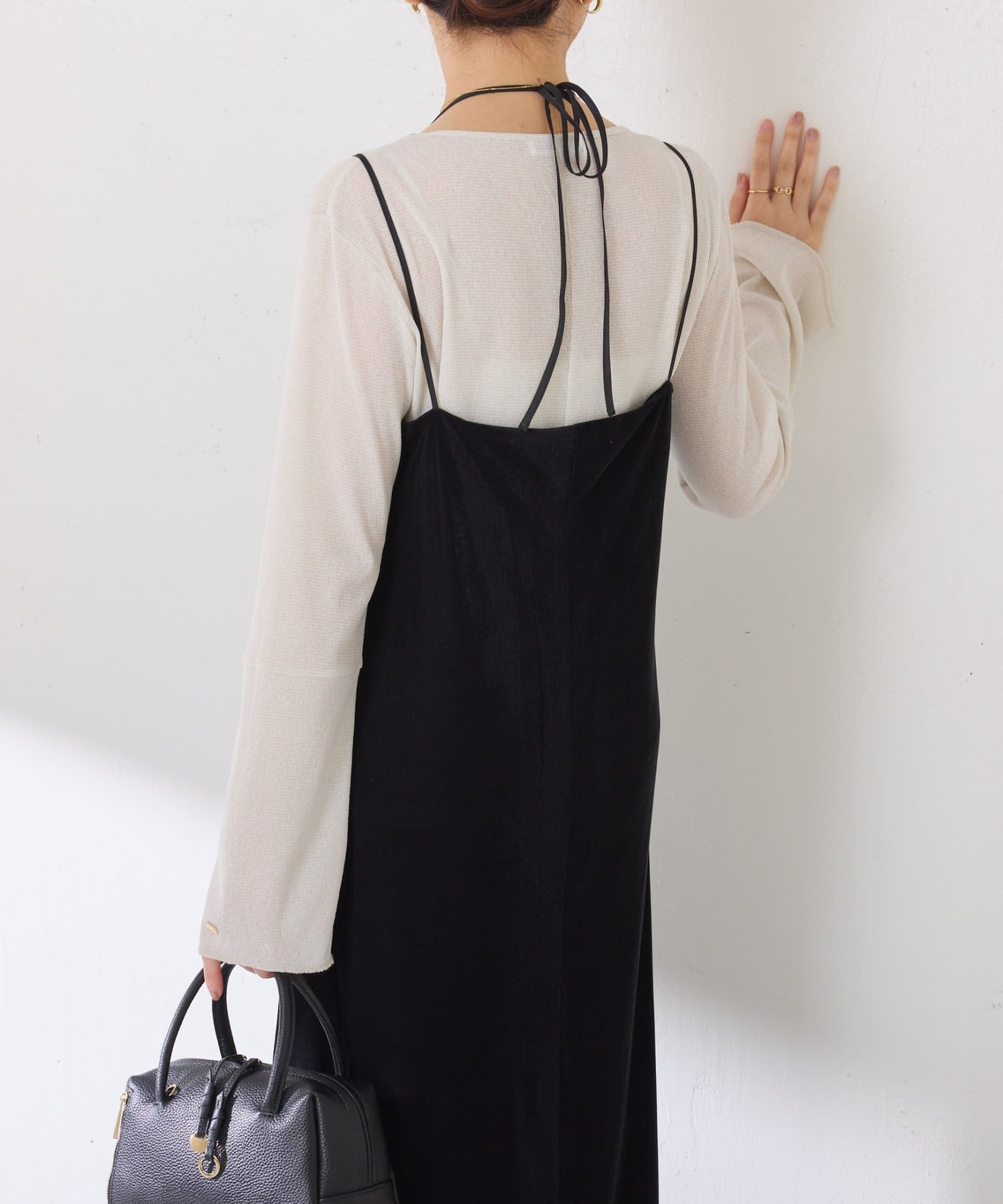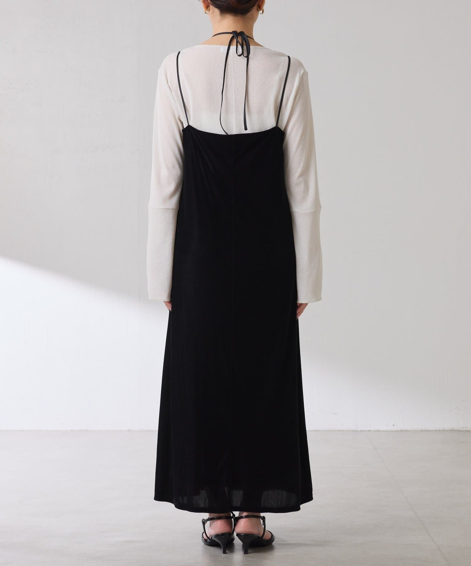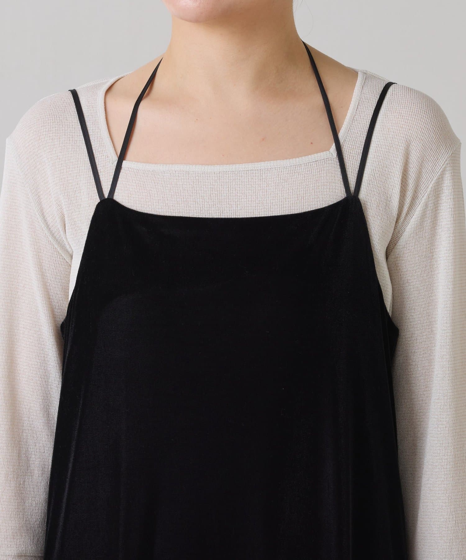 ・ストラップのデザインが新鮮なベロア生地のキャミワンピース。