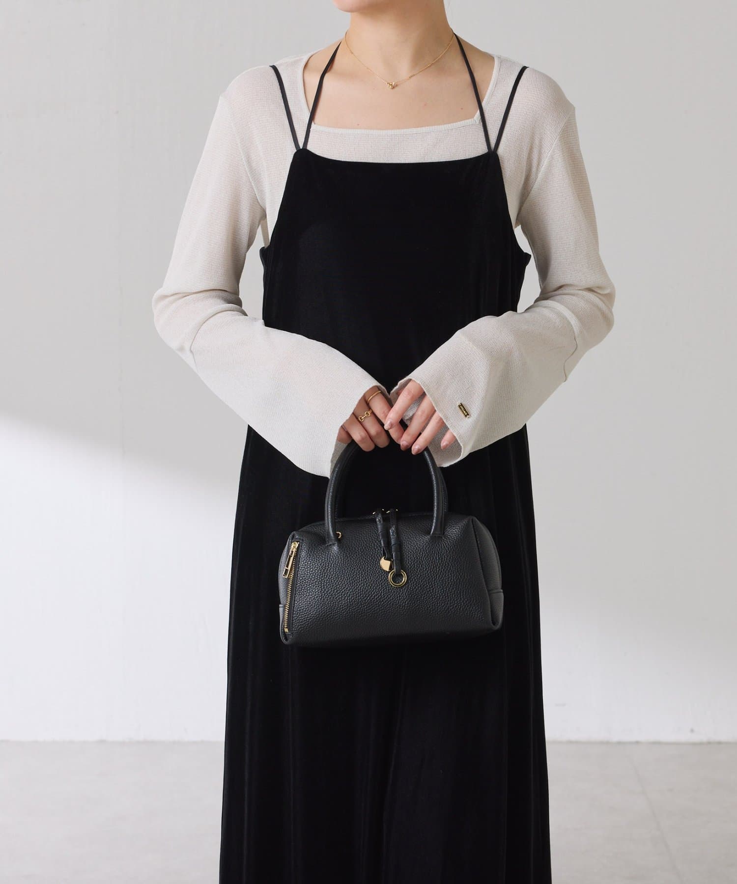 ベロアの光沢が華やかなのでインナーはシアートップスを合わせると抜け感が出てデイリー使いにおすすめです。