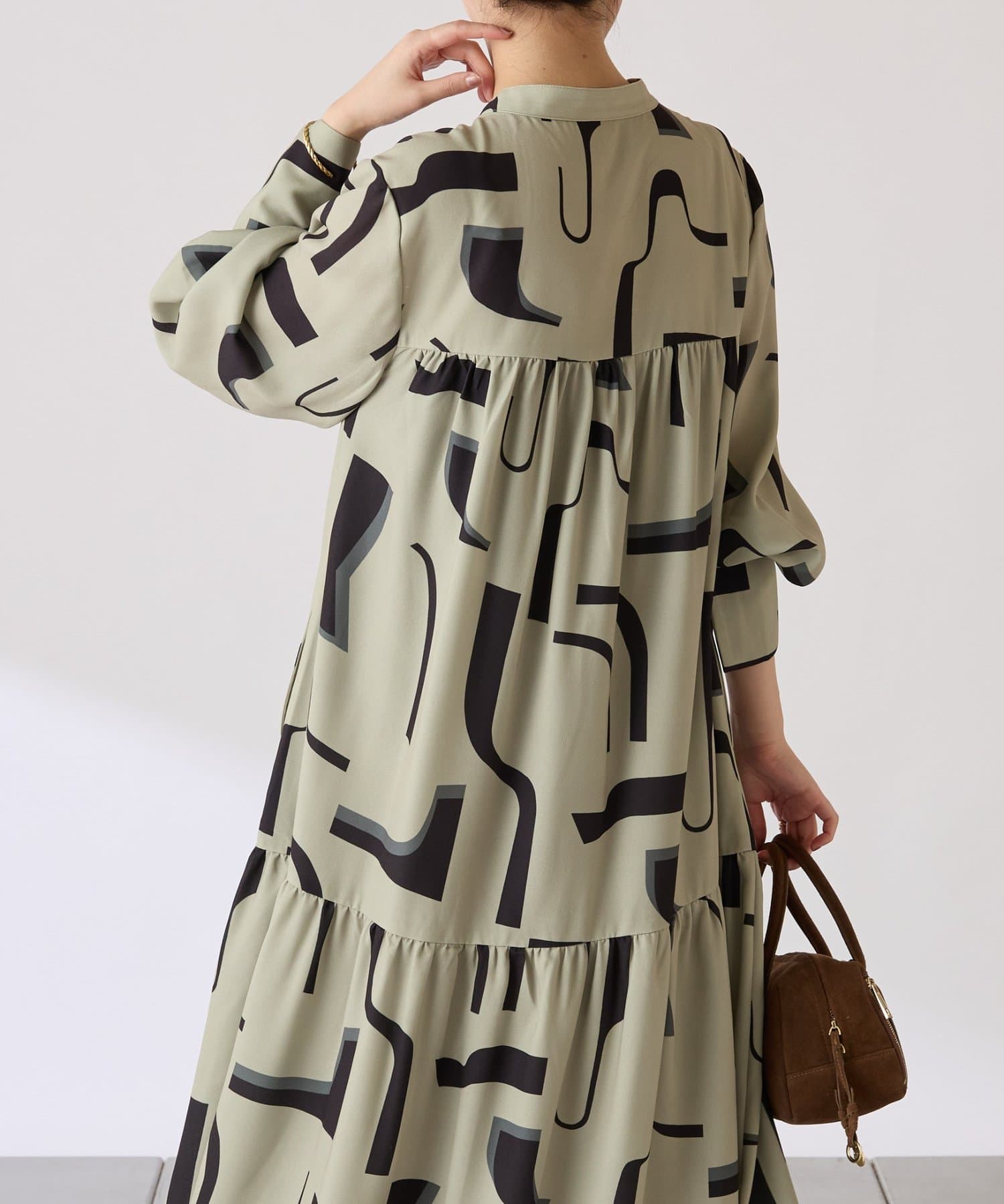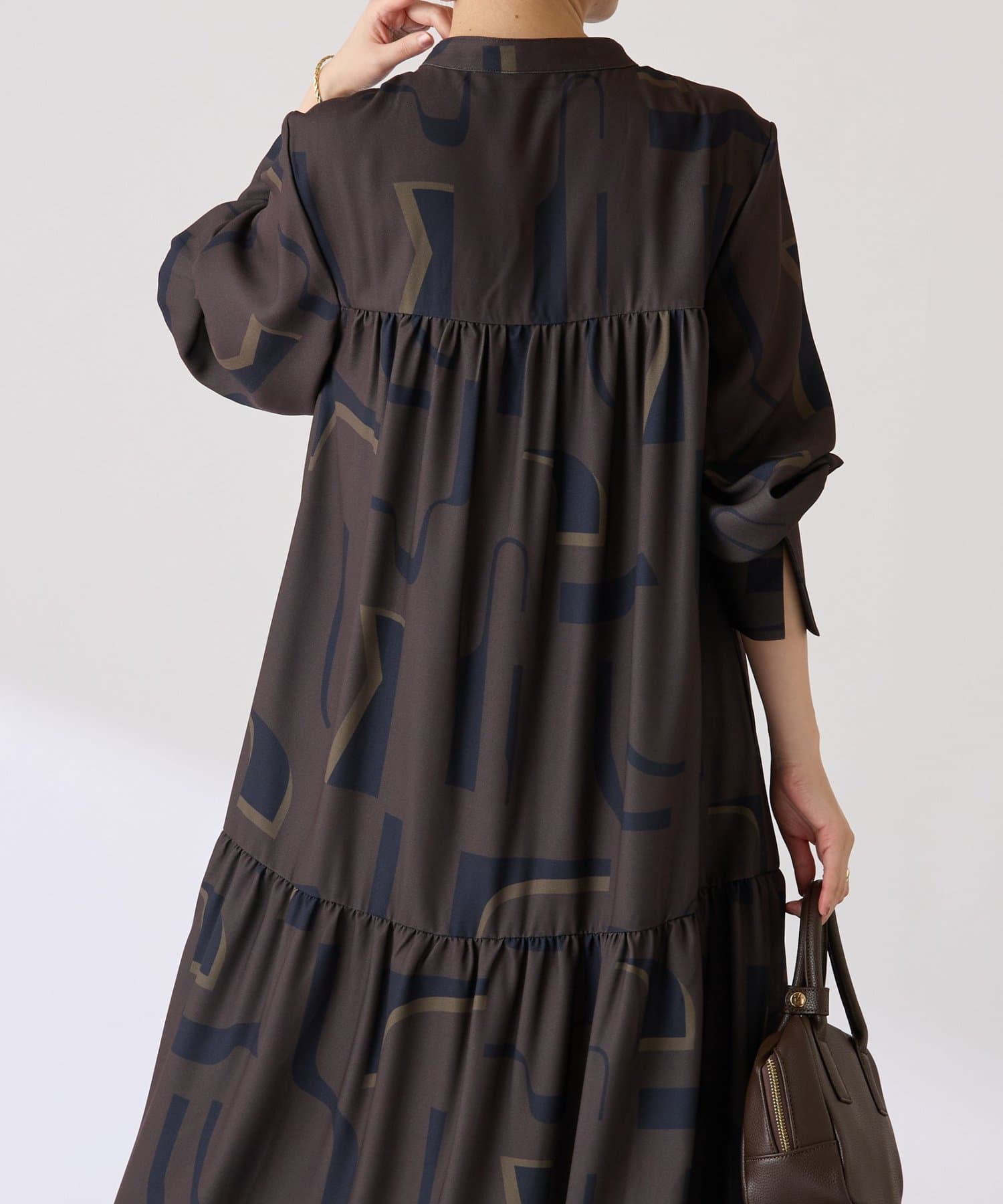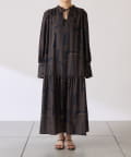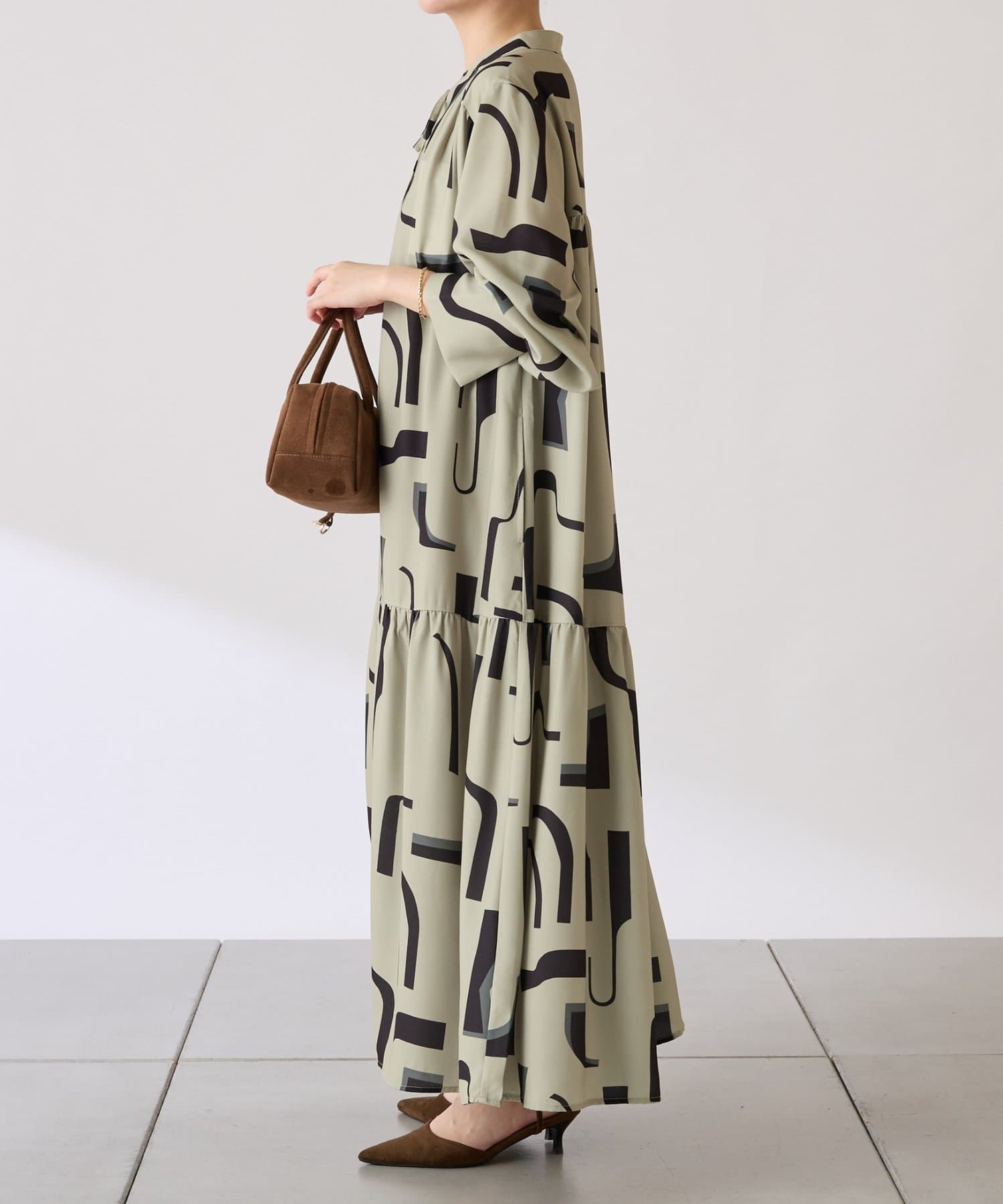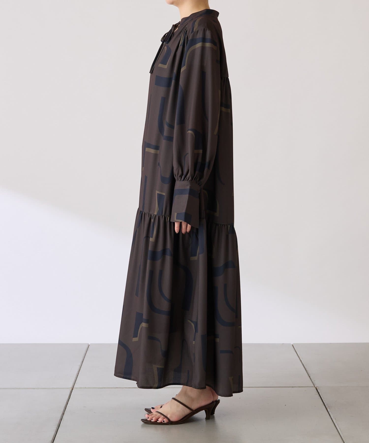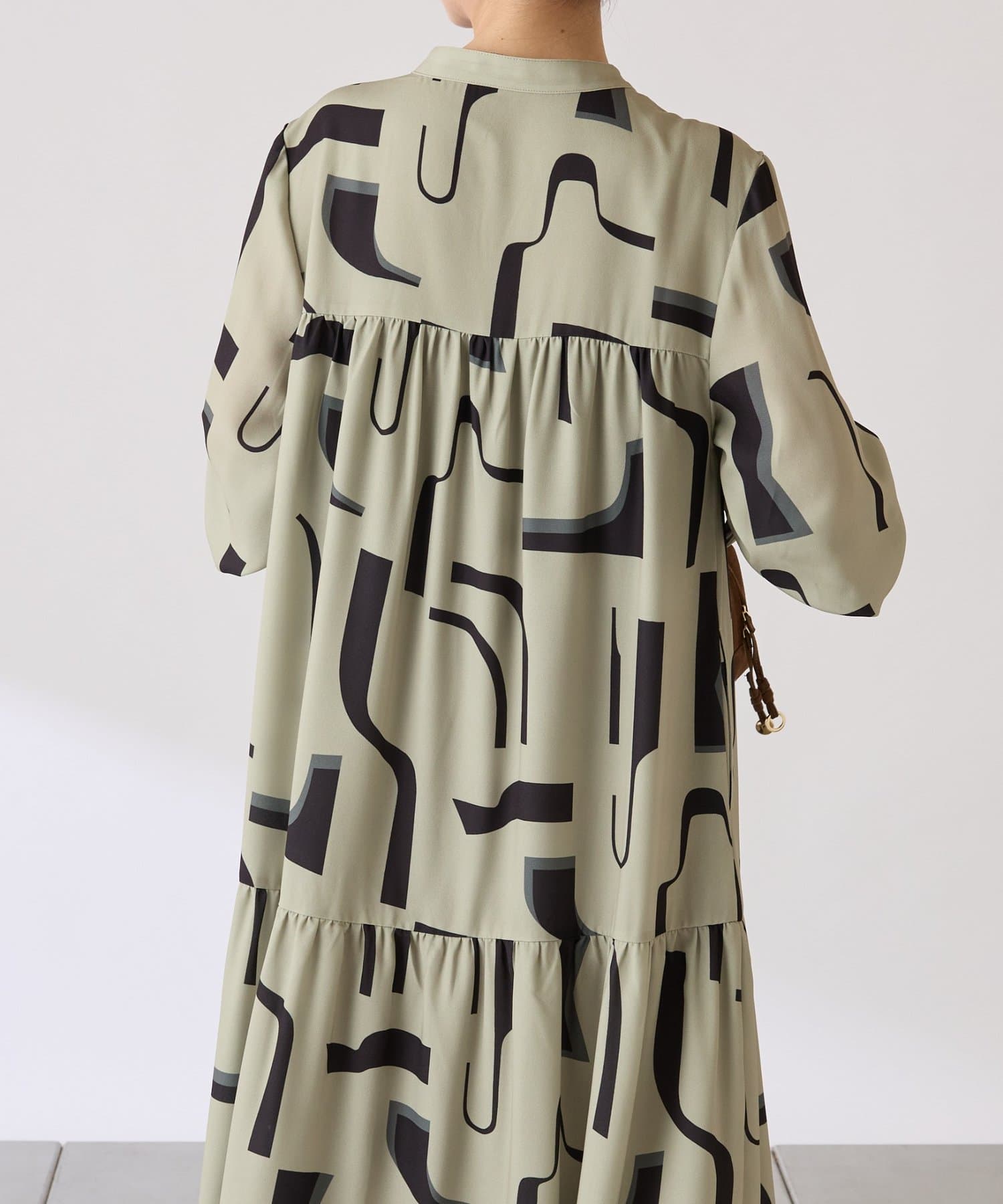 ・目を惹く幾何学柄がキャッチーなロング丈のワンピース。