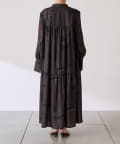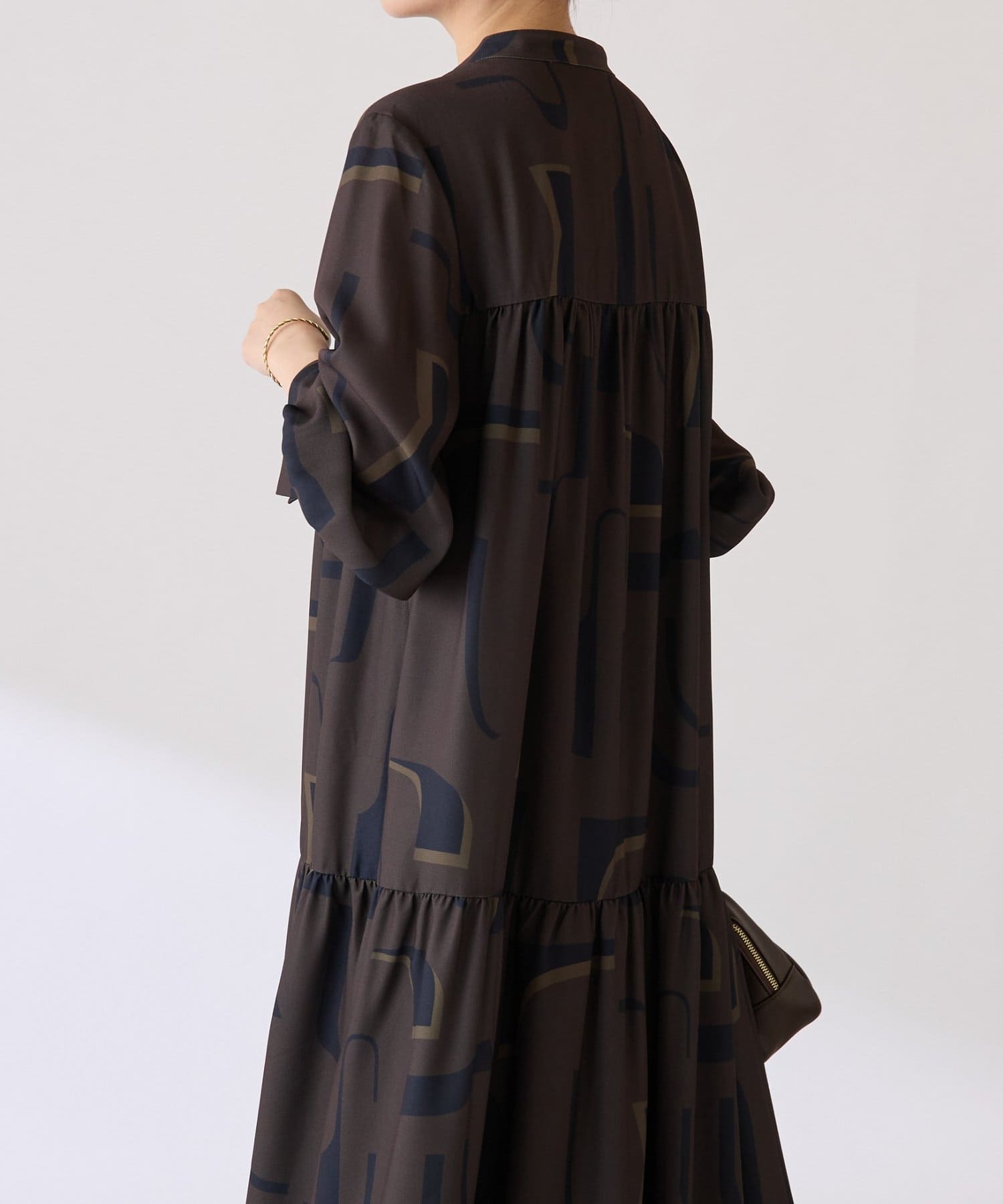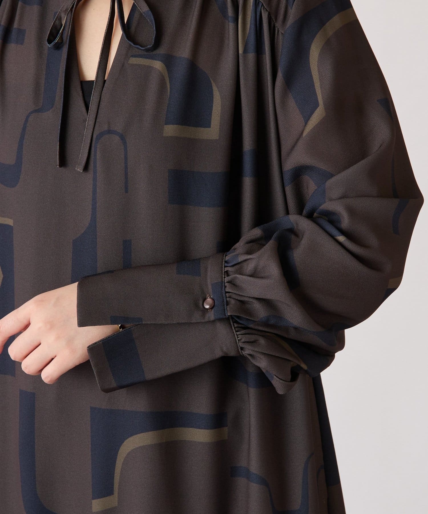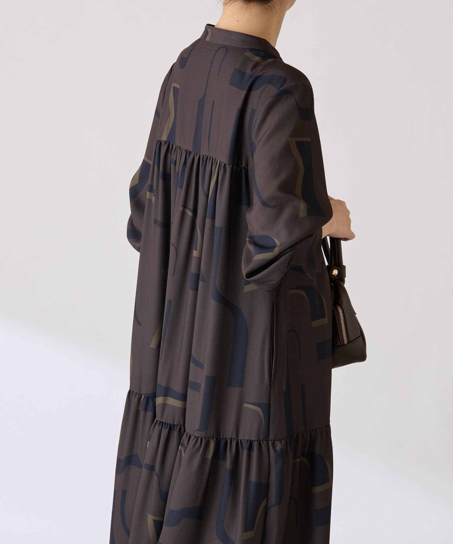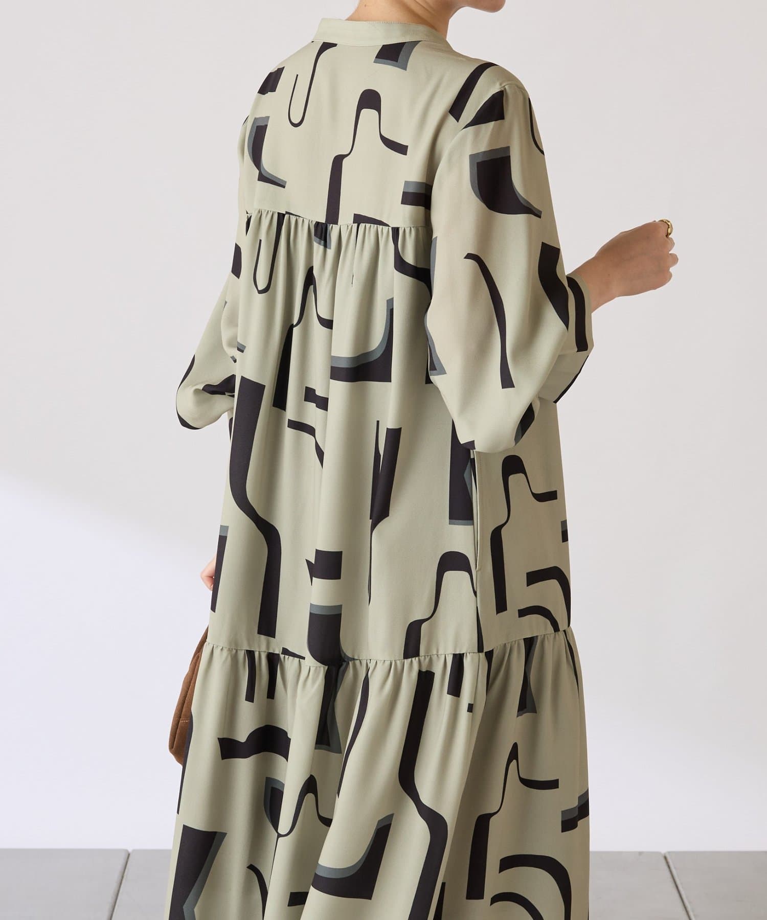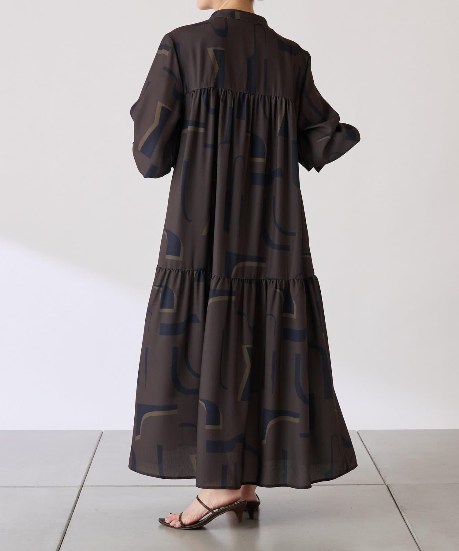 ・目を惹く幾何学柄がキャッチーなロング丈のワンピース。