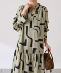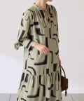 【体型カバー】幾何学柄ワンピース/セミオケージョン