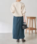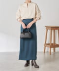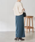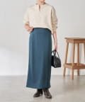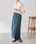 ・巻きスカート風のデザインは立体感が出て、腰回りのラインを拾いすぎません。スリットは浅めなので安心して履いていただけます。