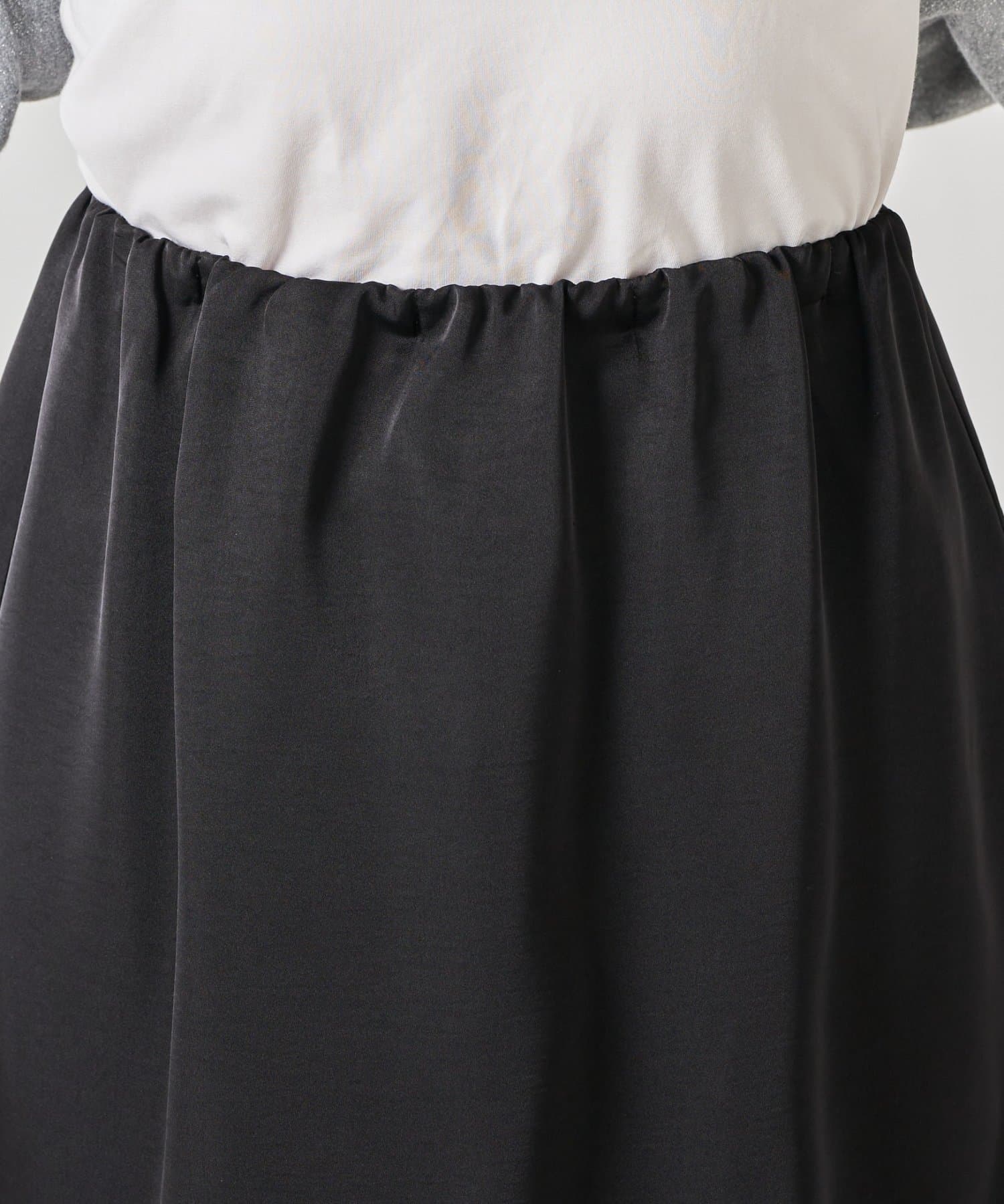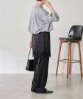 単体でも着まわせるので、デニムやスラックスにスカートをレイヤードしてツヤ感をプラスするのもおすすめです。