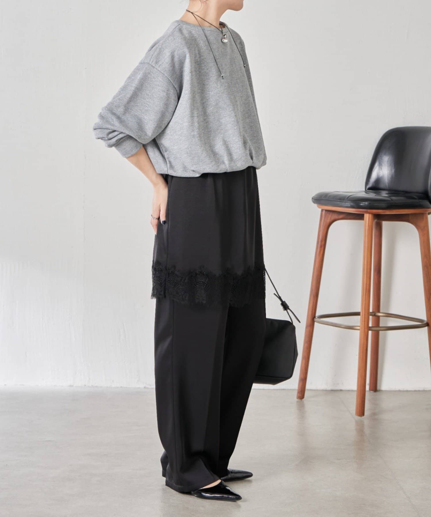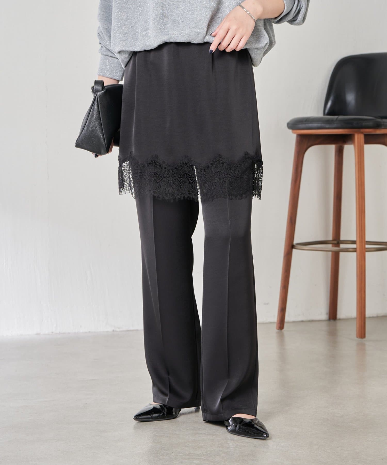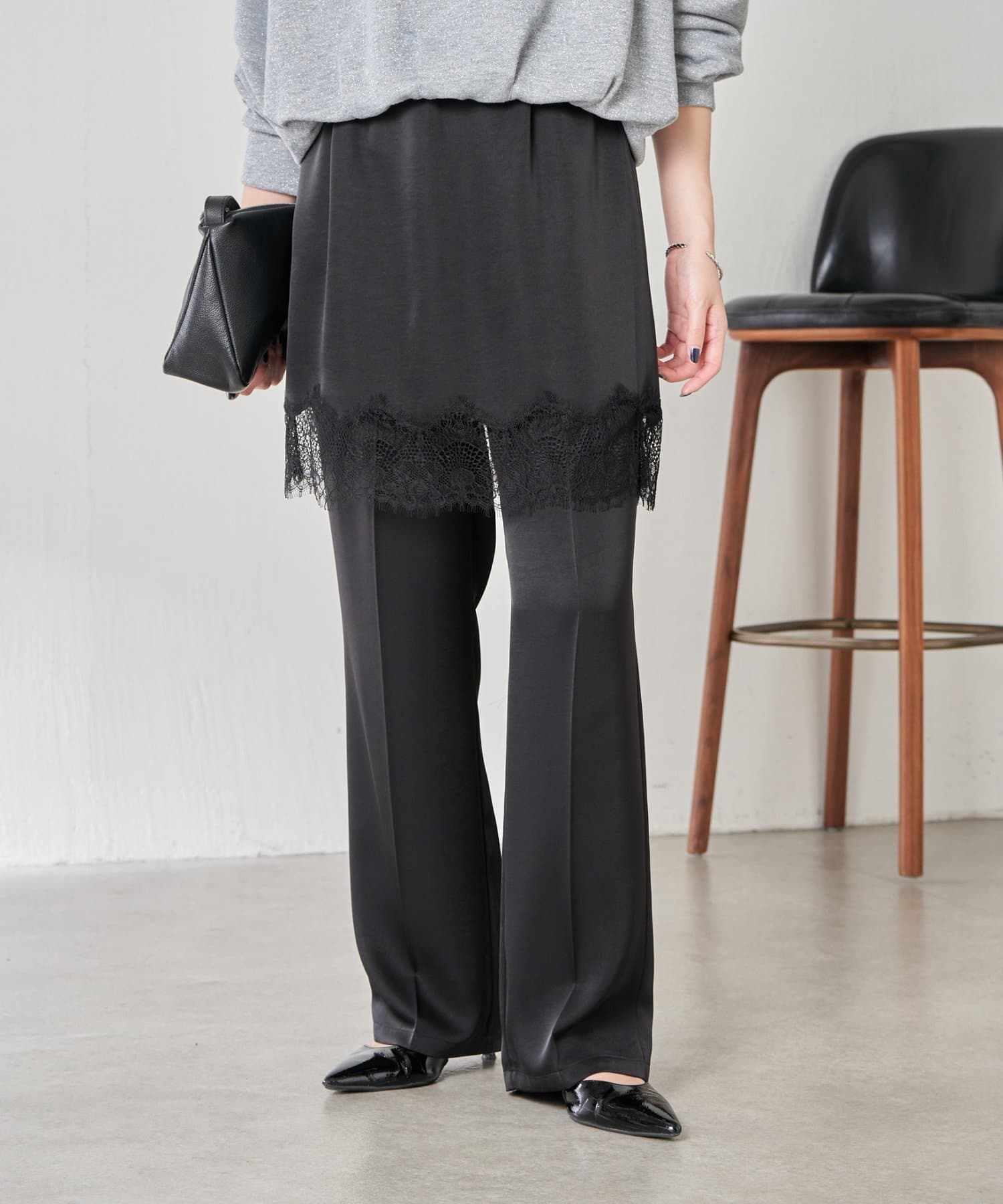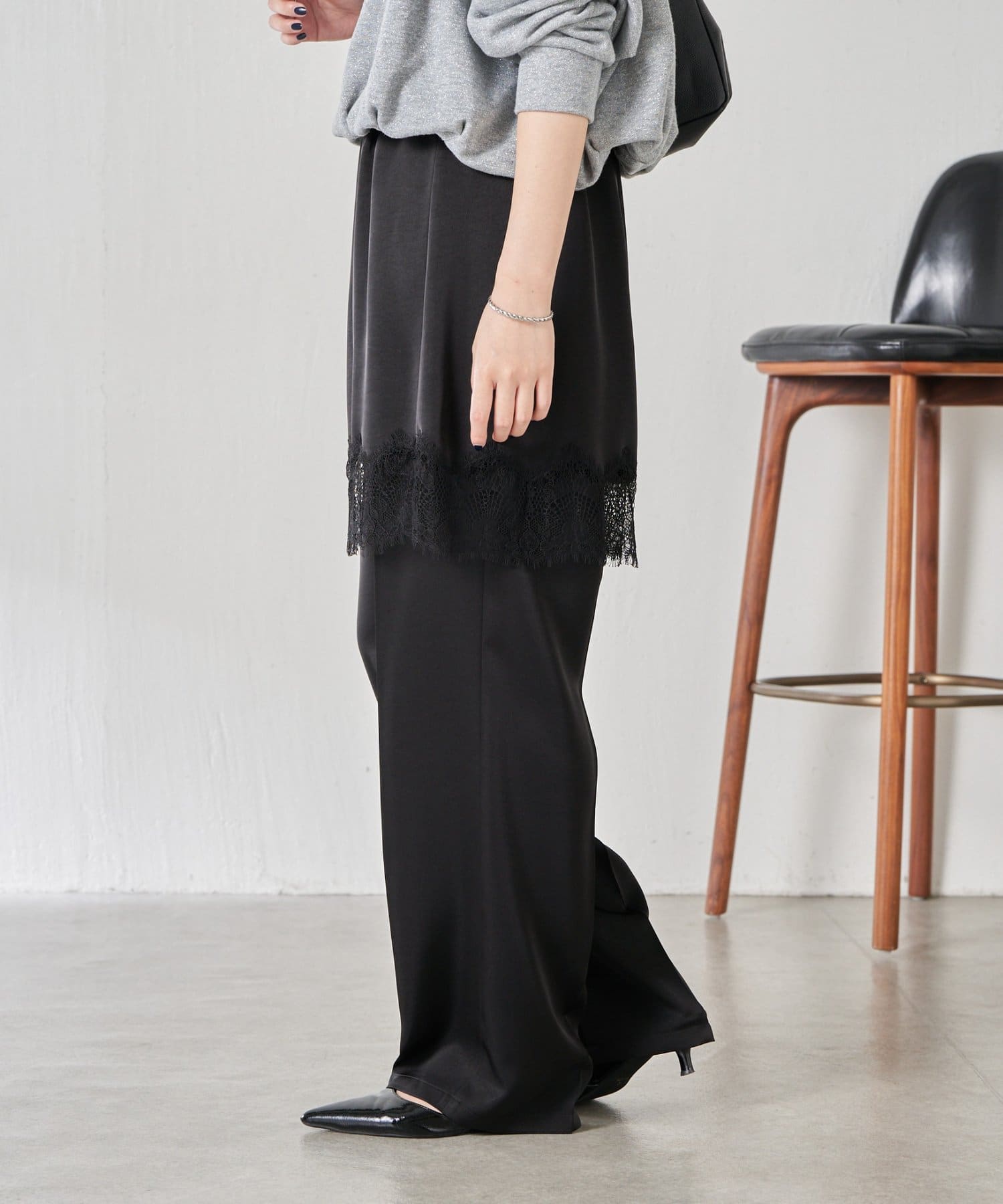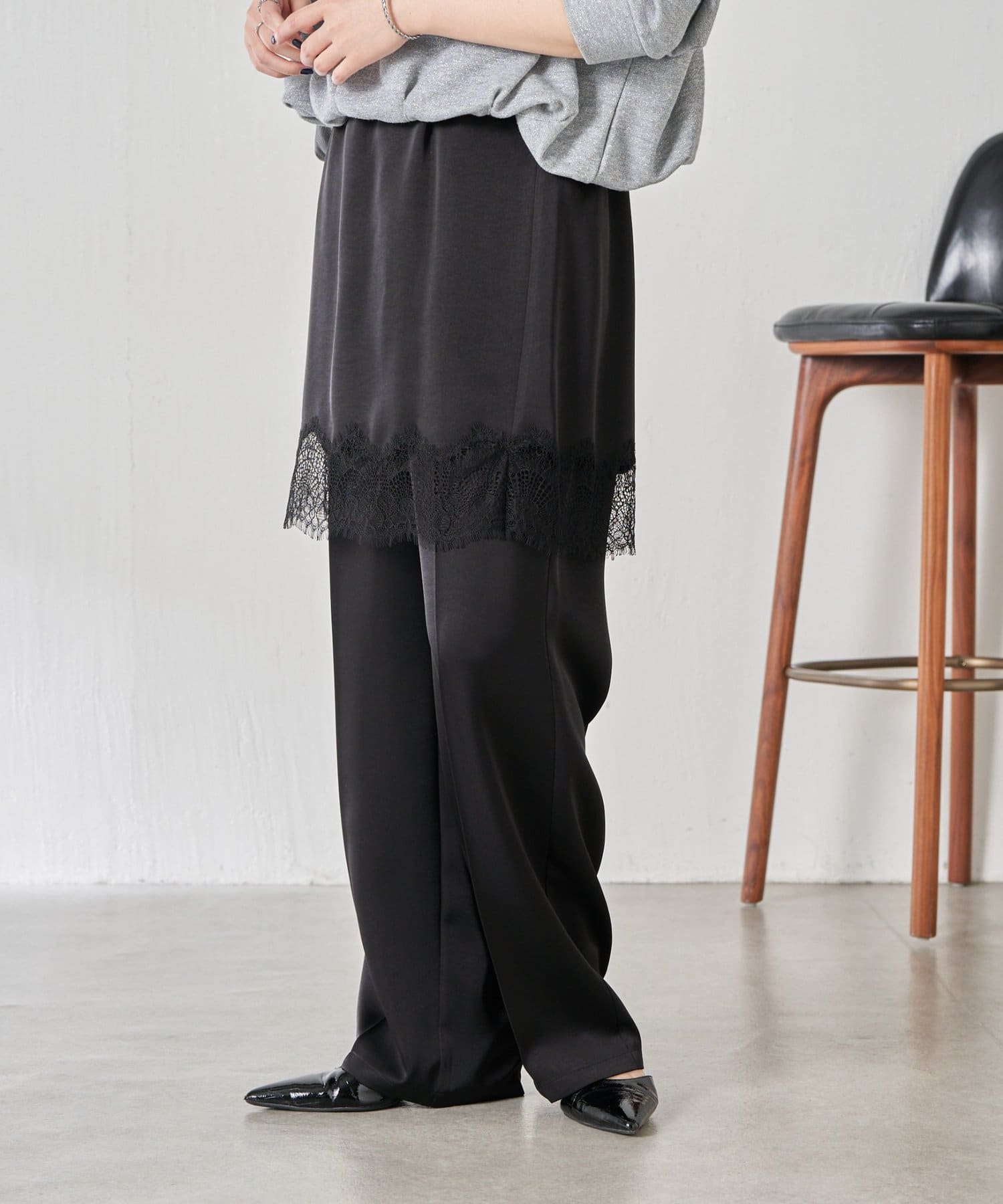 【セットアイテム】サテンレースレイヤードパンツ/レイヤード