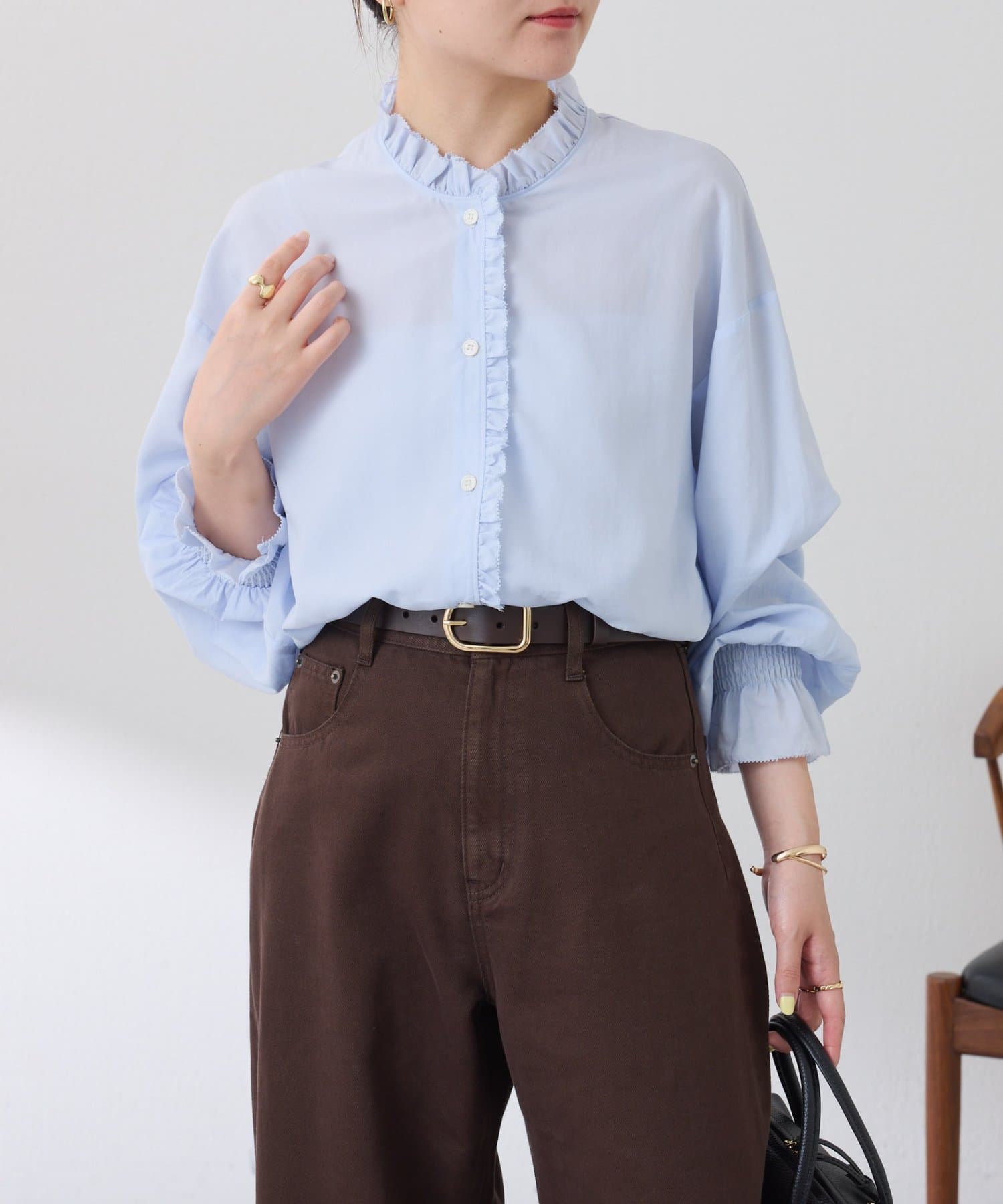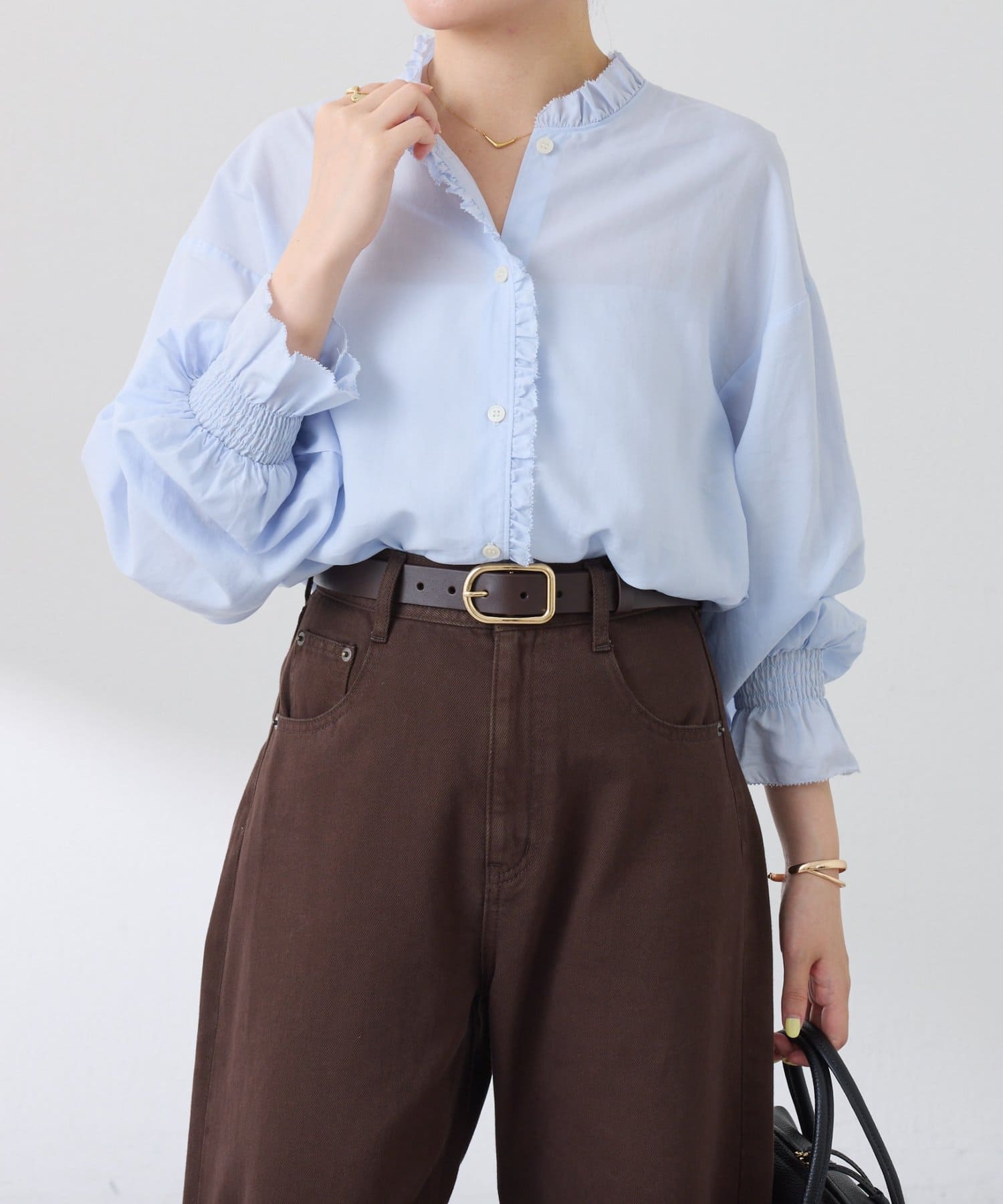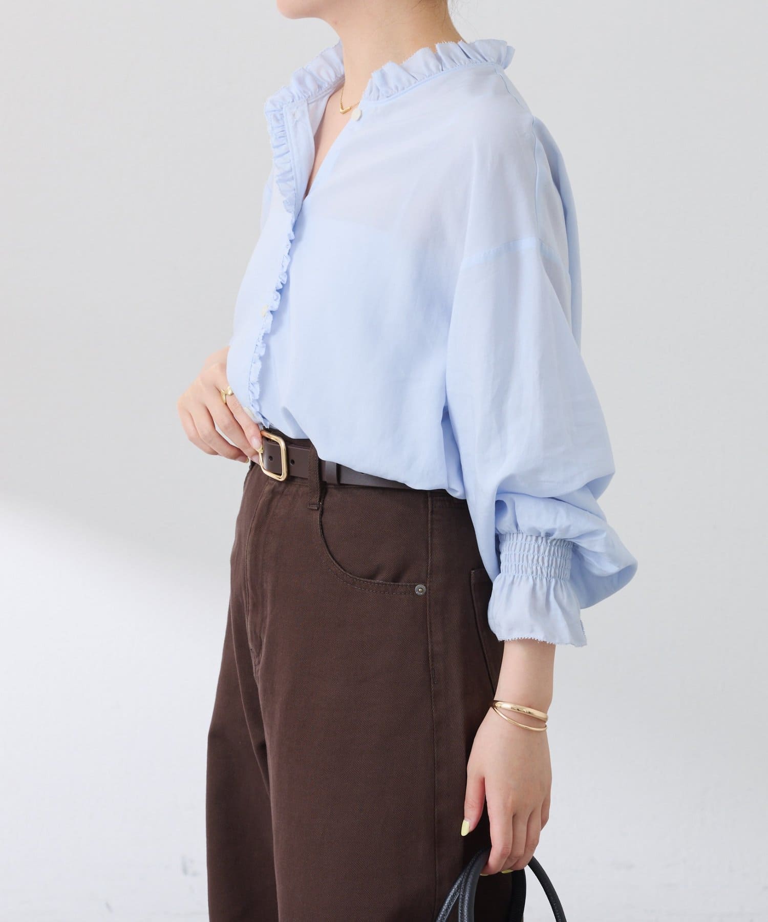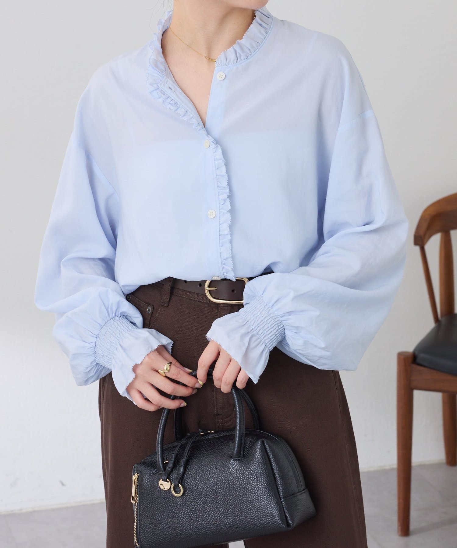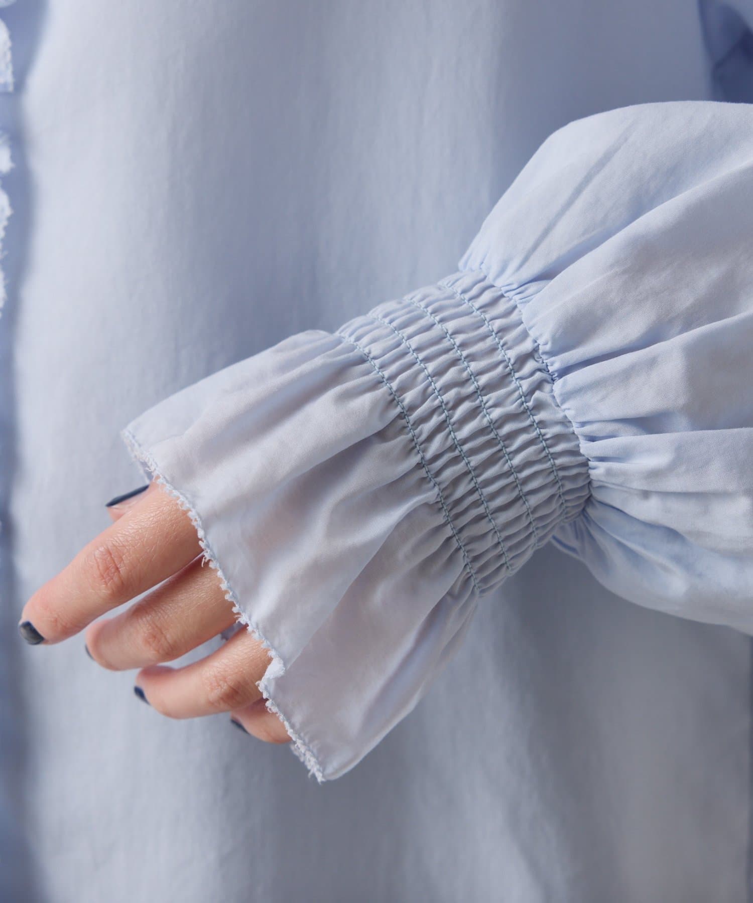 ・襟とフロントと袖口がフリルなので、ニットやジャケットから覗かせてレイヤードスタイルをお楽しみください◎