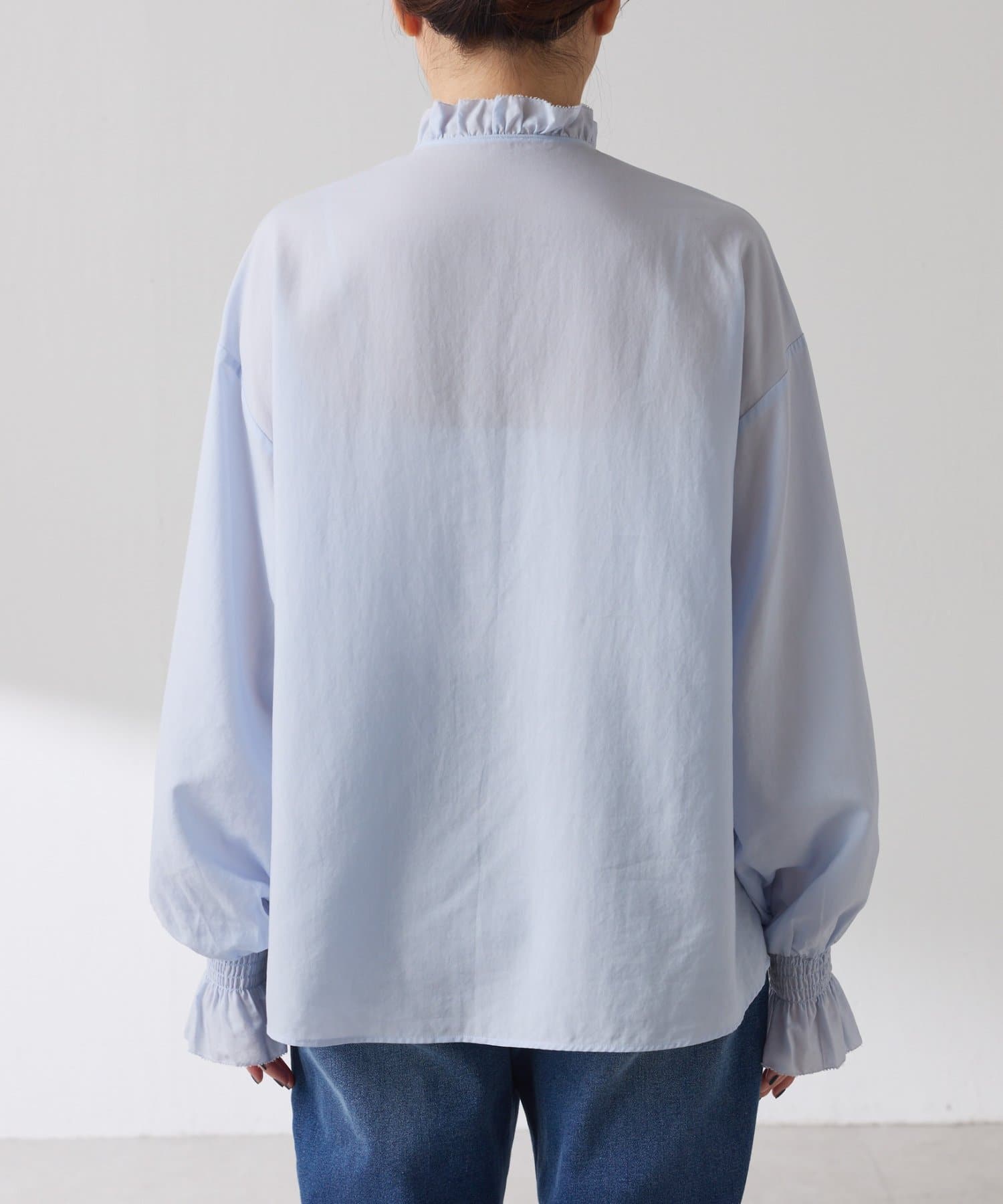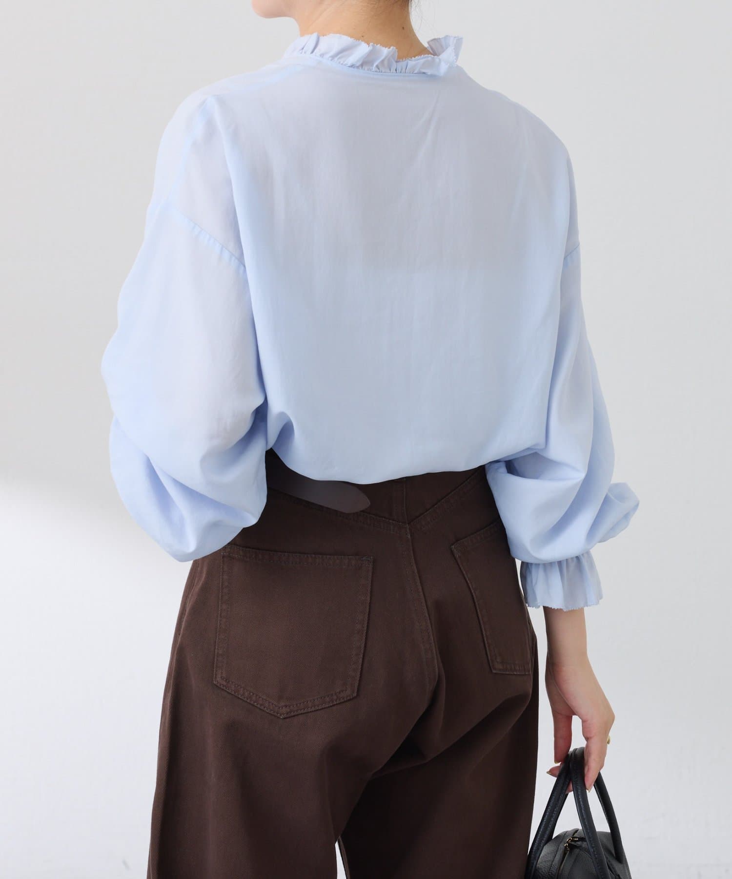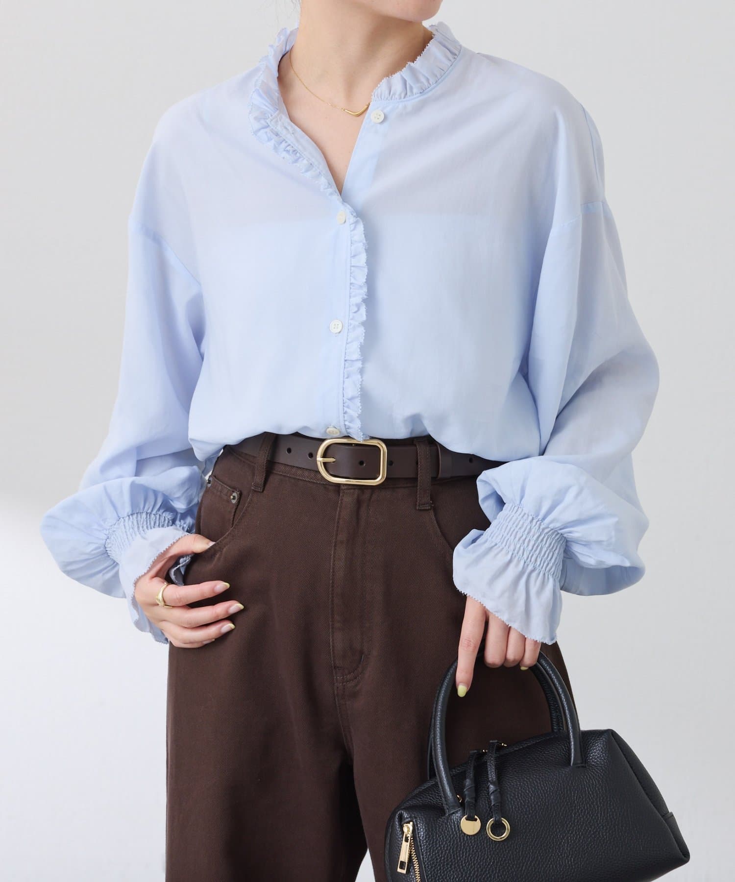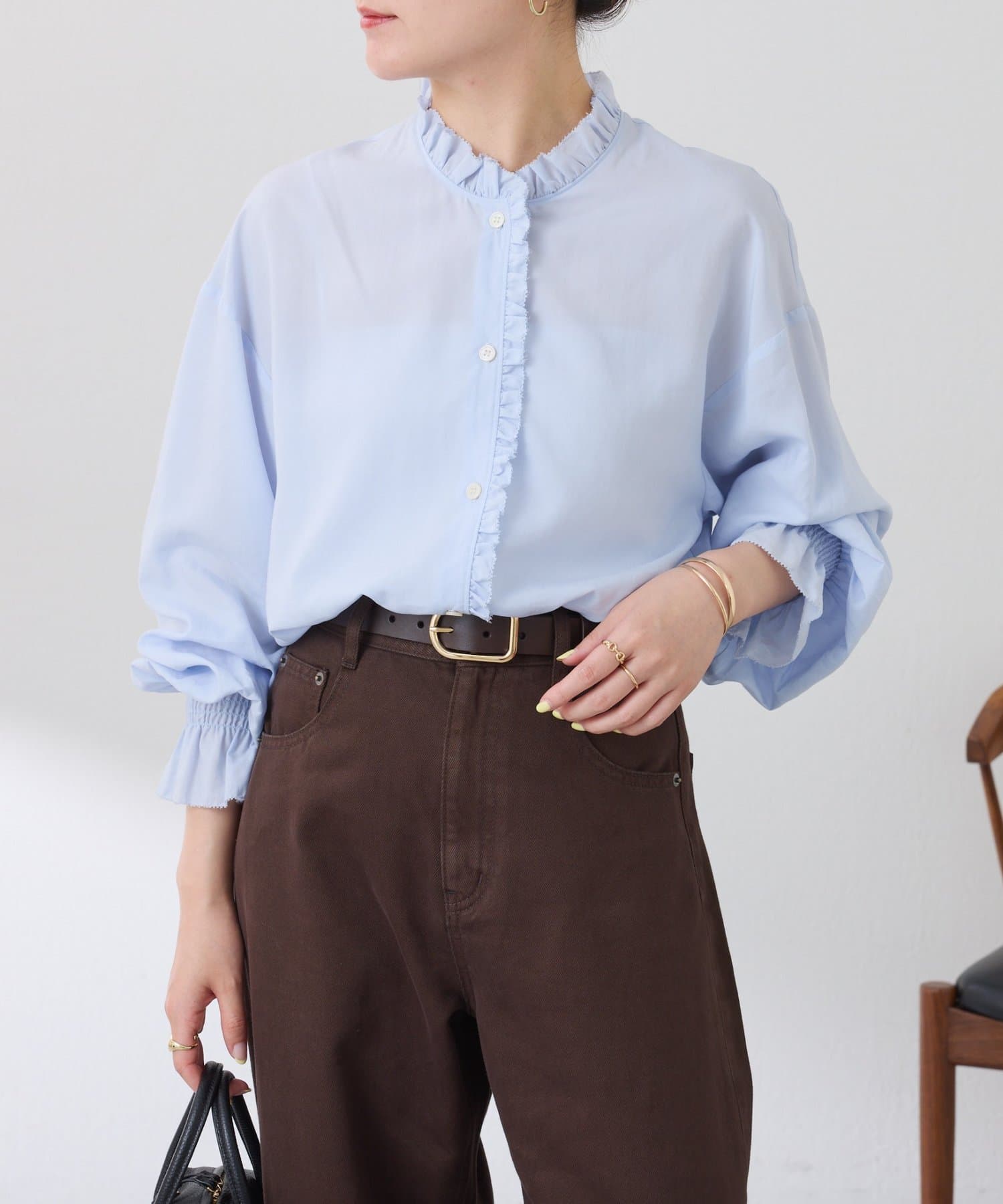 ・襟とフロントと袖口がフリルなので、ニットやジャケットから覗かせてレイヤードスタイルをお楽しみください◎