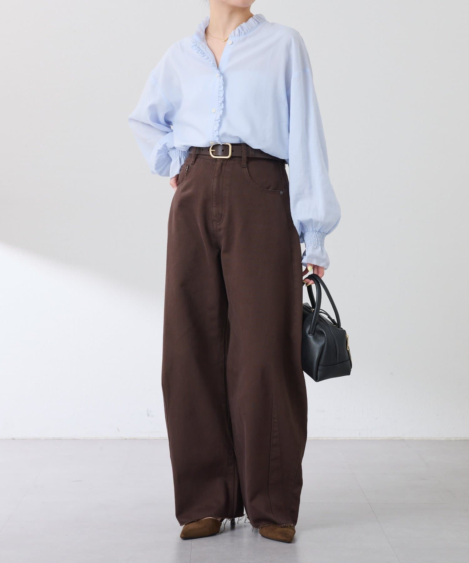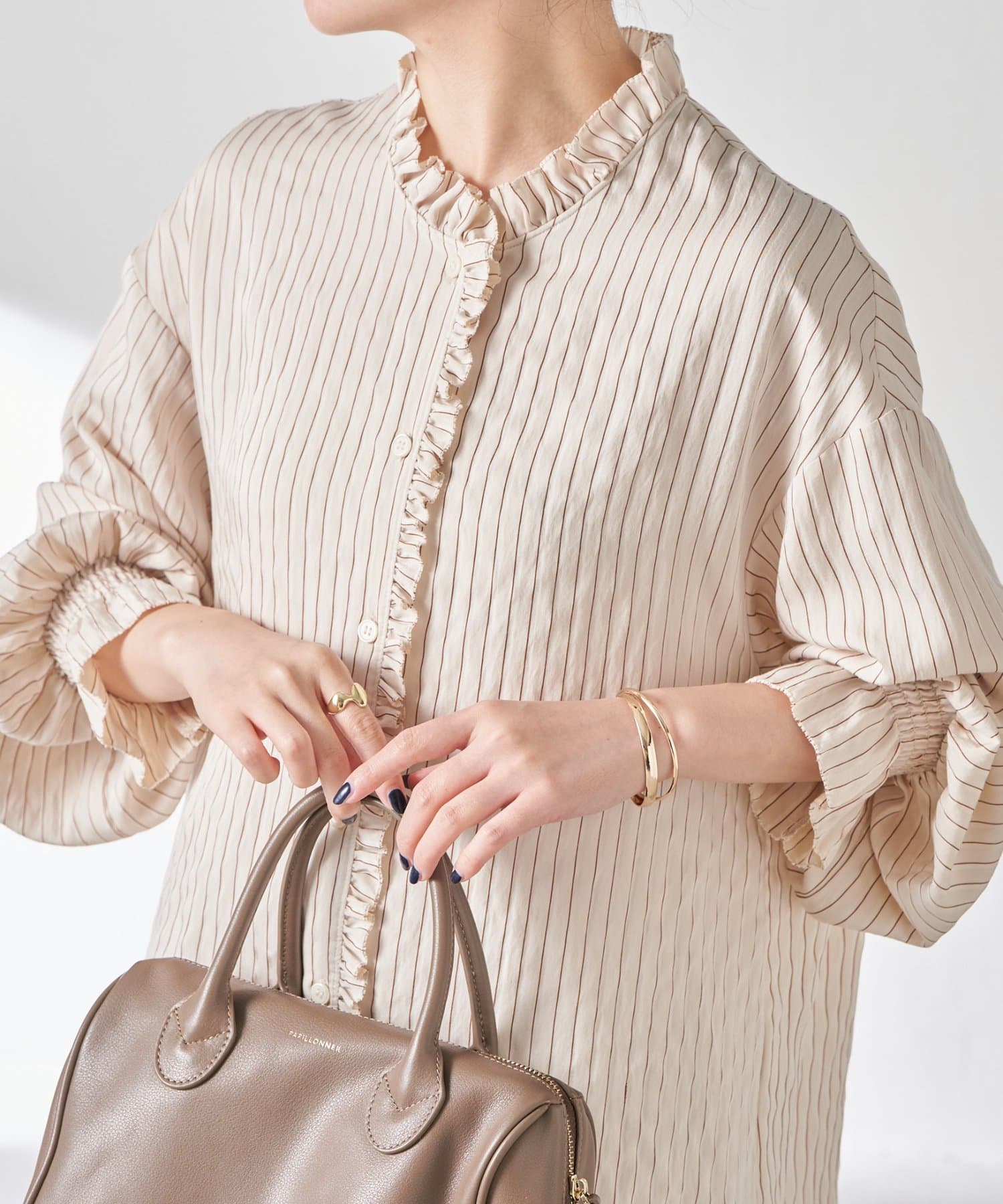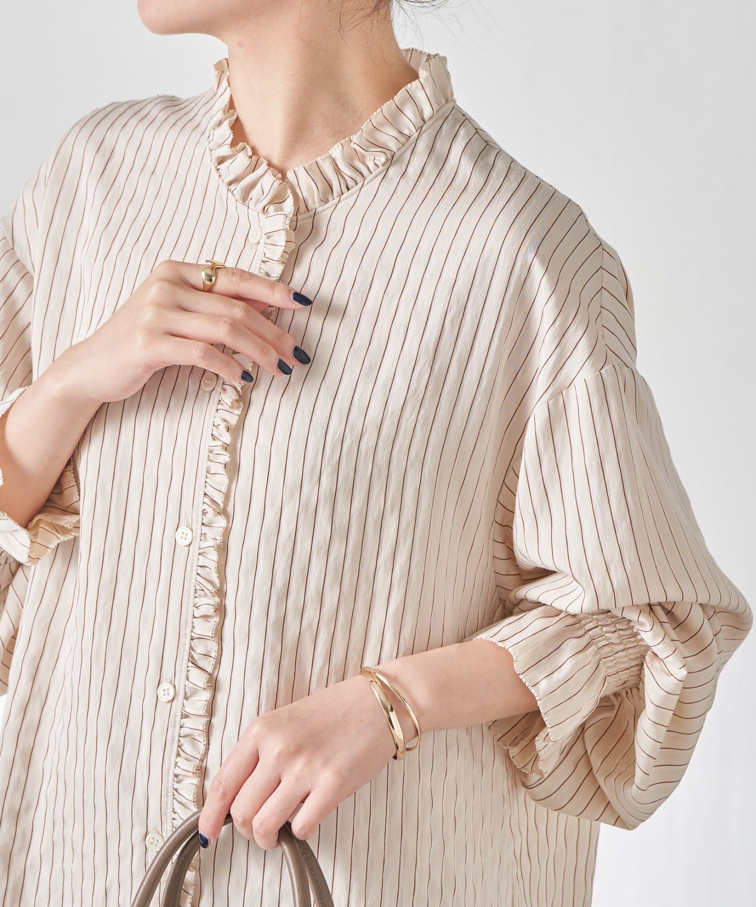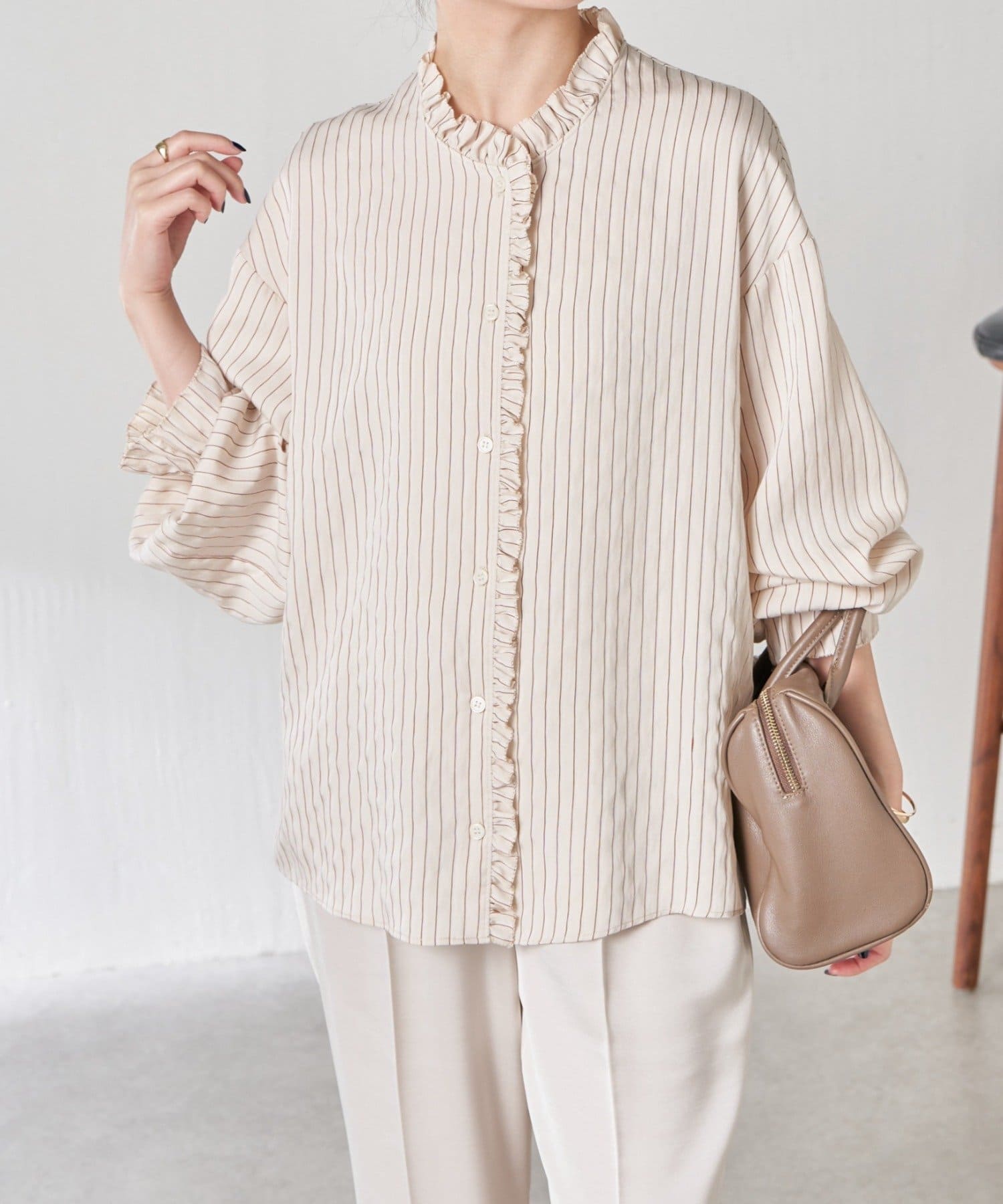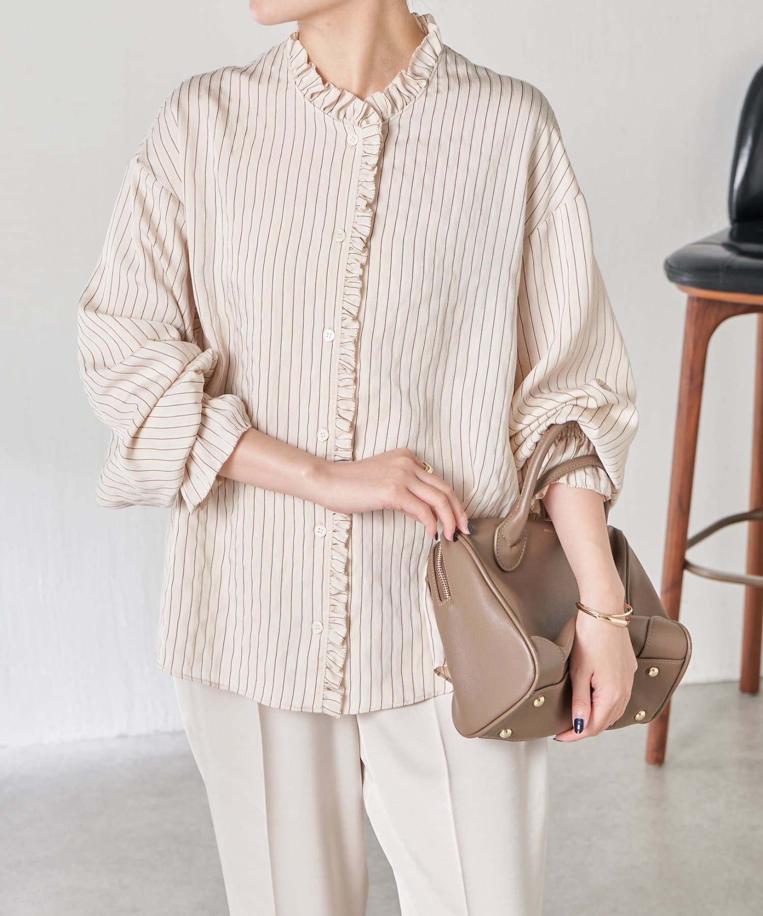 ・襟とフロントと袖口がフリルなので、ニットやジャケットから覗かせてレイヤードスタイルをお楽しみください◎