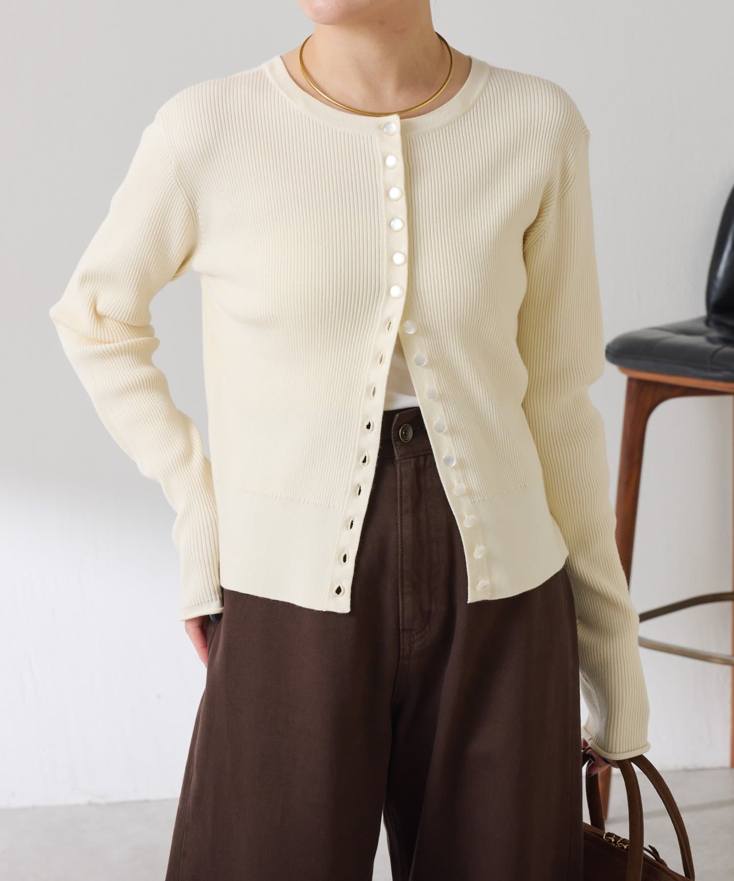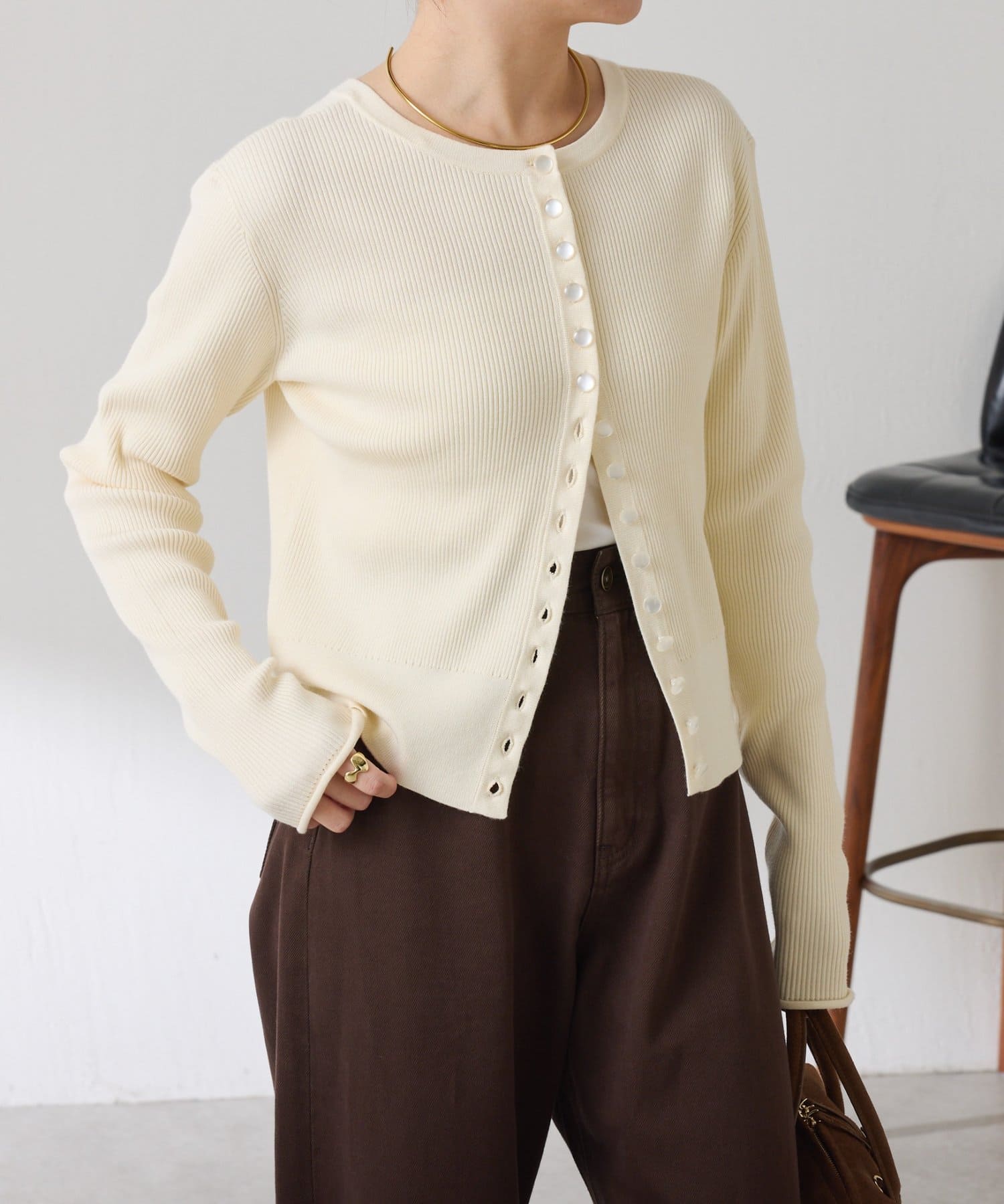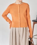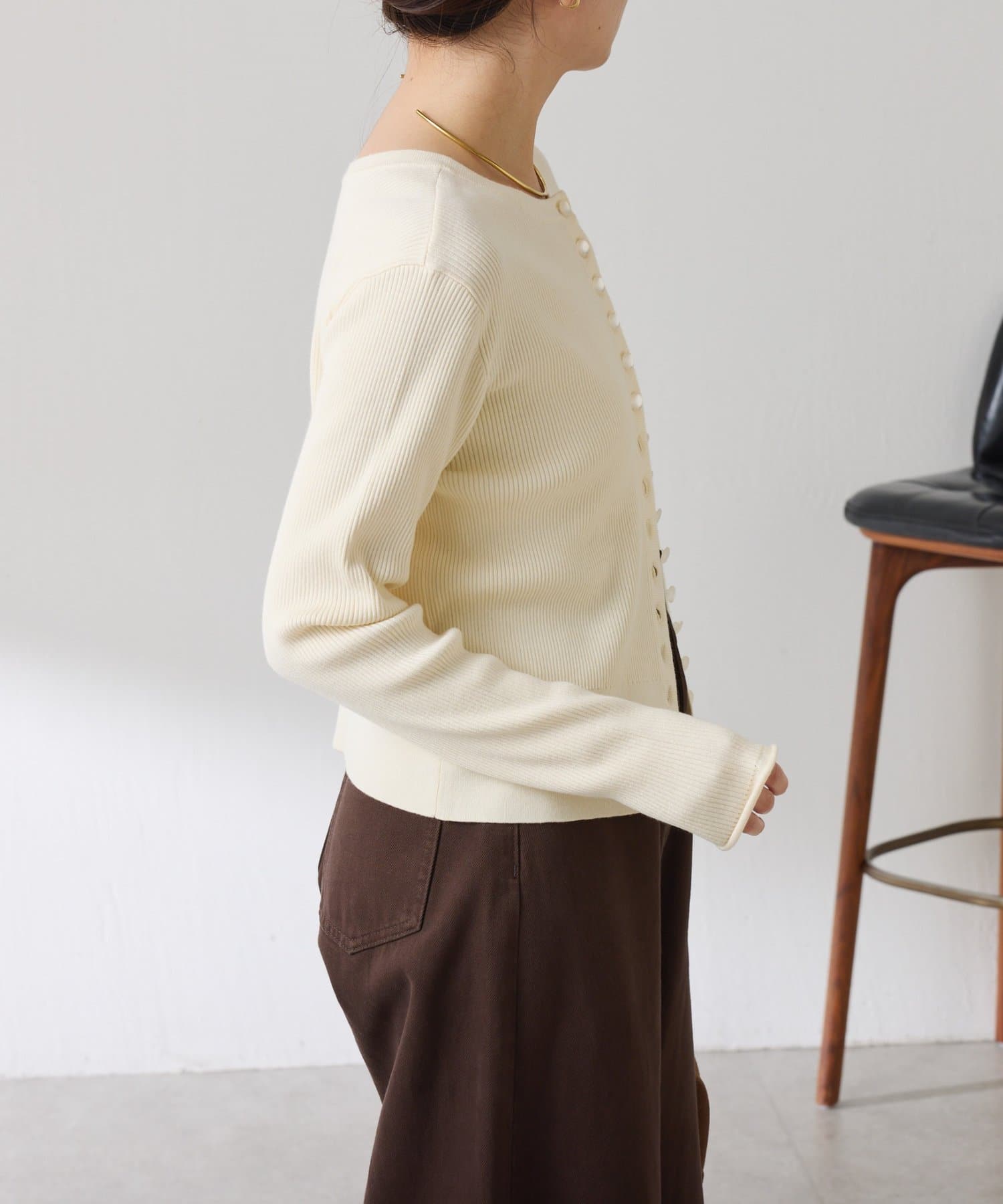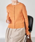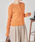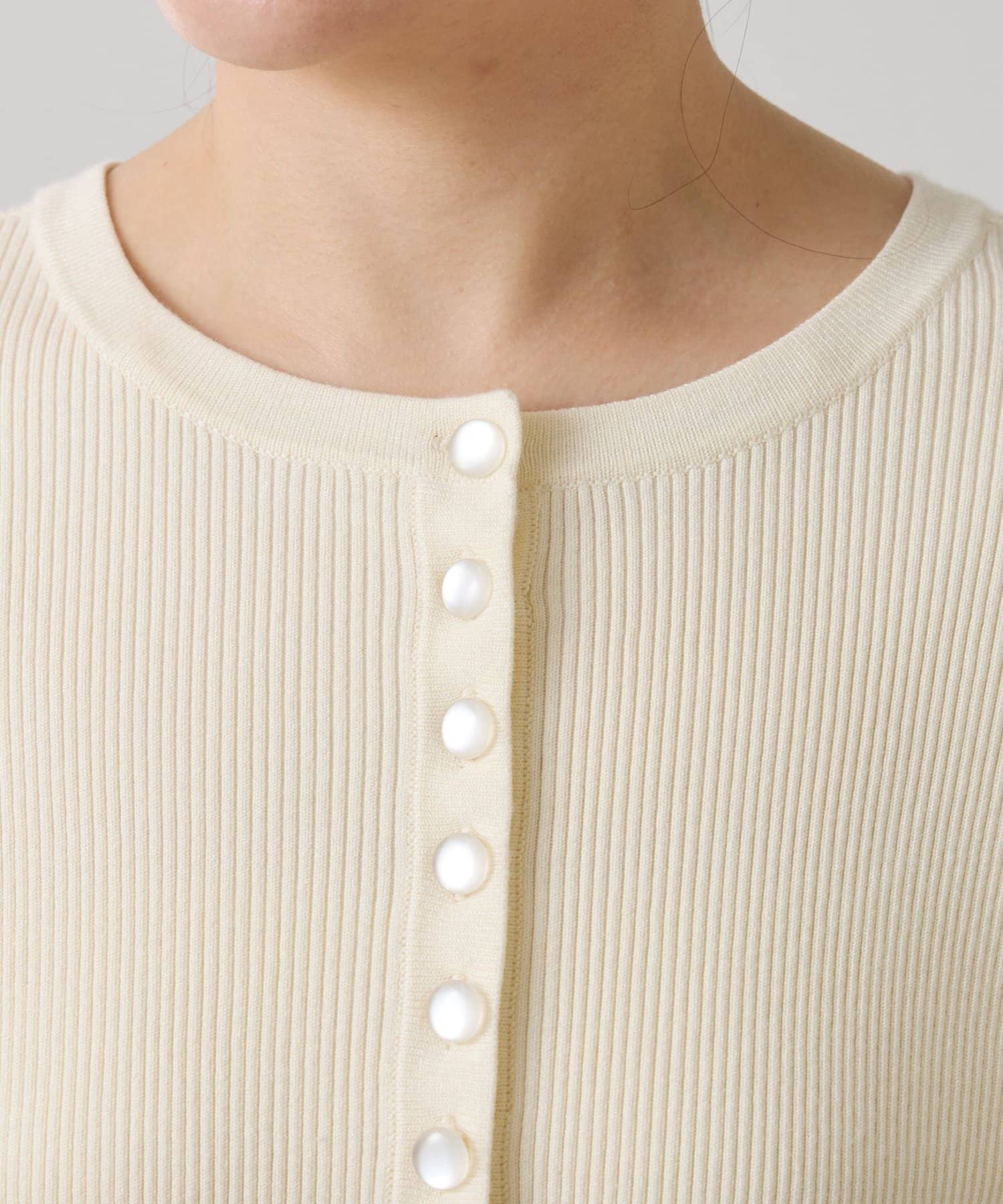 ・上品な光沢のボタンがポイントのカーディガン。