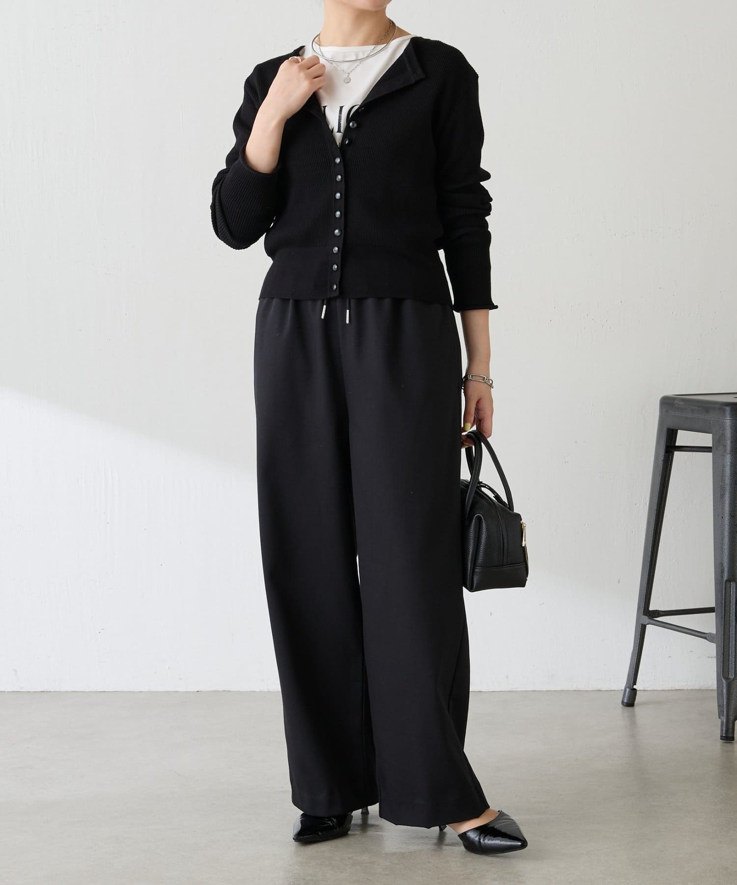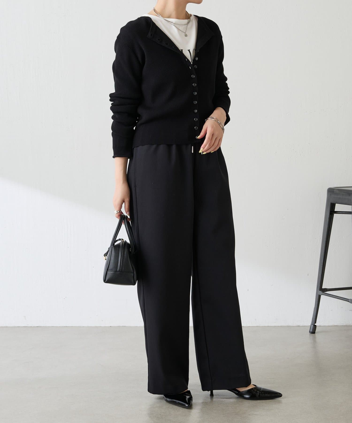 ロゴロンTと合わせて上品さをプラスするときれいめカジュアルが完成します。