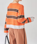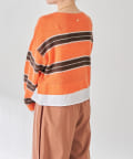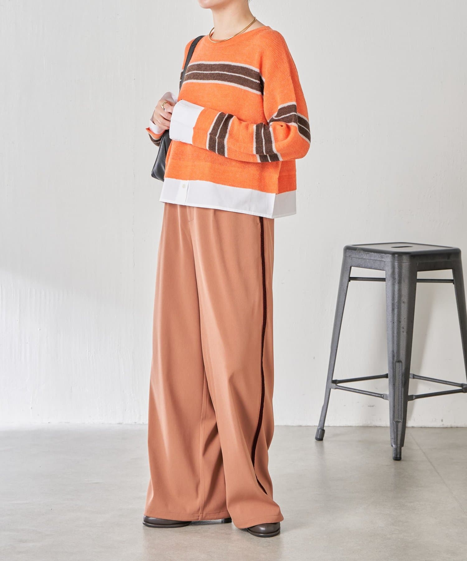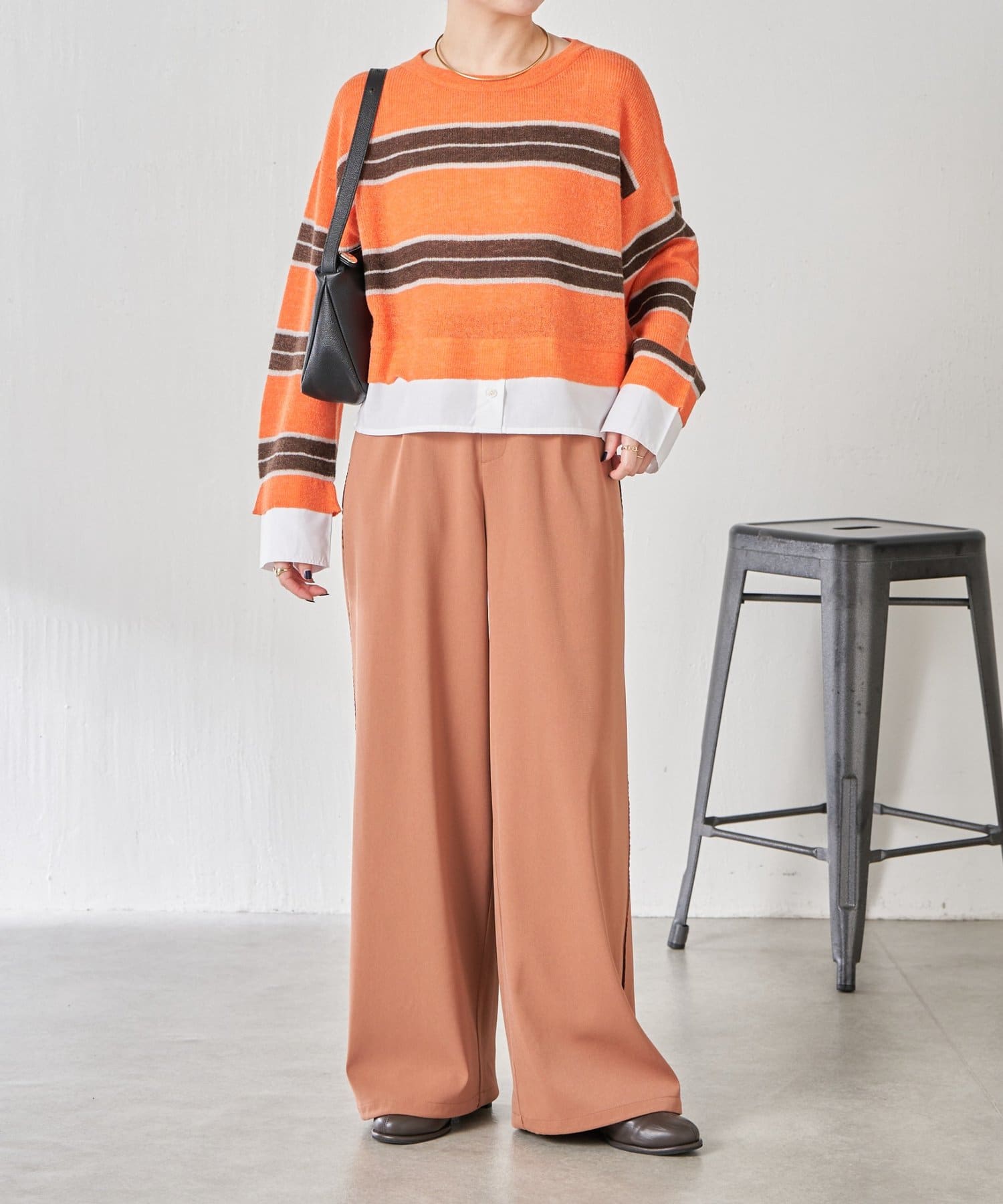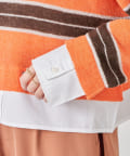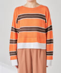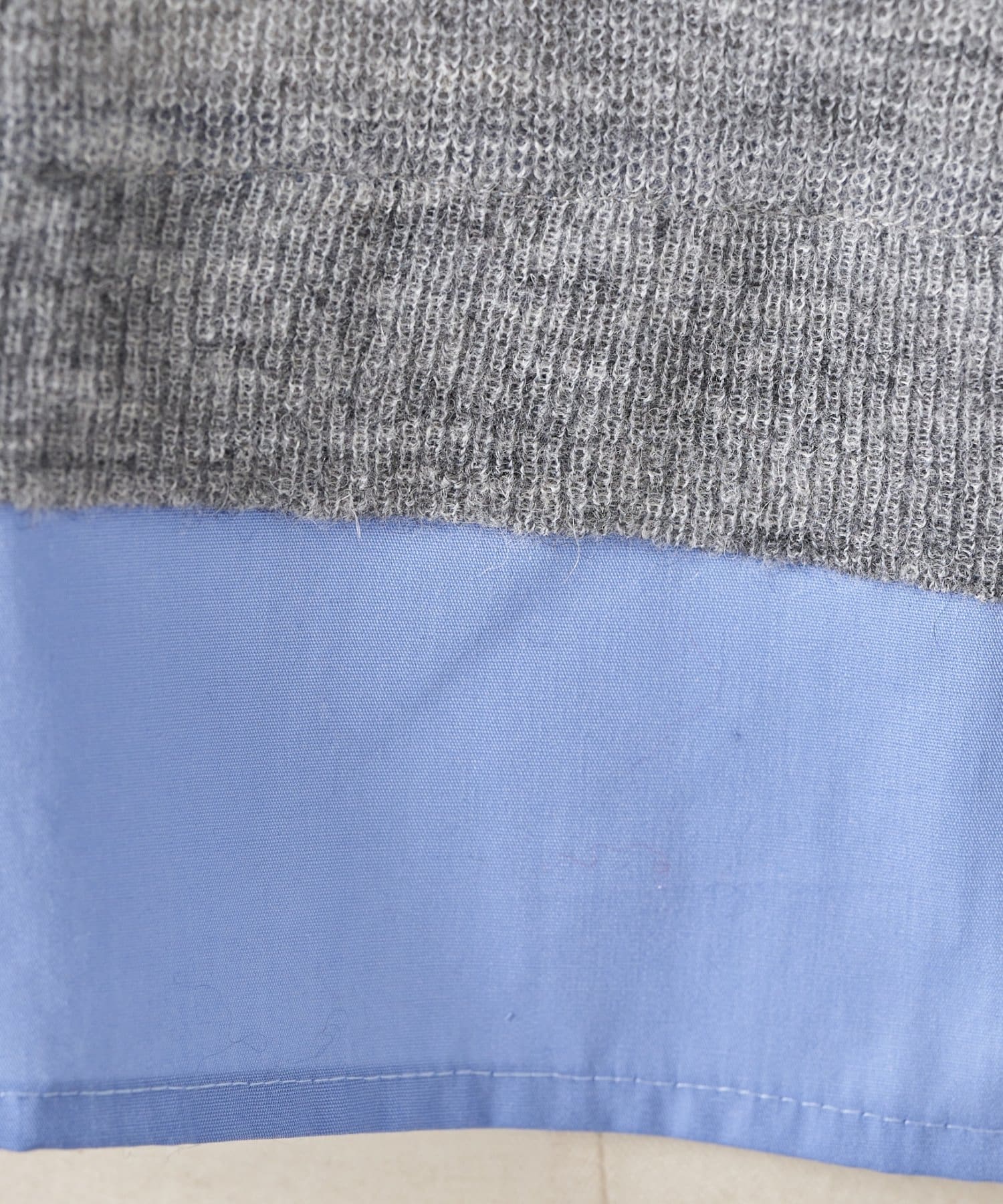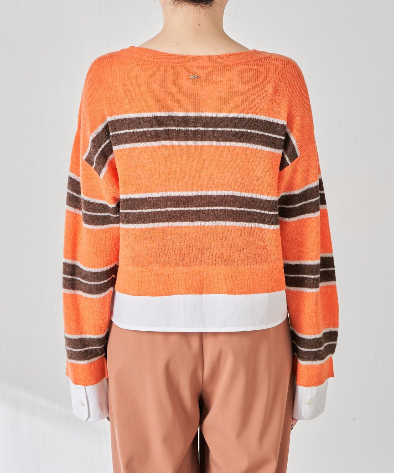 ・柔らかな薄手のボーダーニットに、袖口と裾にシャツをレイヤードしたようなドッキングアイテム。