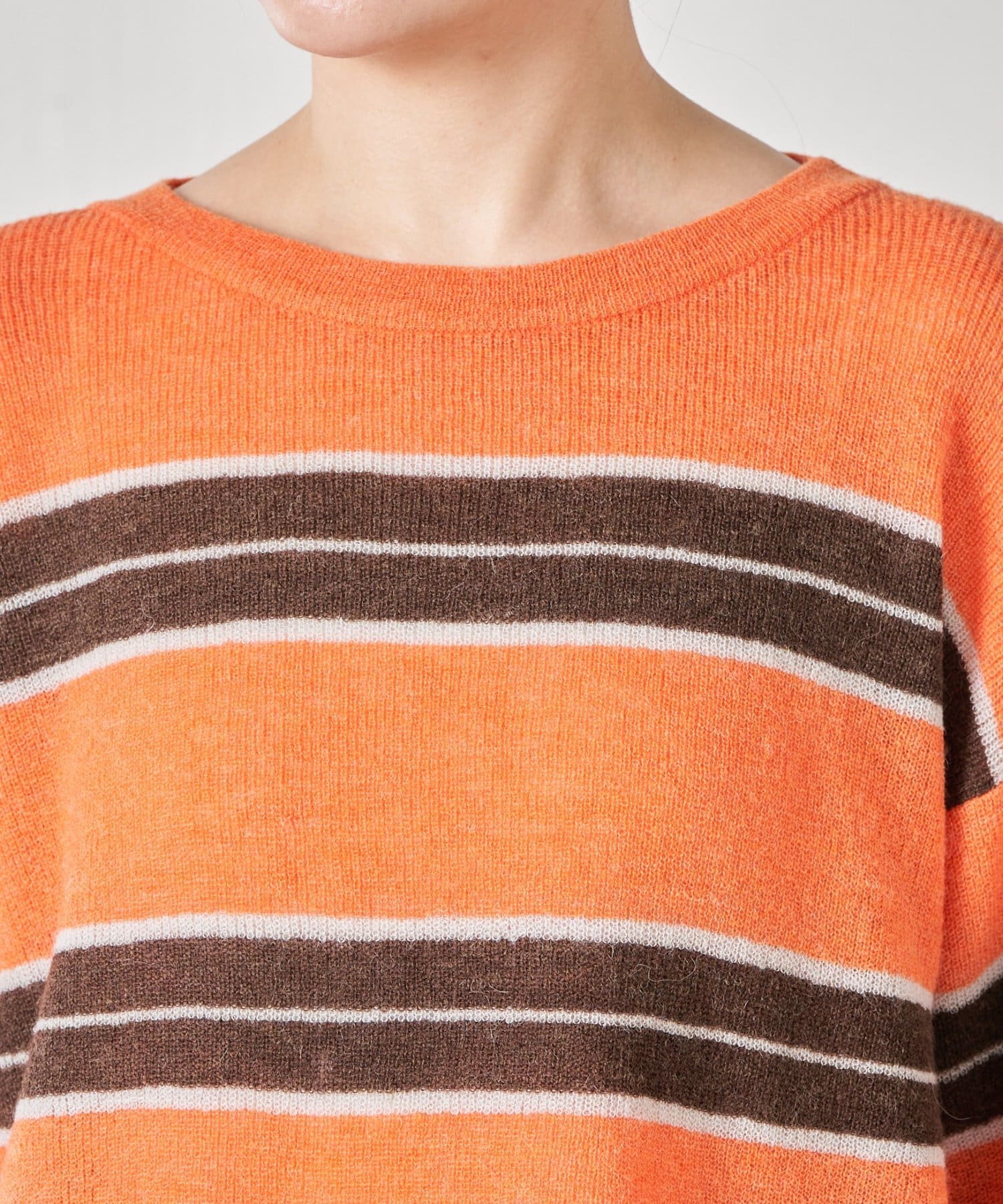 【1枚で着映え/アルパカ混】エアリードッキングボーダーニット