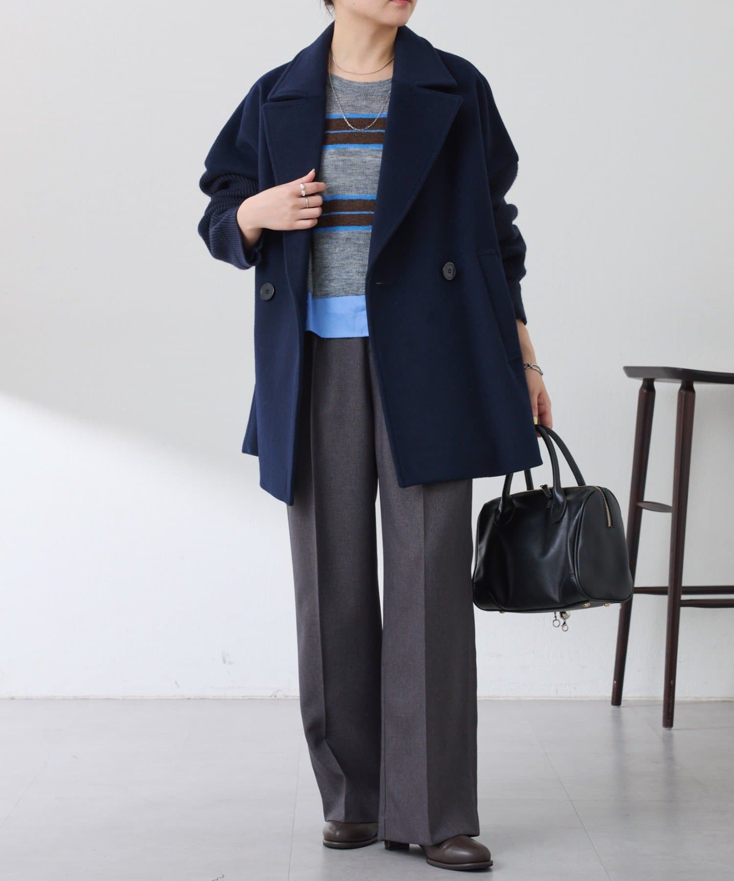 コンパクトな着丈でワイドボトムやフレアスカートなどボリュームのあるボトムスともバランスが取りやすいです。