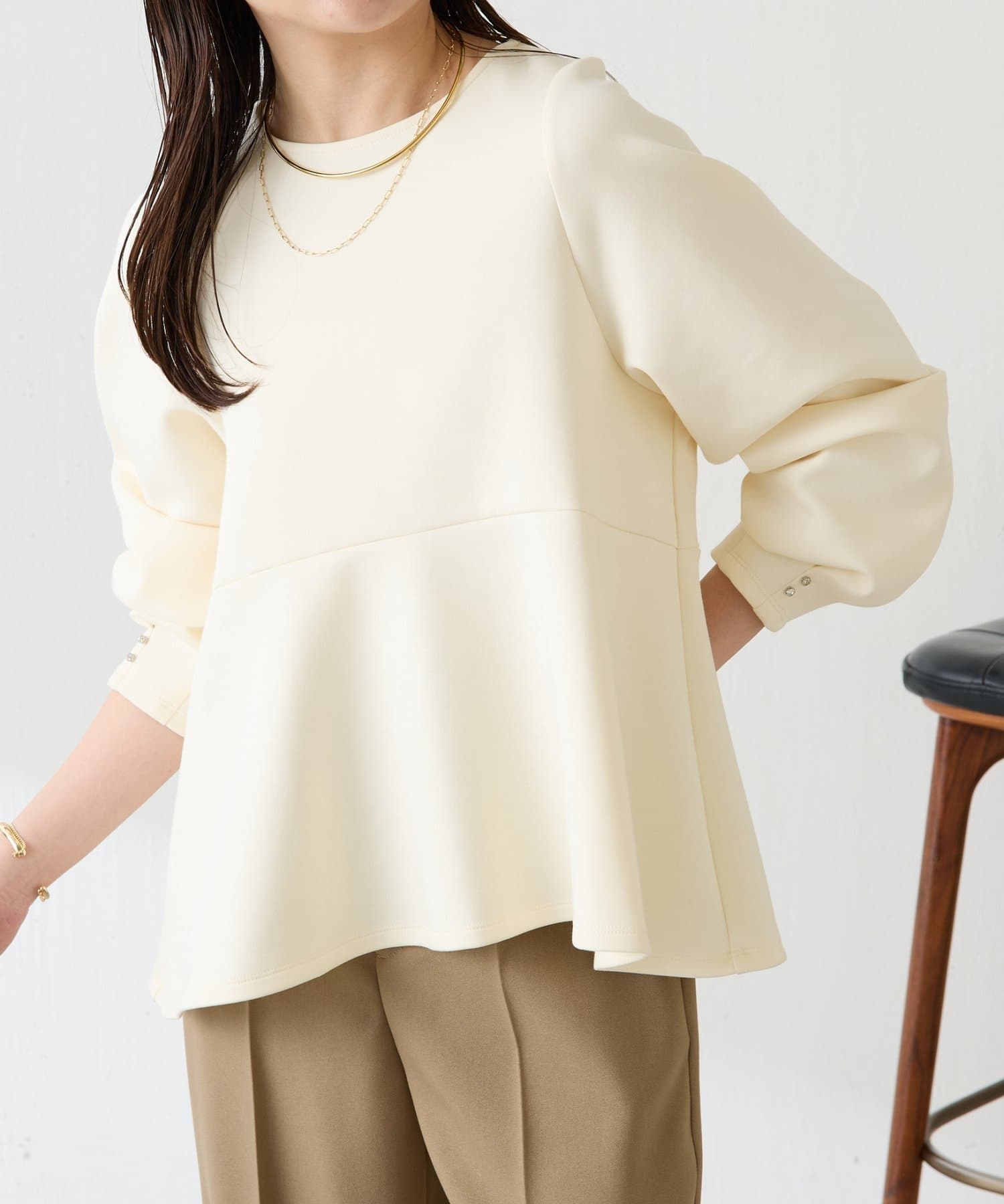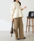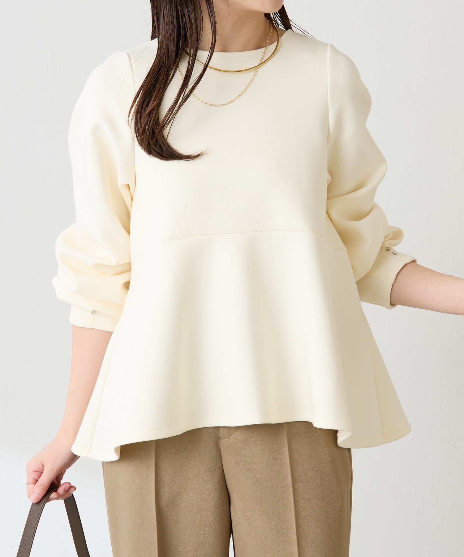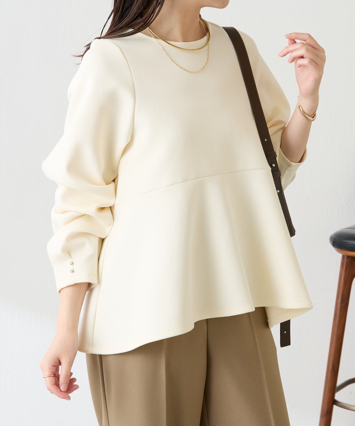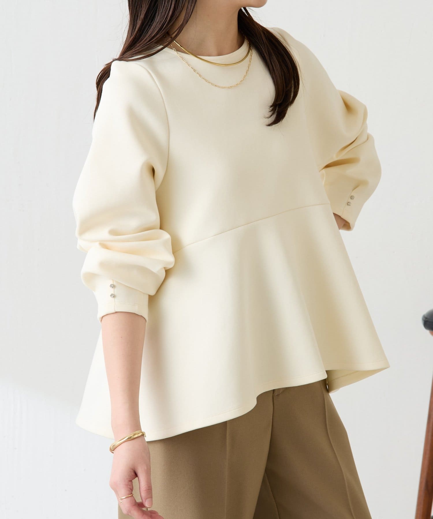 【着痩せ/脚長効果】袖ビジューペプラムカットソー