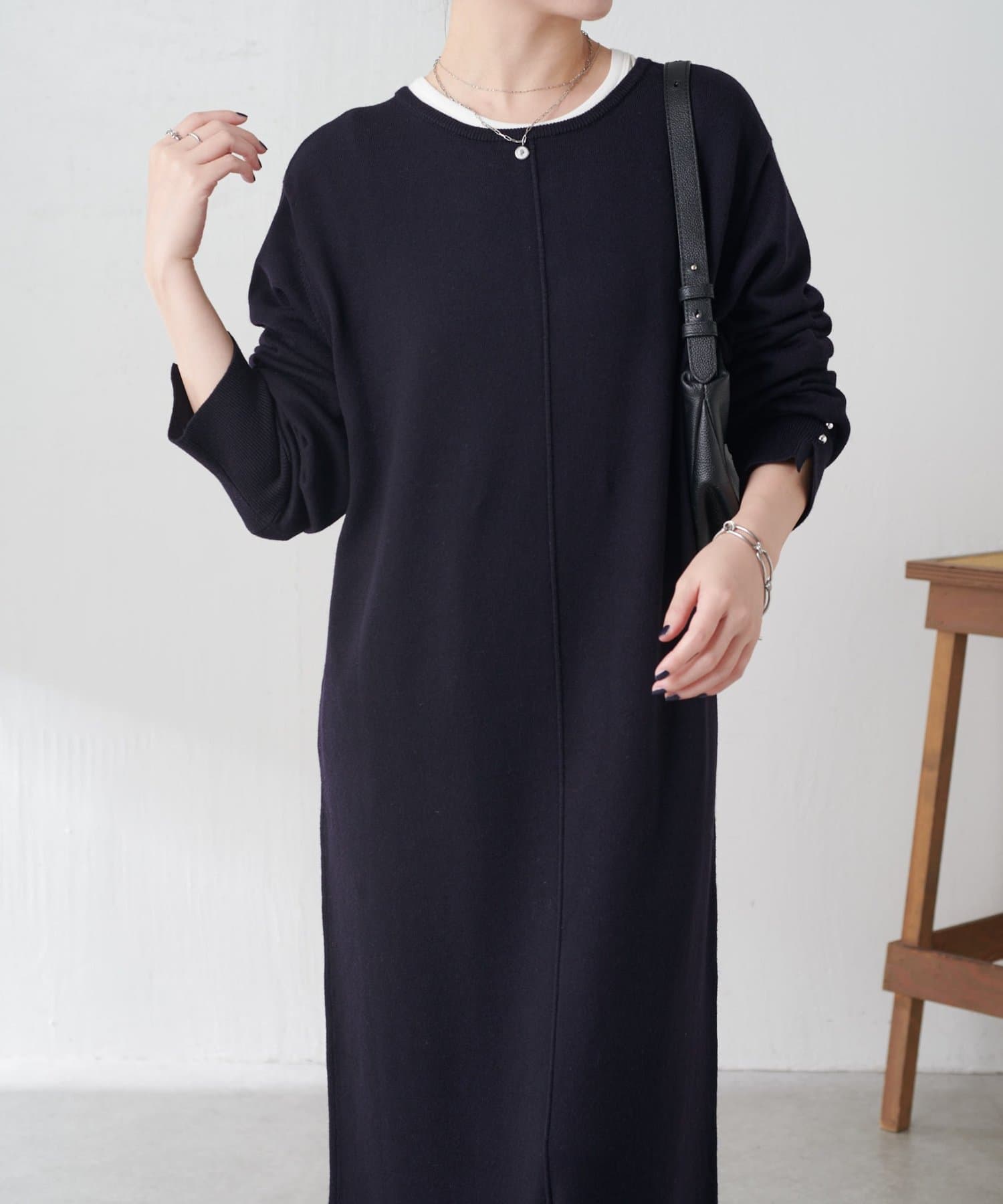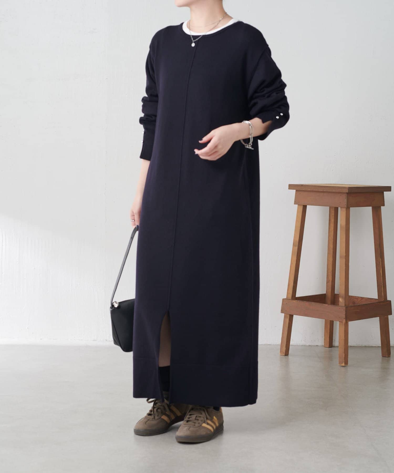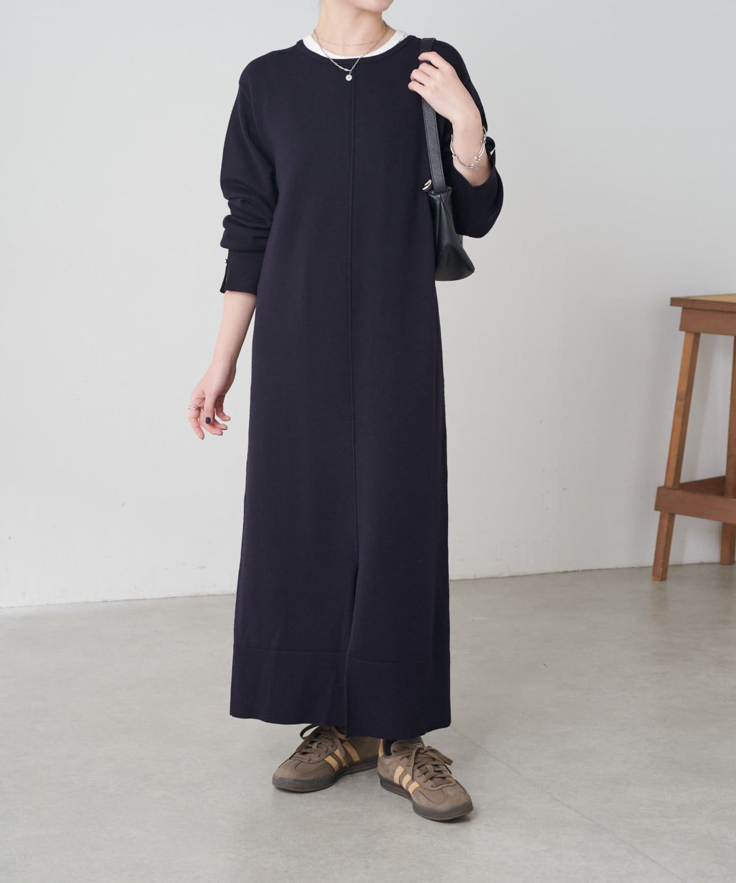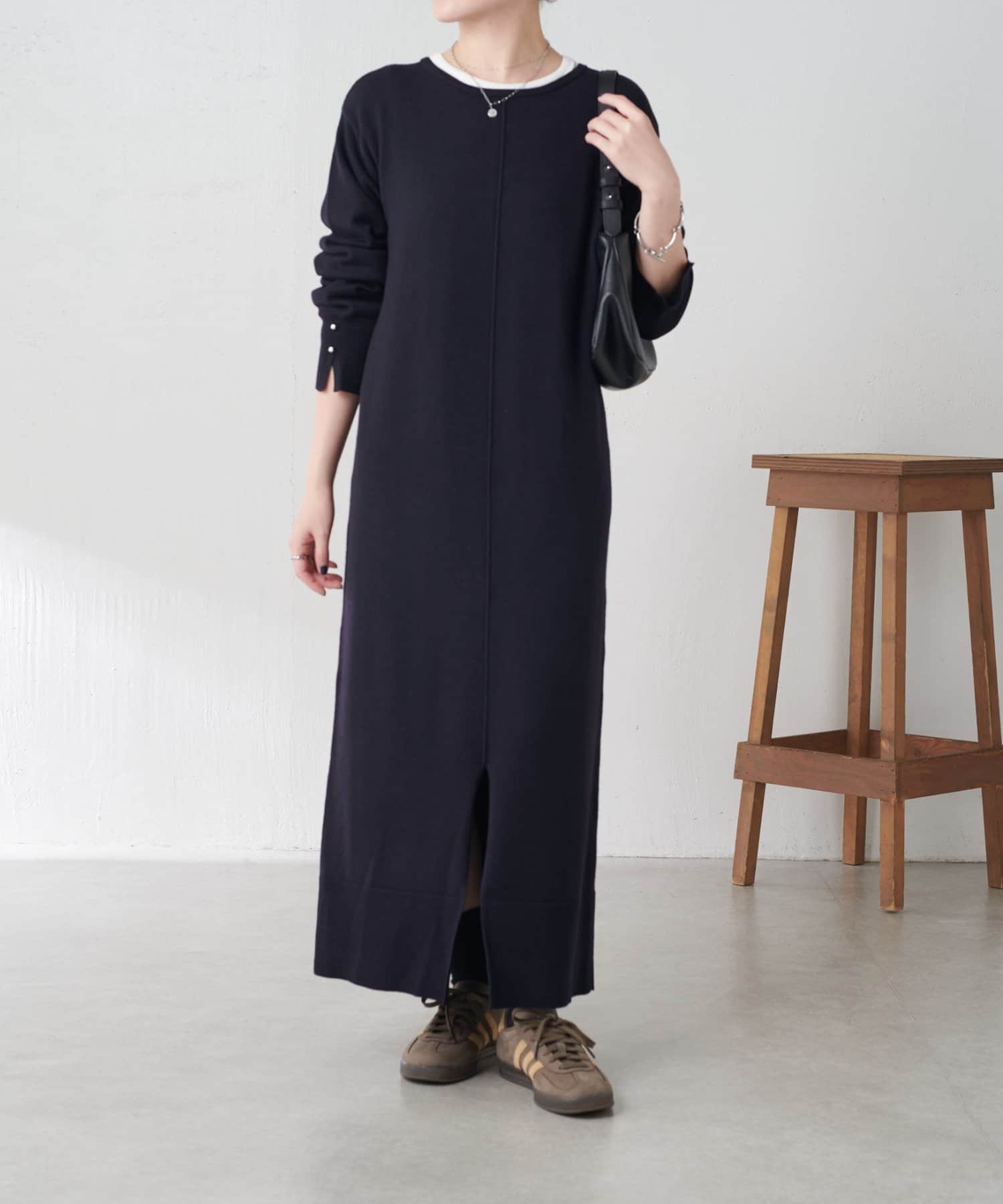リラックス感とほどよいきちんと感を兼ね備えたニットワンピ