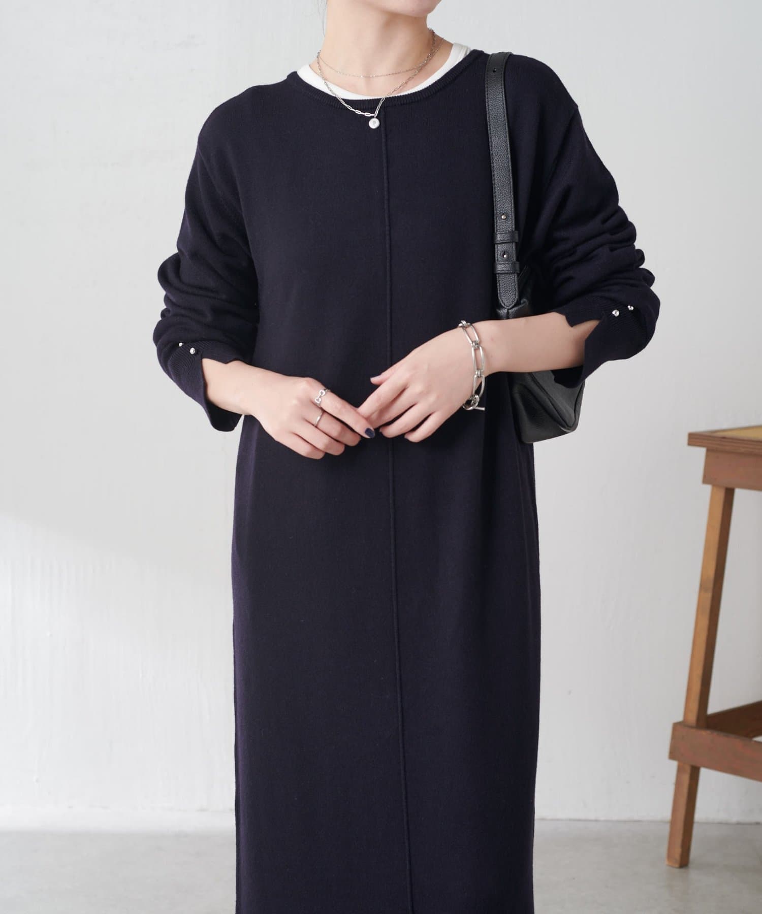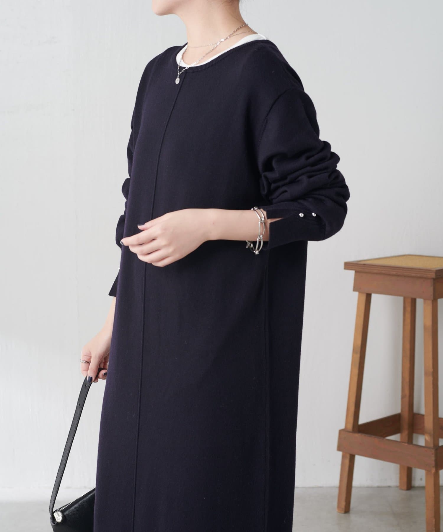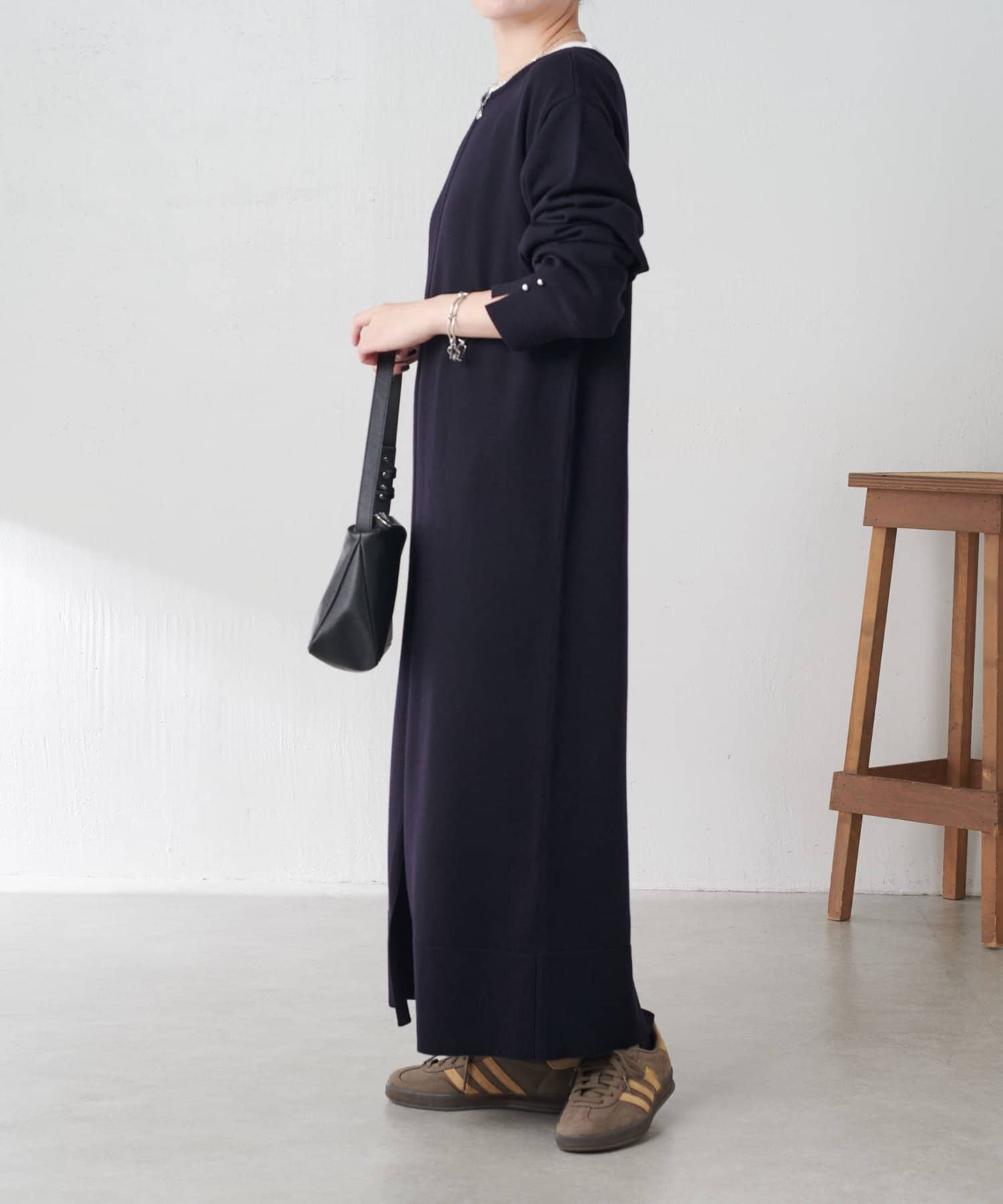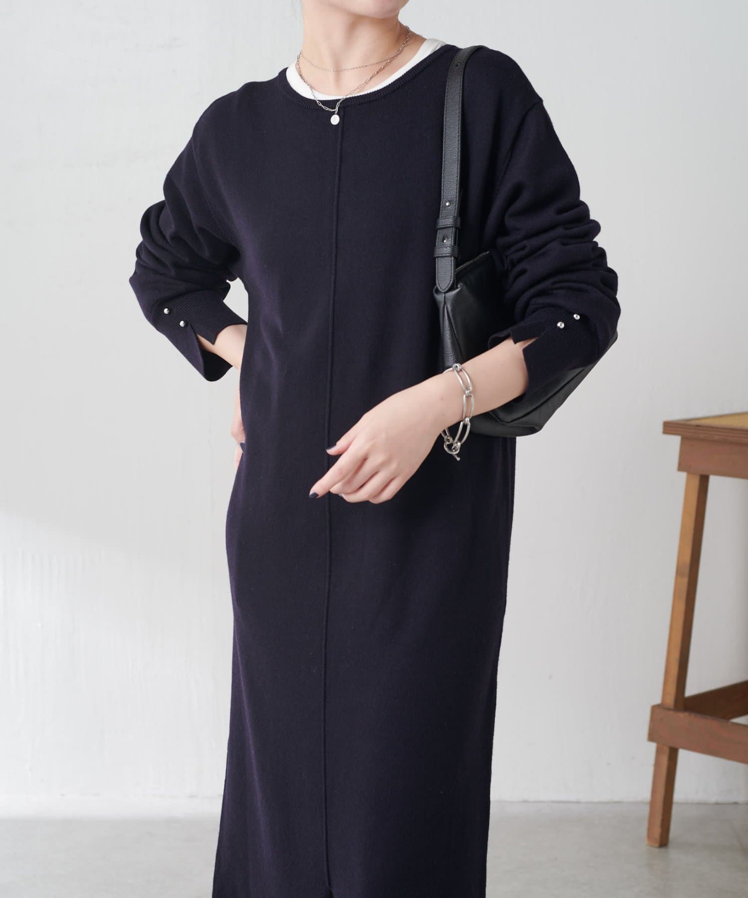 リラックス感とほどよいきちんと感を兼ね備えたニットワンピ