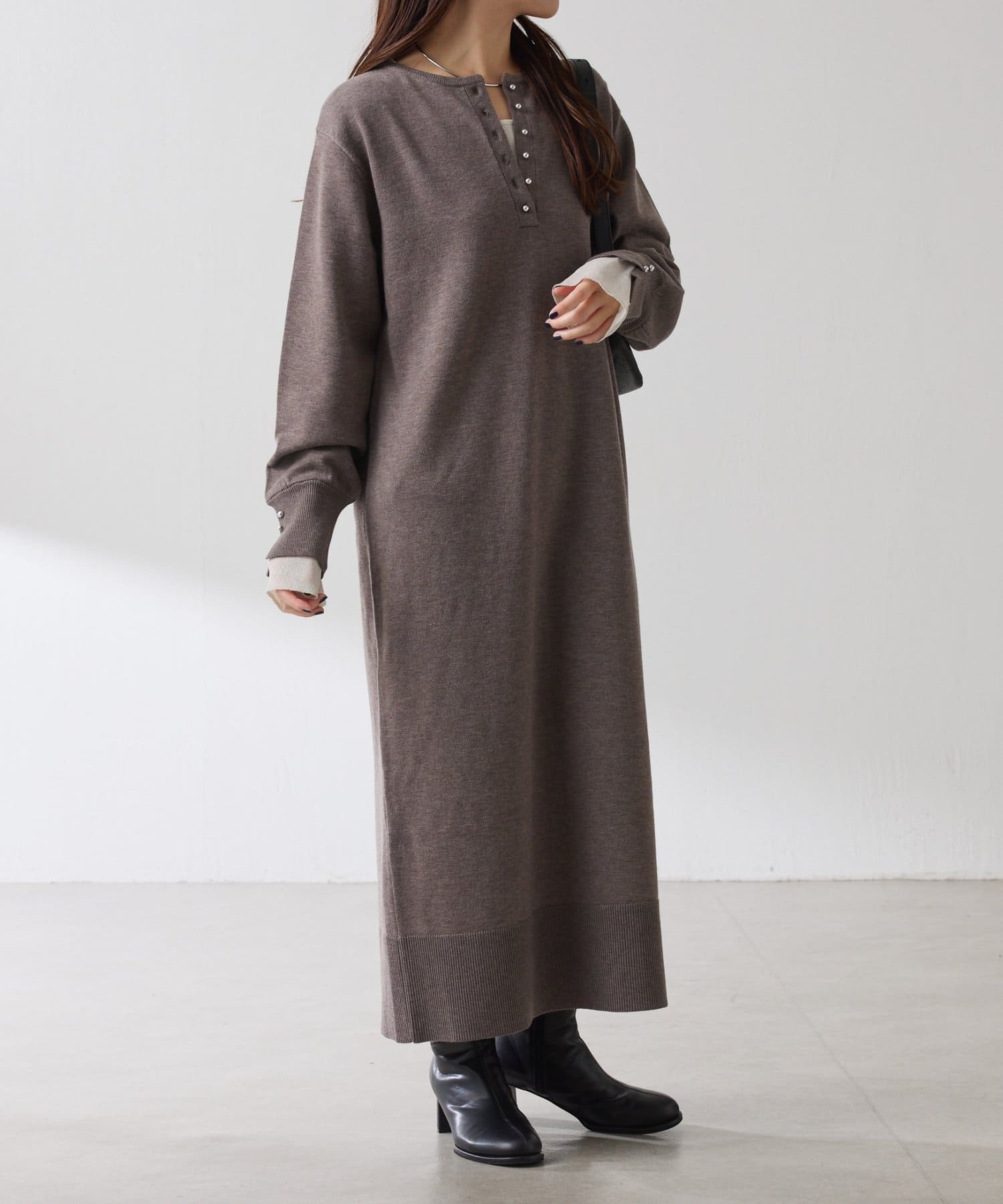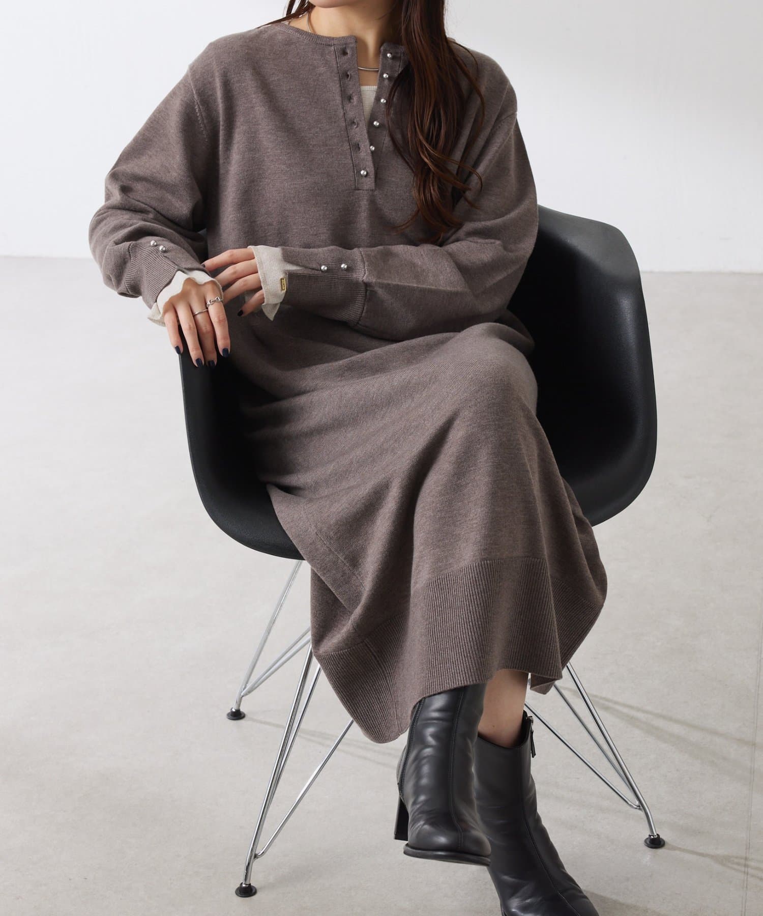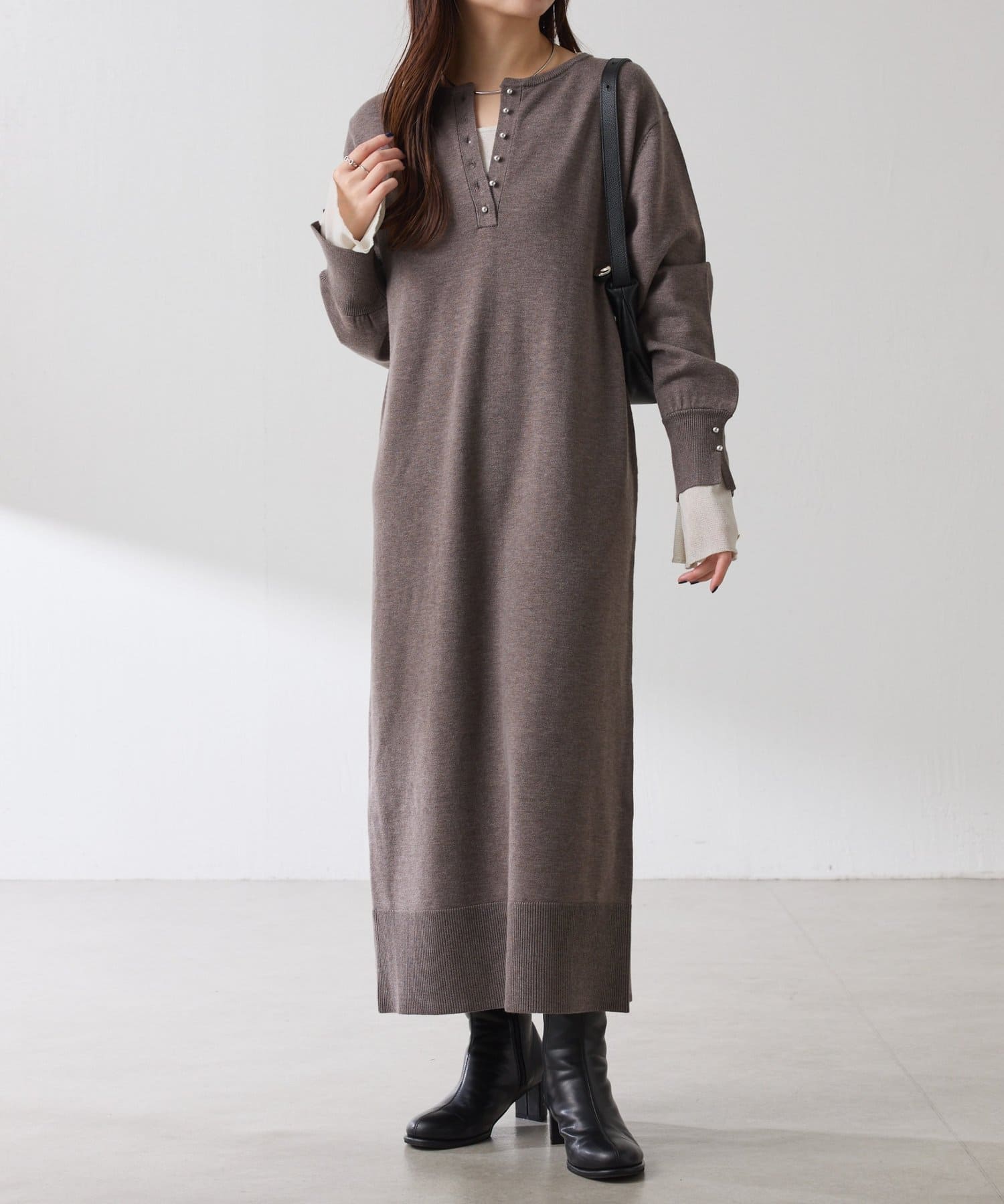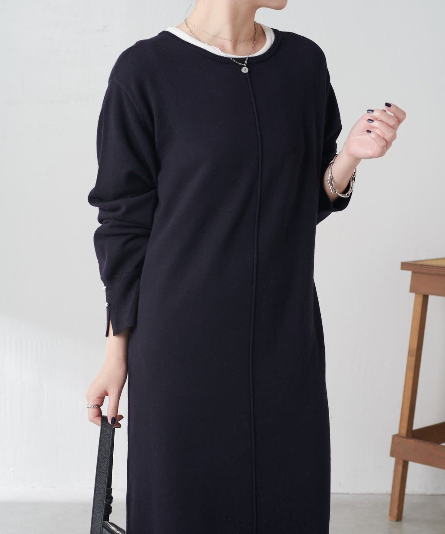 リラックス感とほどよいきちんと感を兼ね備えたニットワンピ
