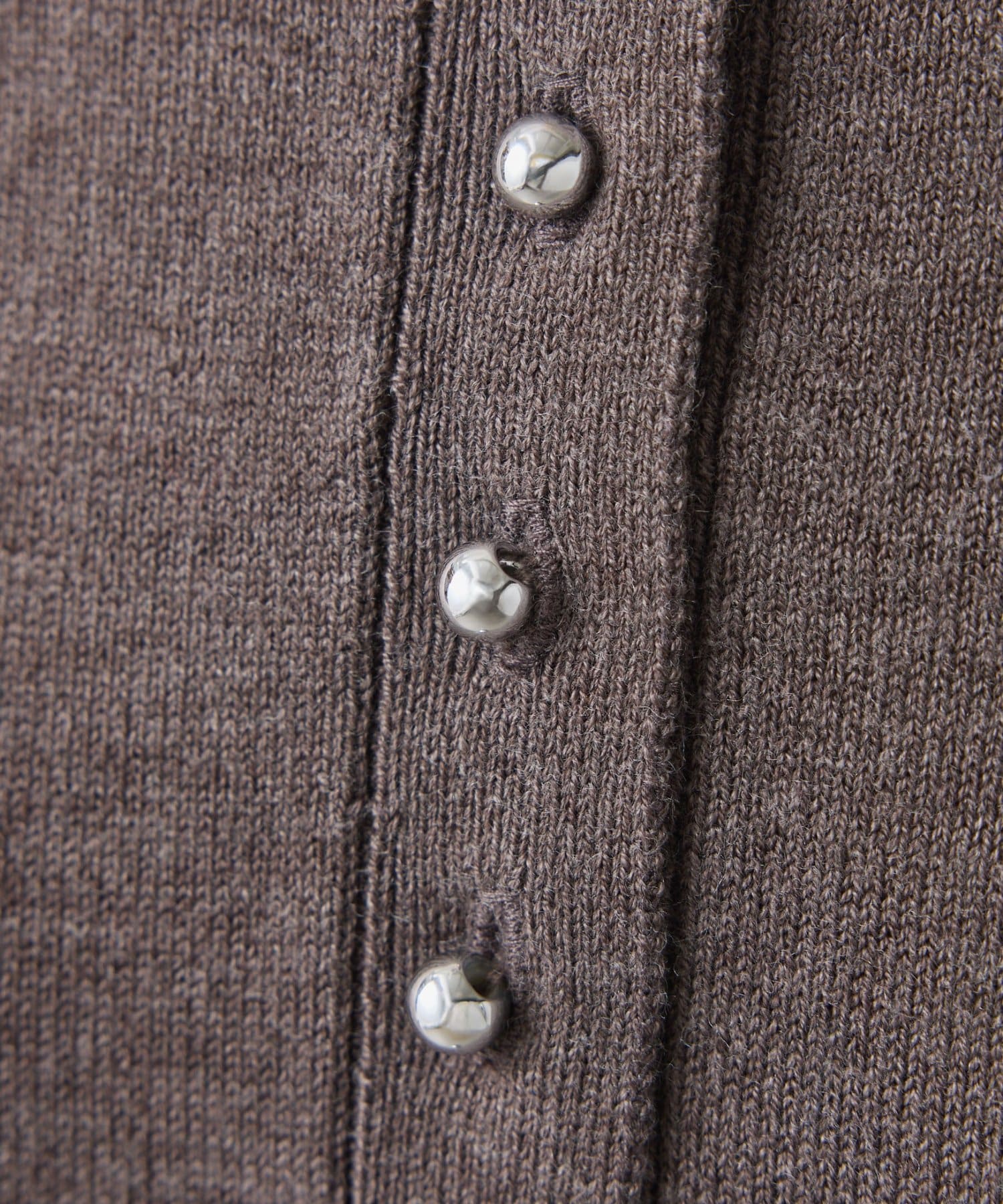 ・小さめの球体のメタルボタンがワンポイントに。開けて鎖骨を見せると着痩せ効果も◎