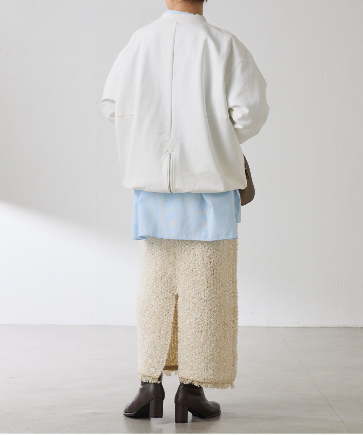 ・ツイード調ですが、ニット素材できれいめにもカジュアルにも使いやすいです。