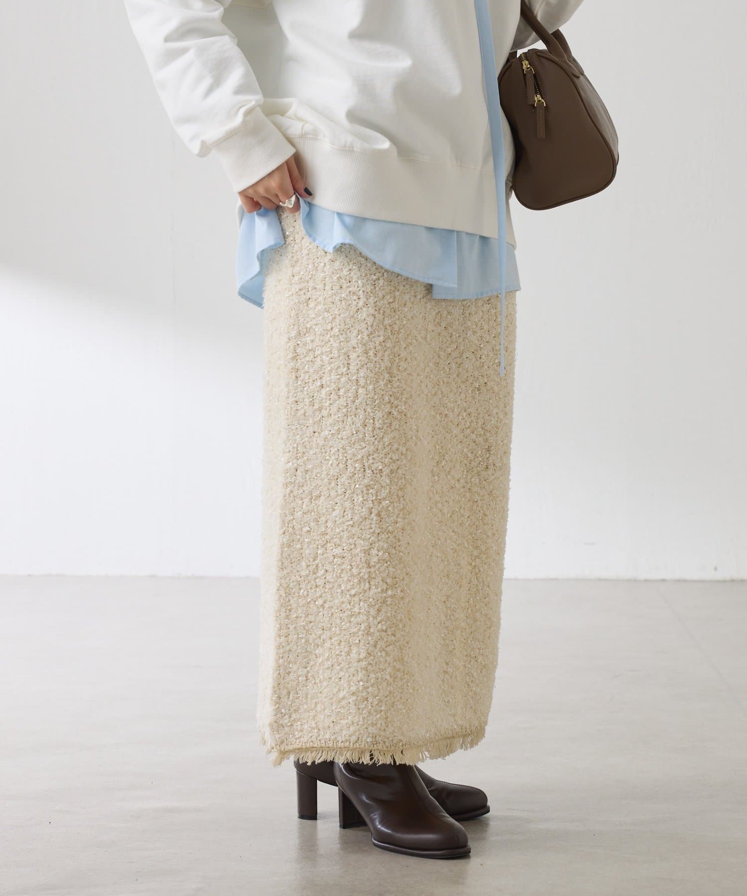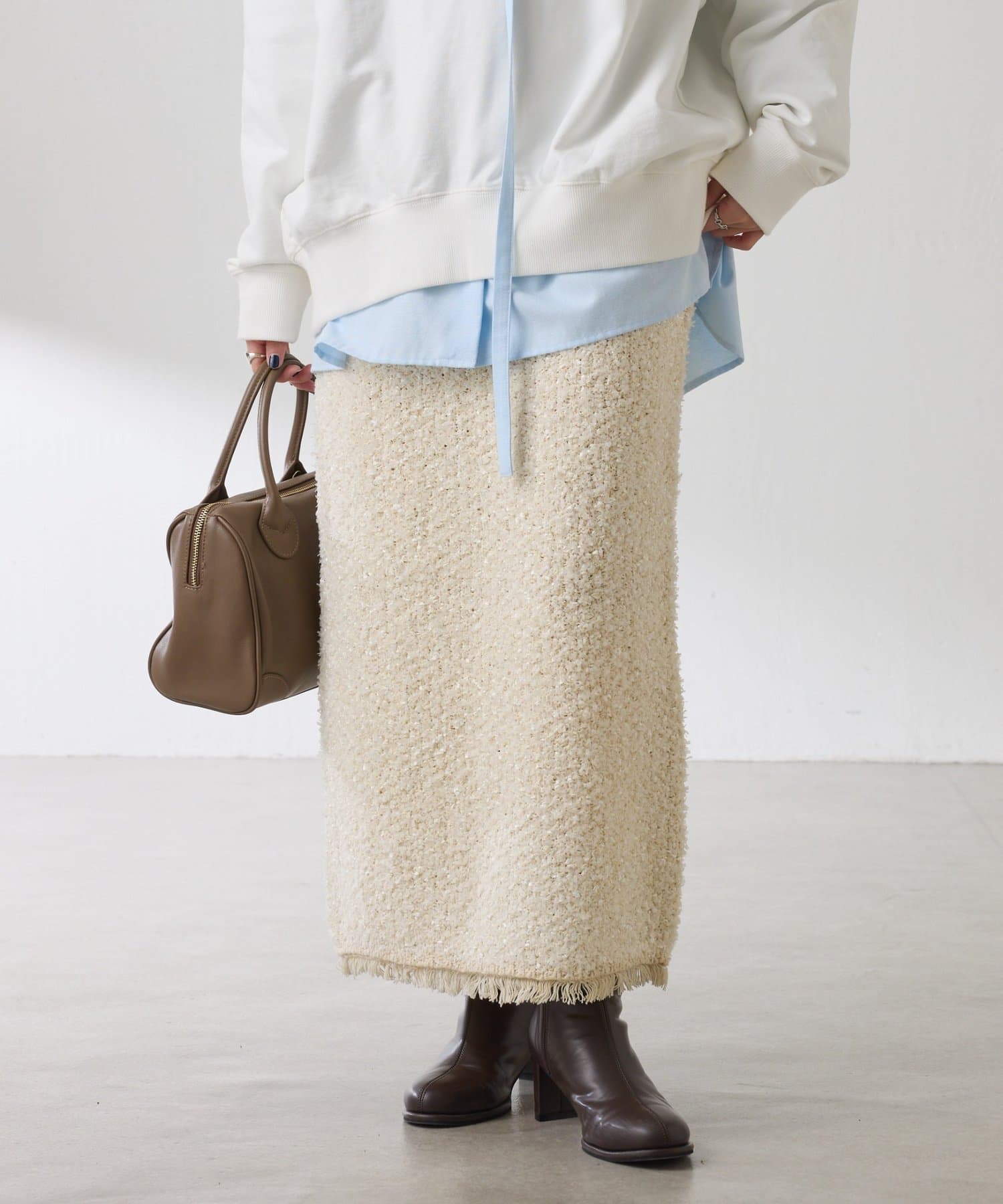キチンと感と楽チンさが叶うツイードライクスカート