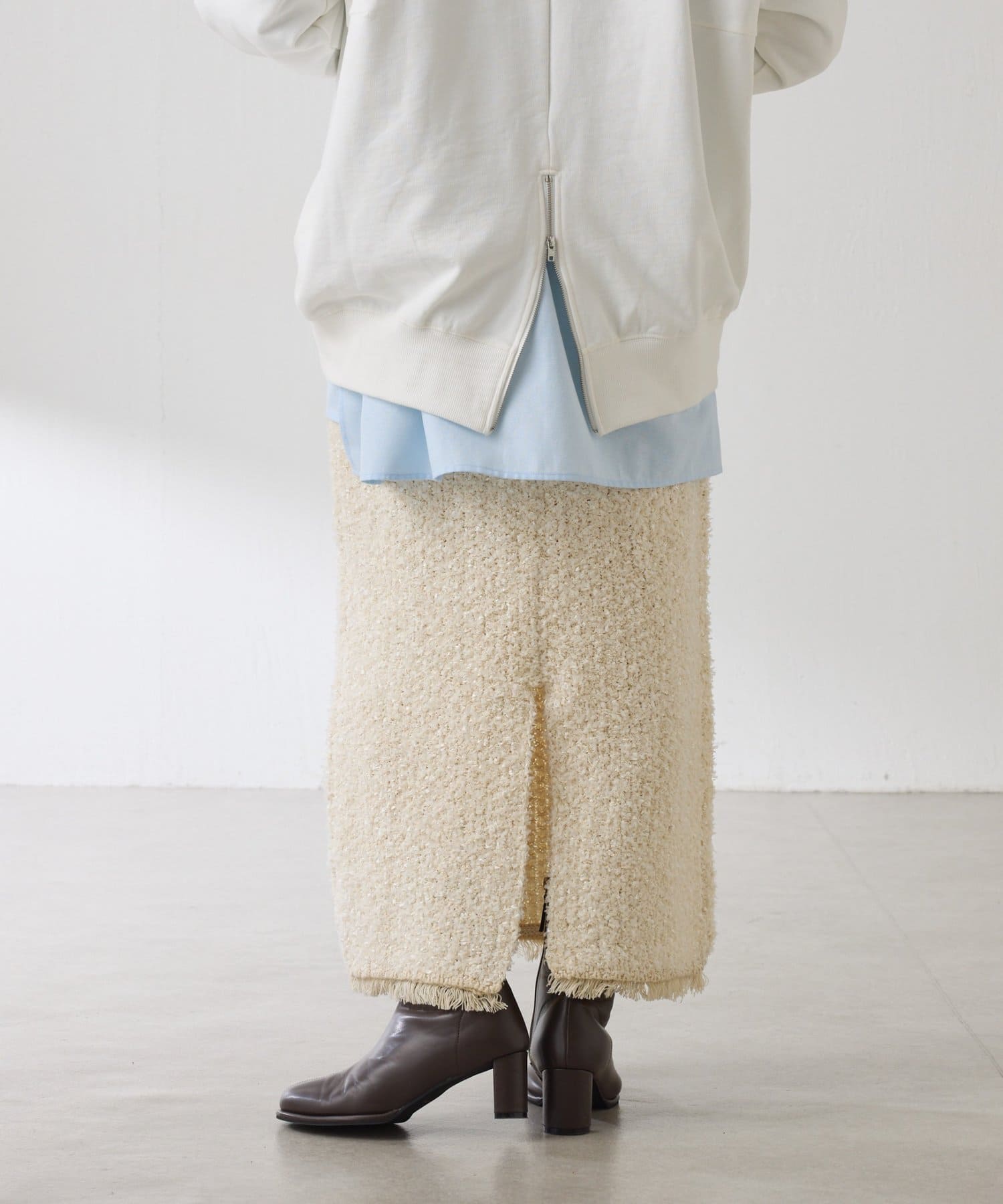 ・ウエストと裾のフリンジがよりツイード感を出してくれます◎
