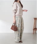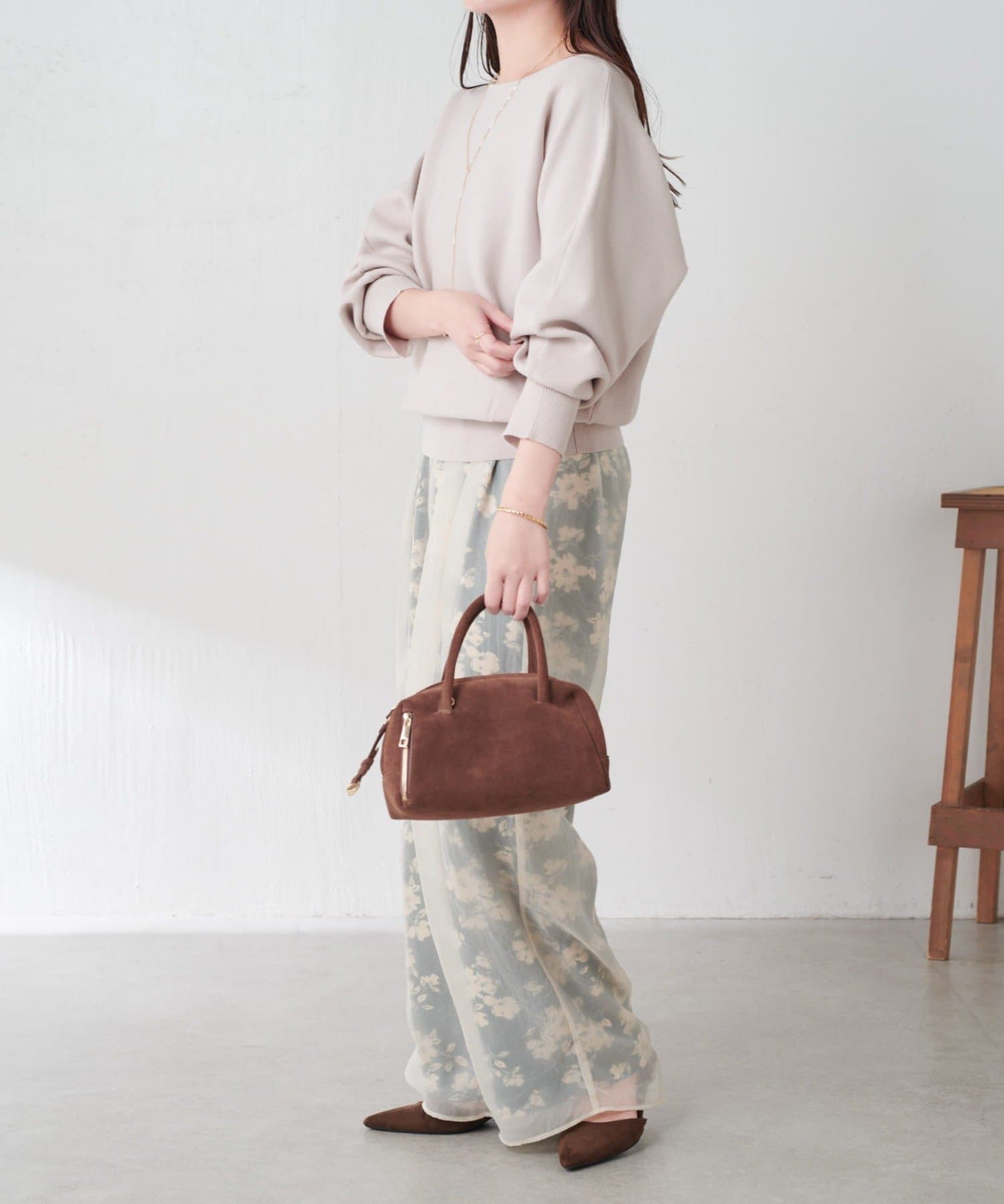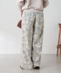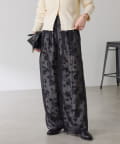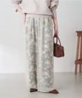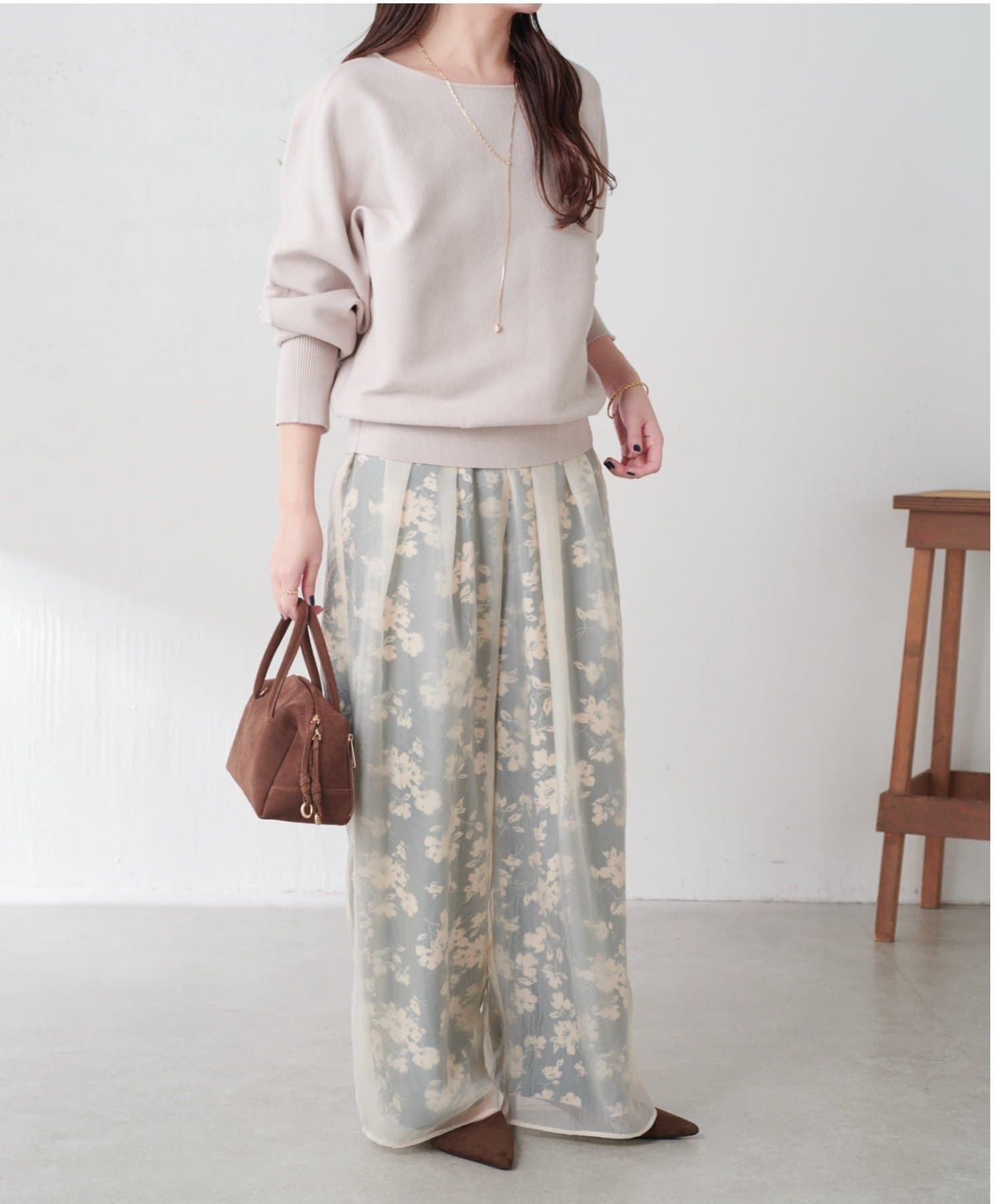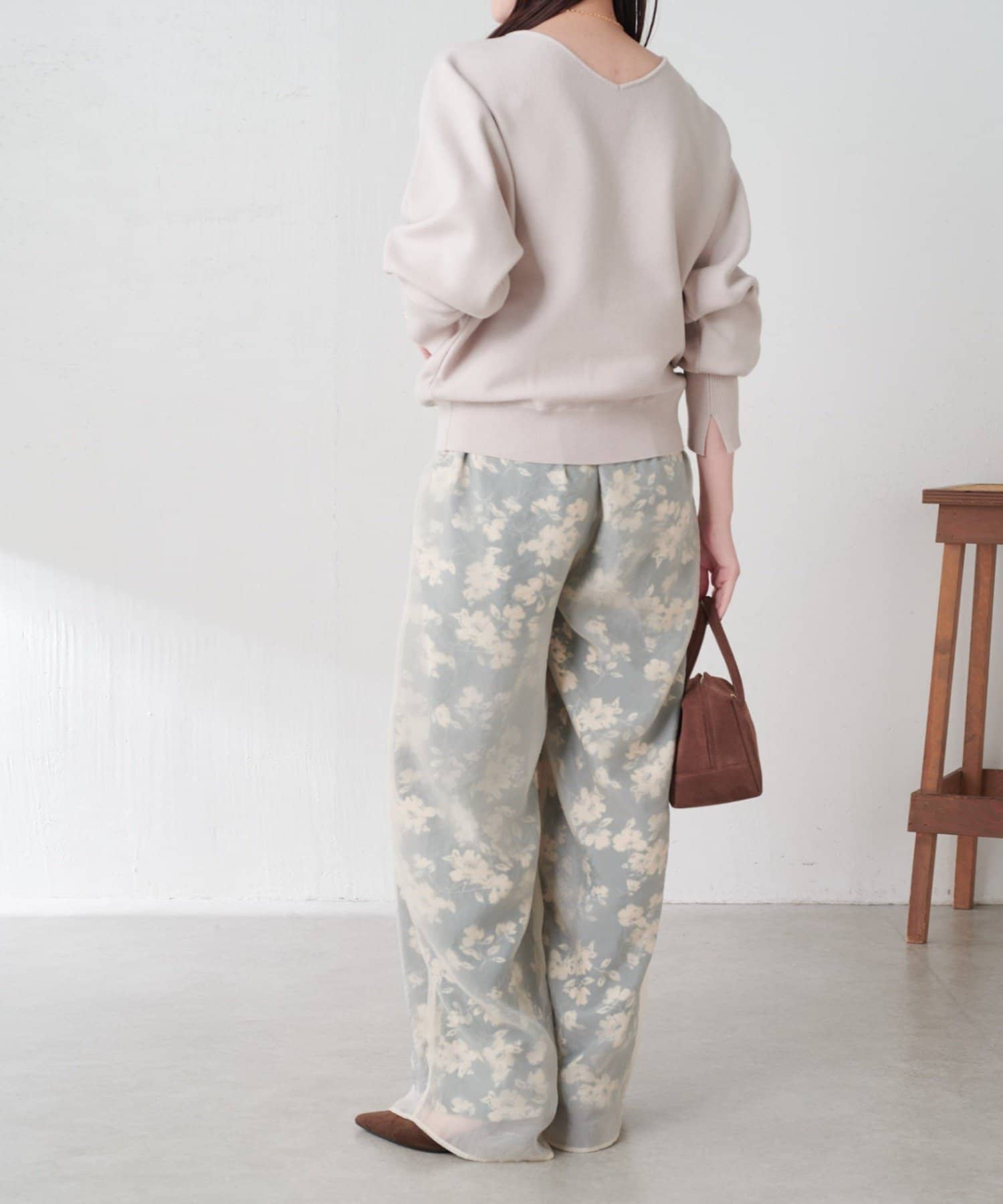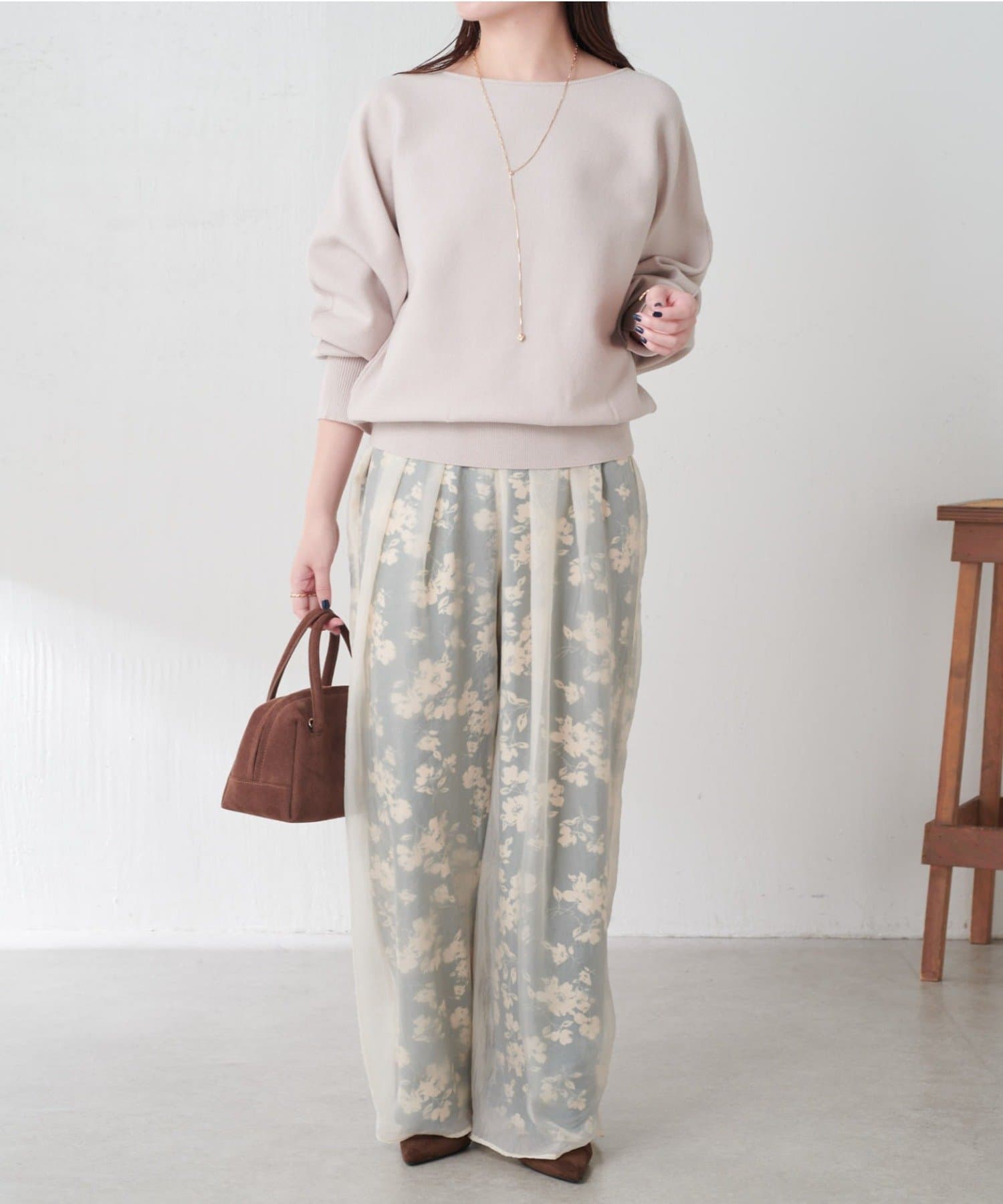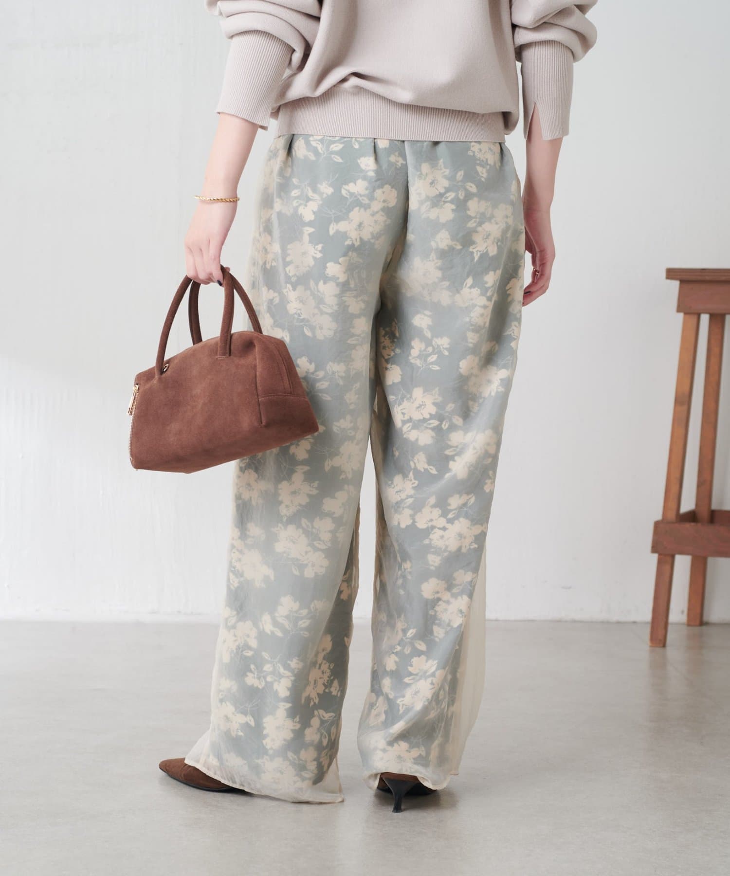 ・花柄の上にシアーをレイヤードした、冬でもシアーを楽しめるセミワイドパンツ。