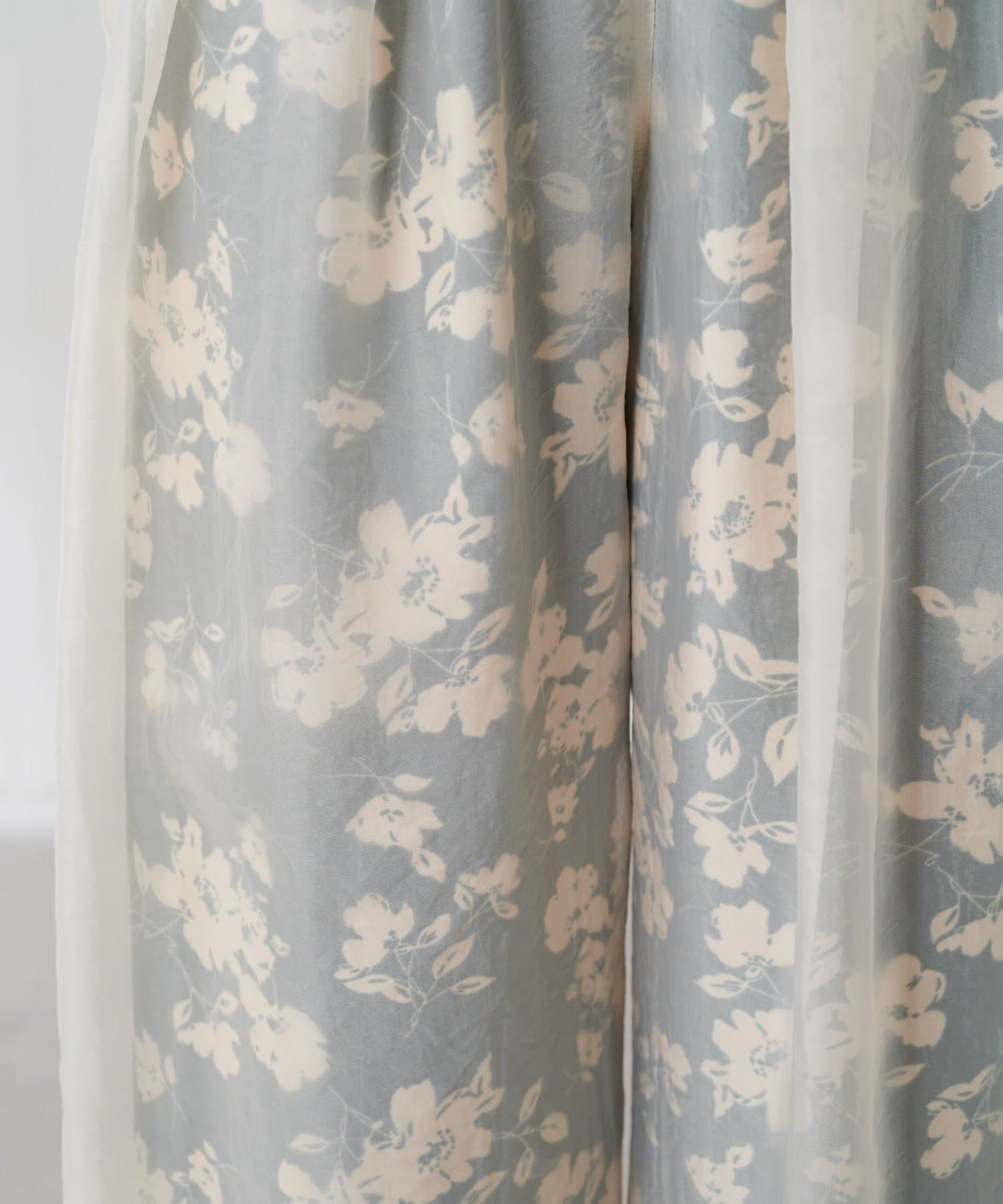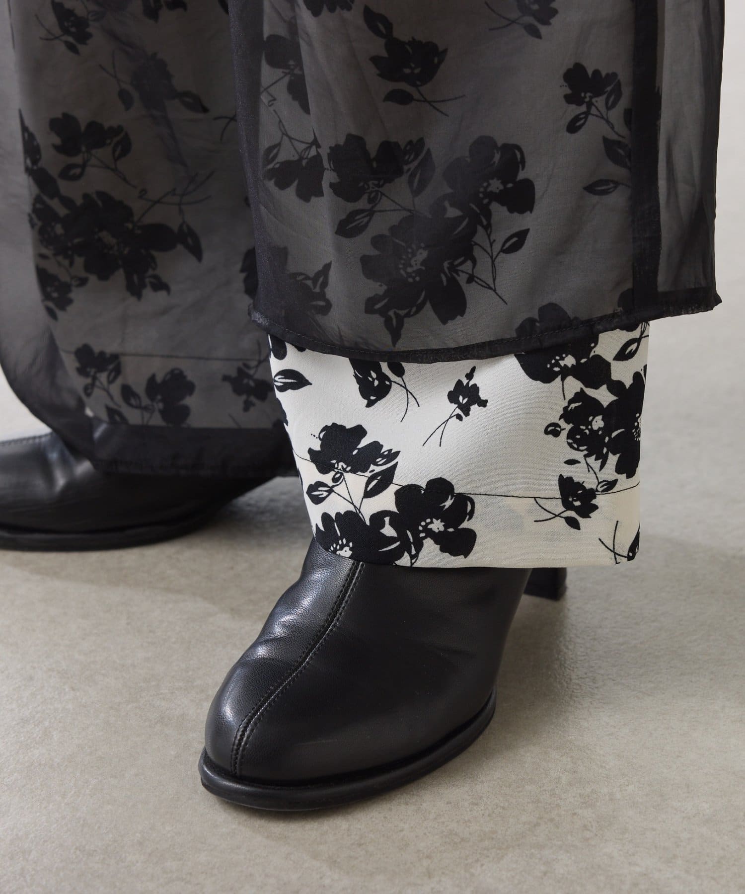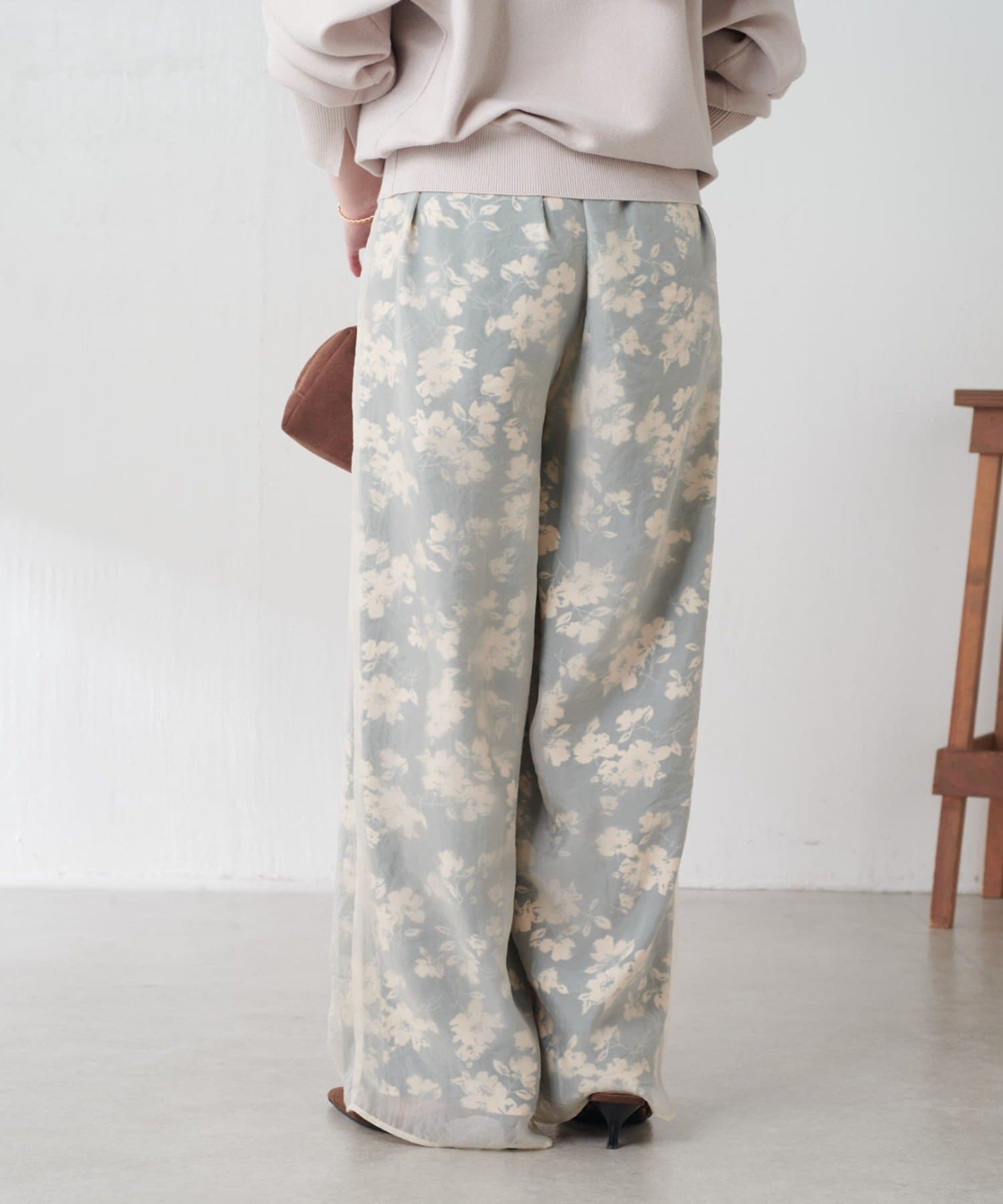 【シアーで体型カバー◎】シアーレイヤードフラワー柄パンツ