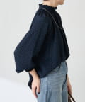 ・首元と袖のシャーリングは伸縮性がありますが締め付け感は無く、腕捲りしやすいのも嬉しいポイント◎